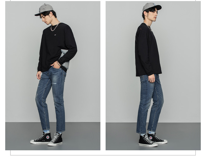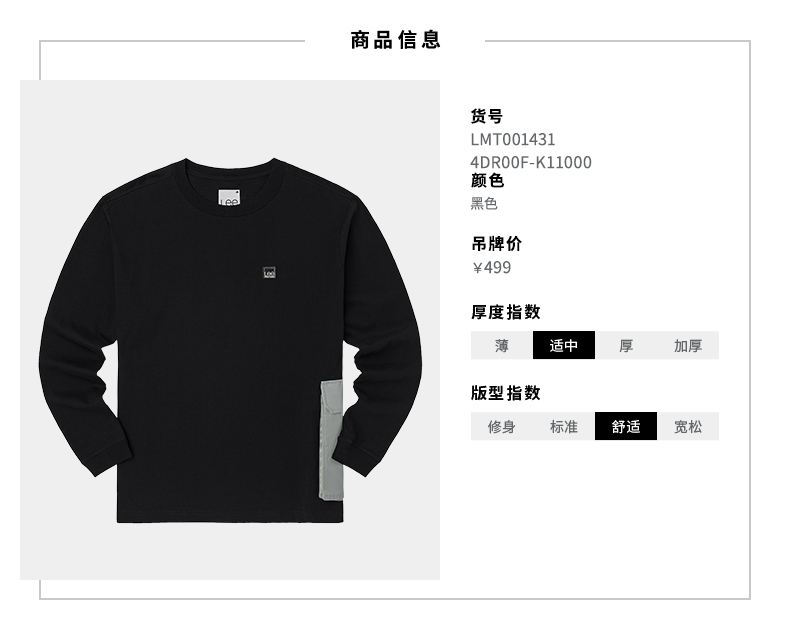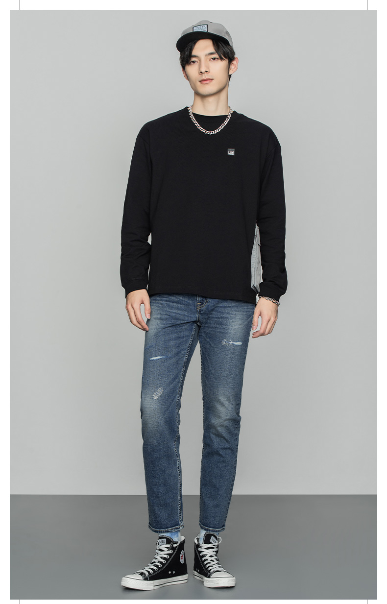 Lee商场同款22春季新品舒适版印花黑色男长袖T恤LMT0014314DR-K11