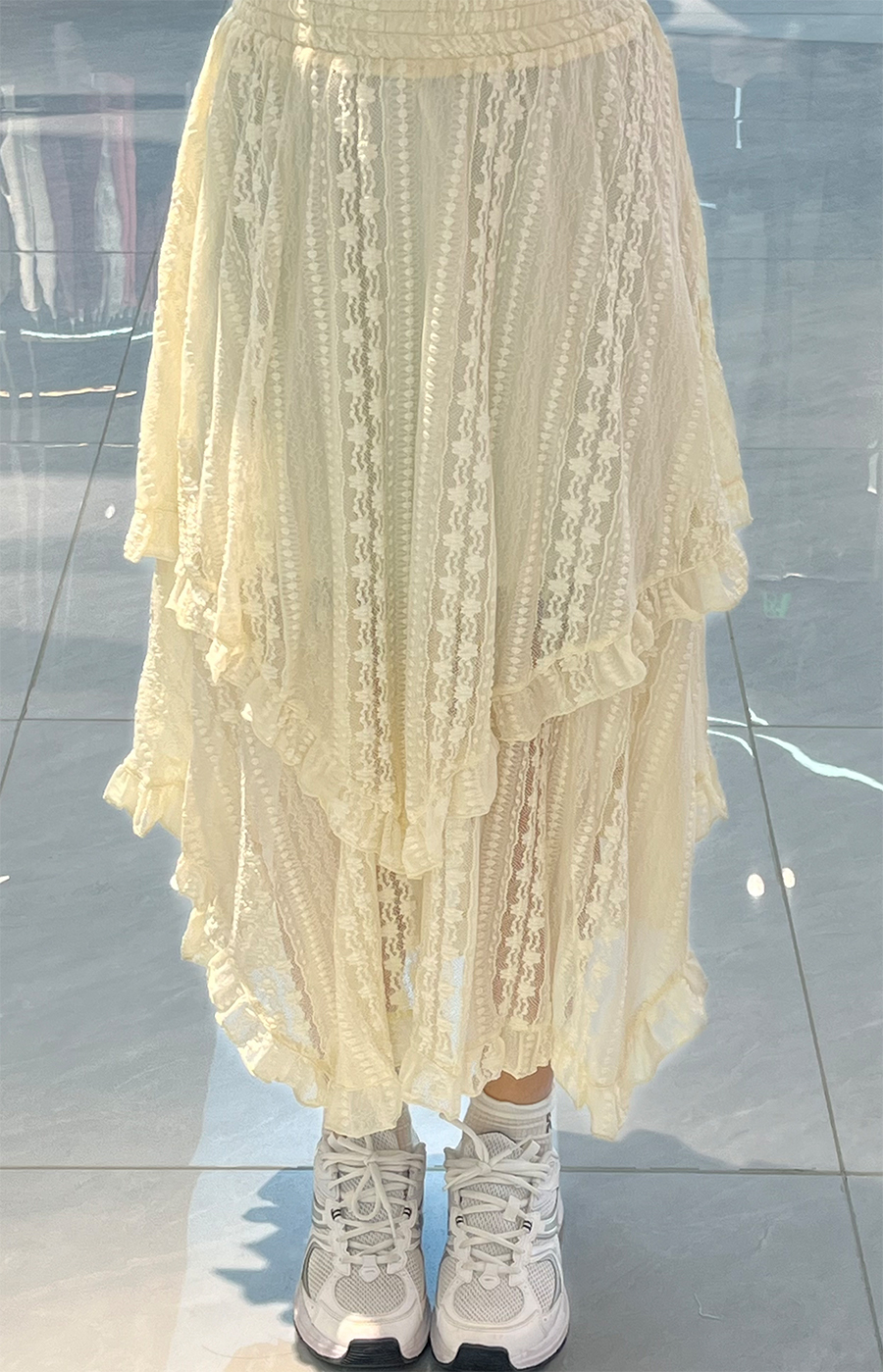 P&X设计师女装秋针织休闲蕾丝气质时尚半身长裙 824307196 杏色