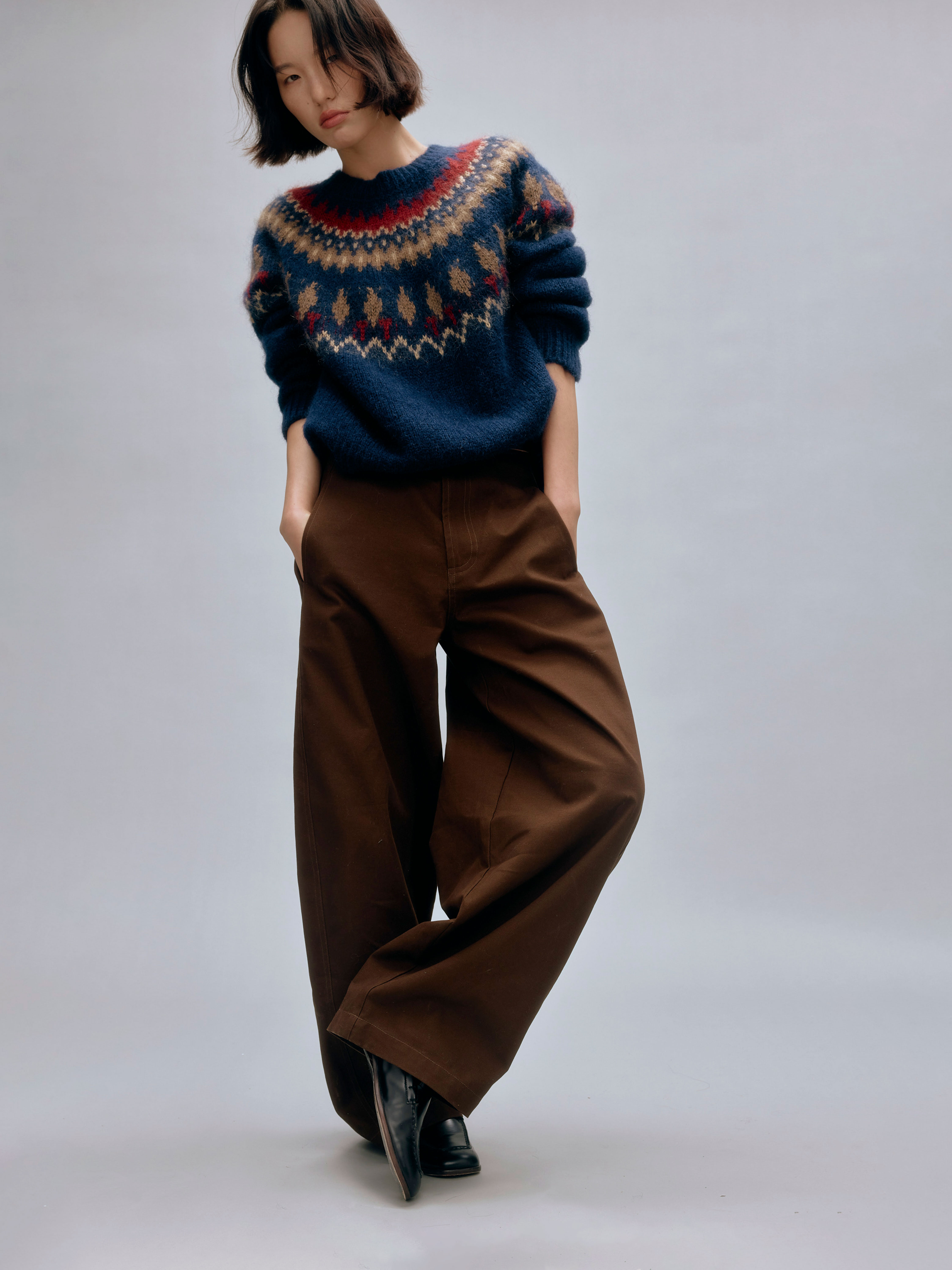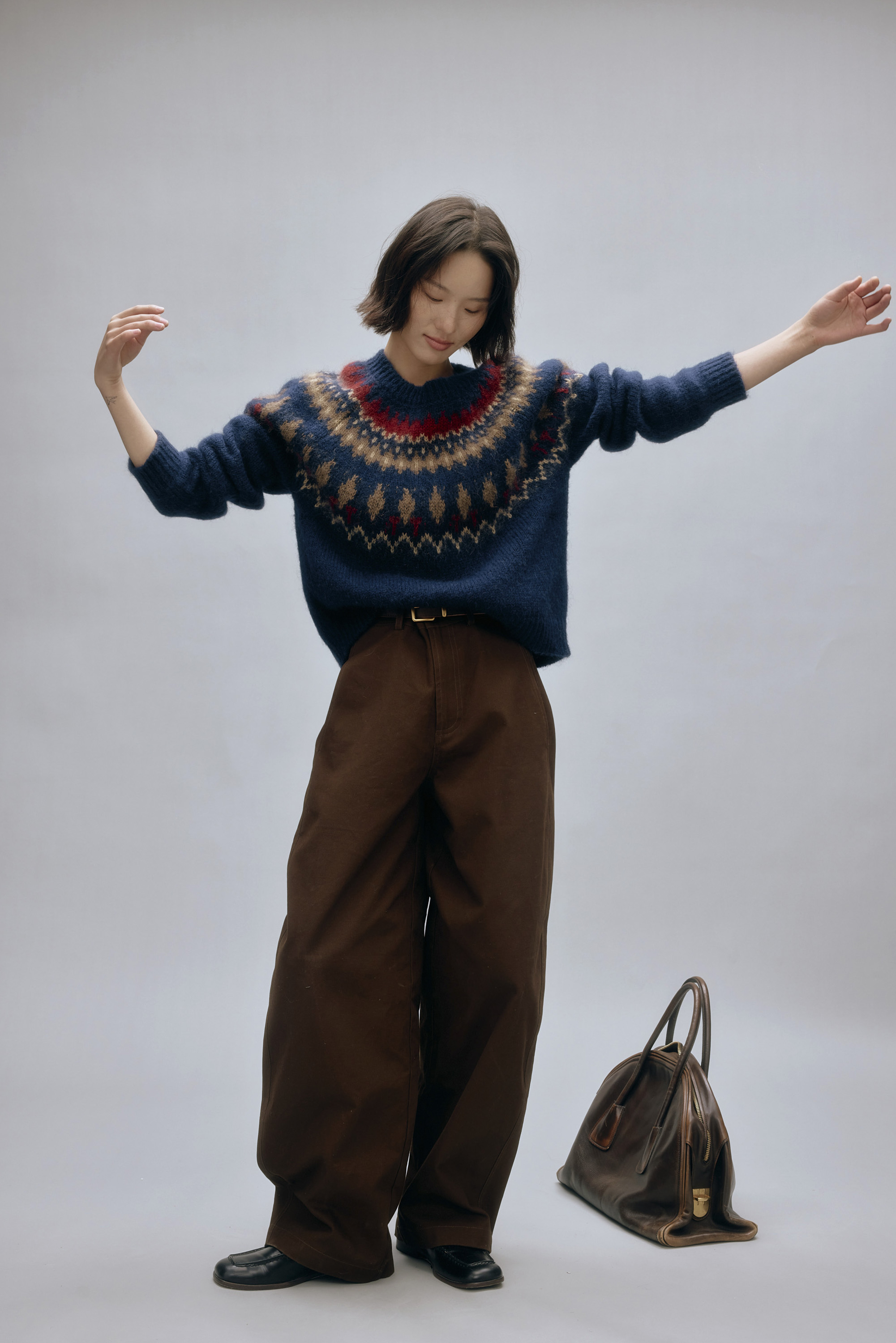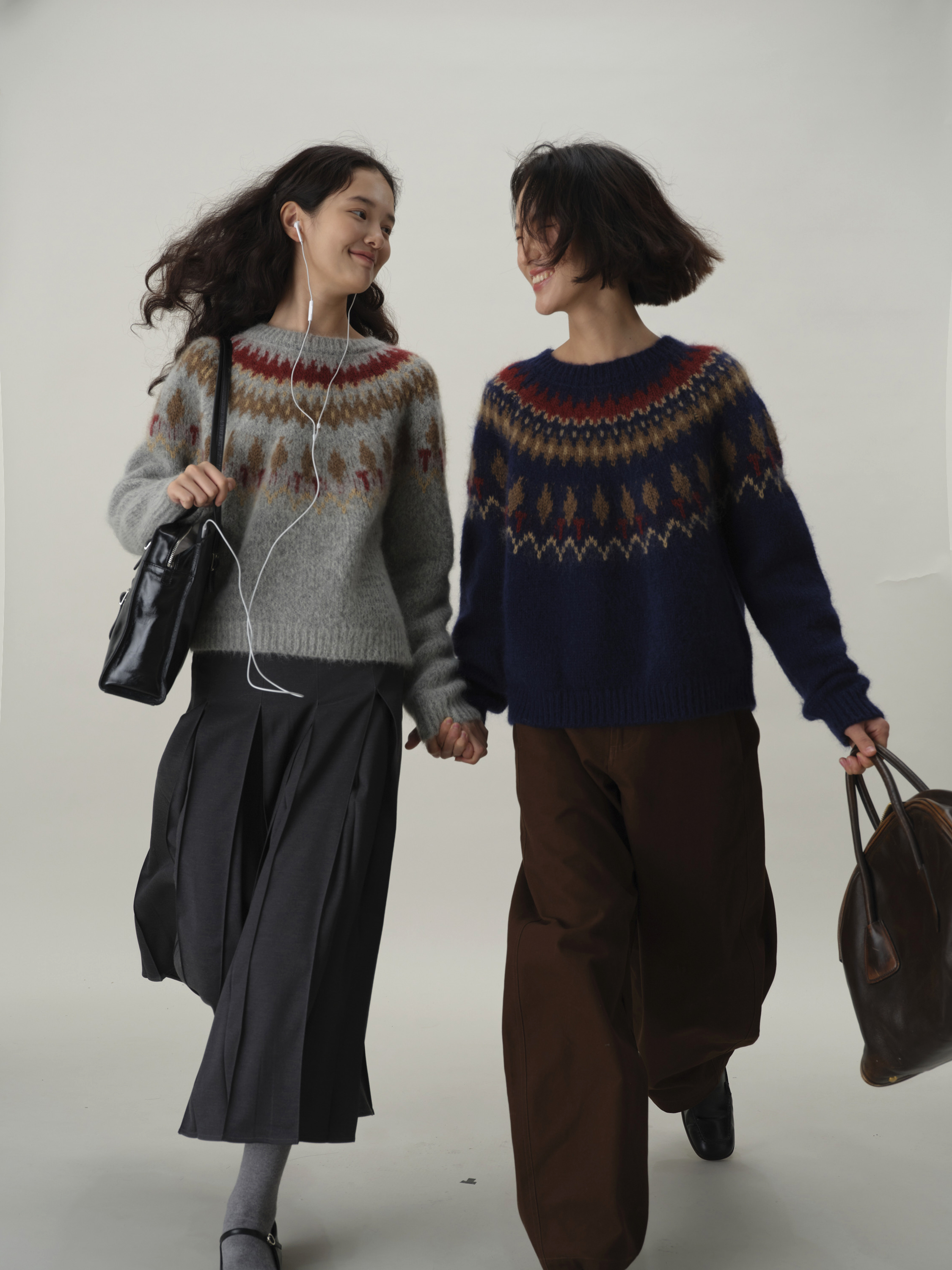 shyshystill/shy202408051/费尔岛羊毛马海毛重工设计感原创经典套头上衣