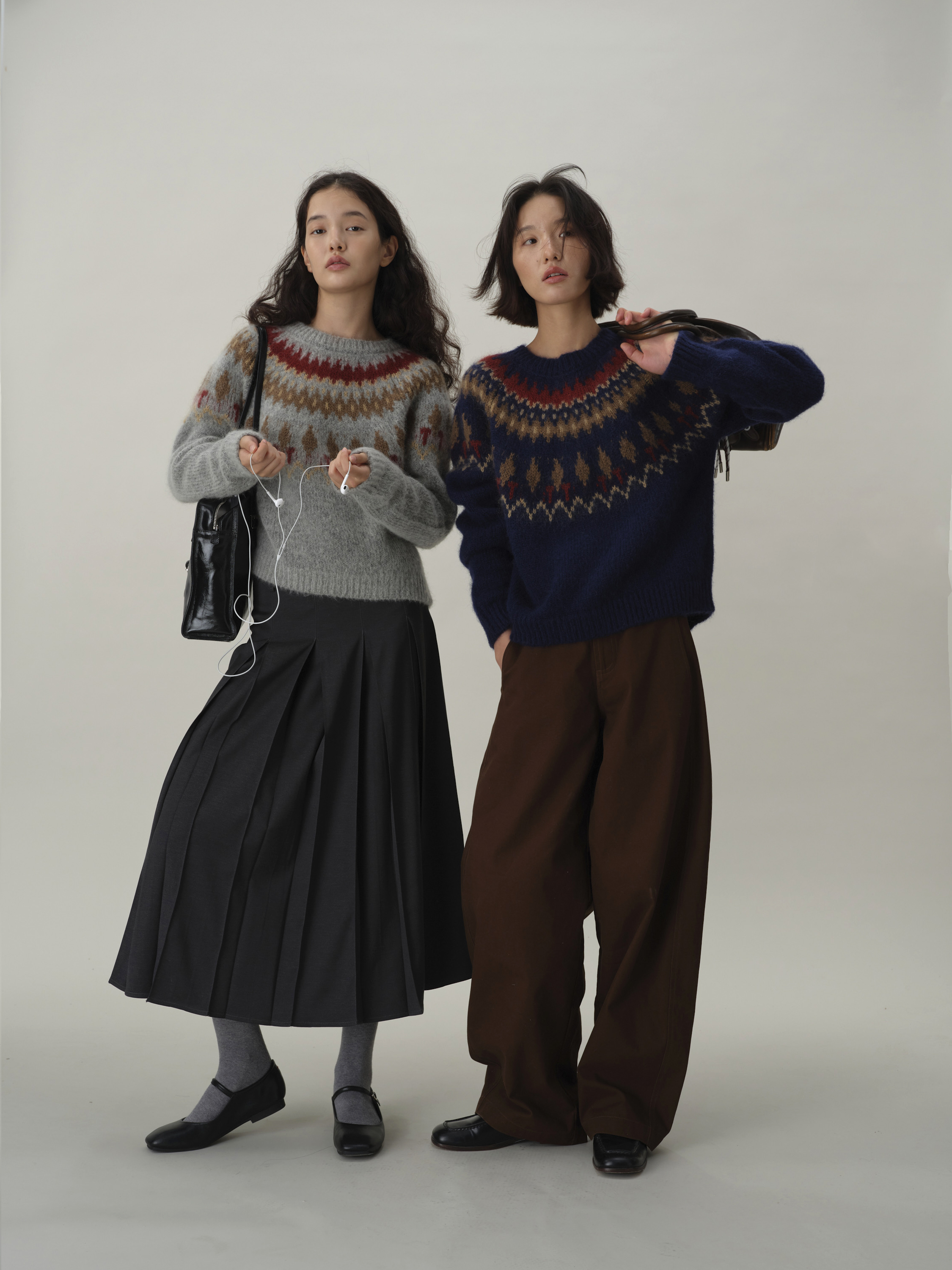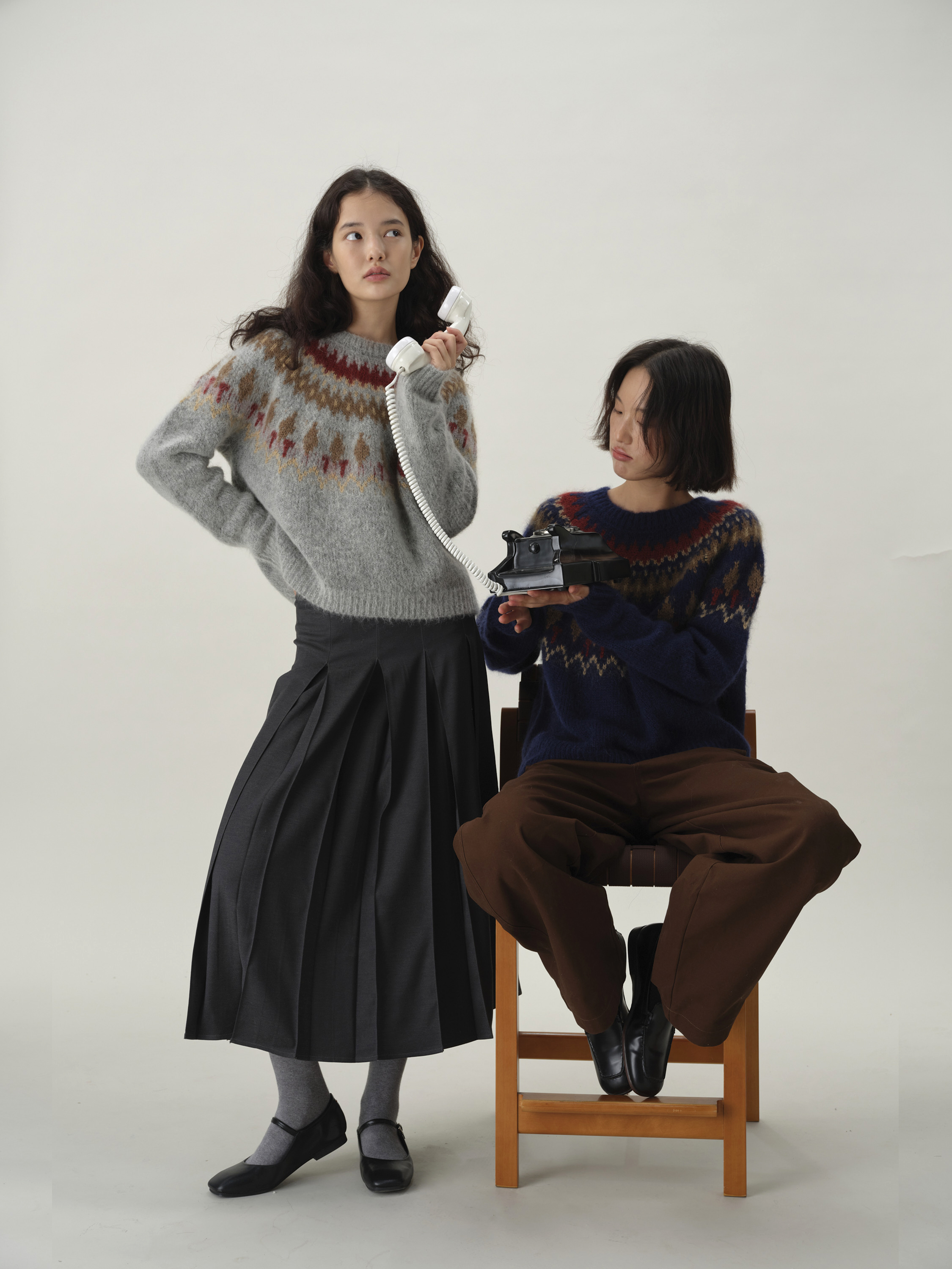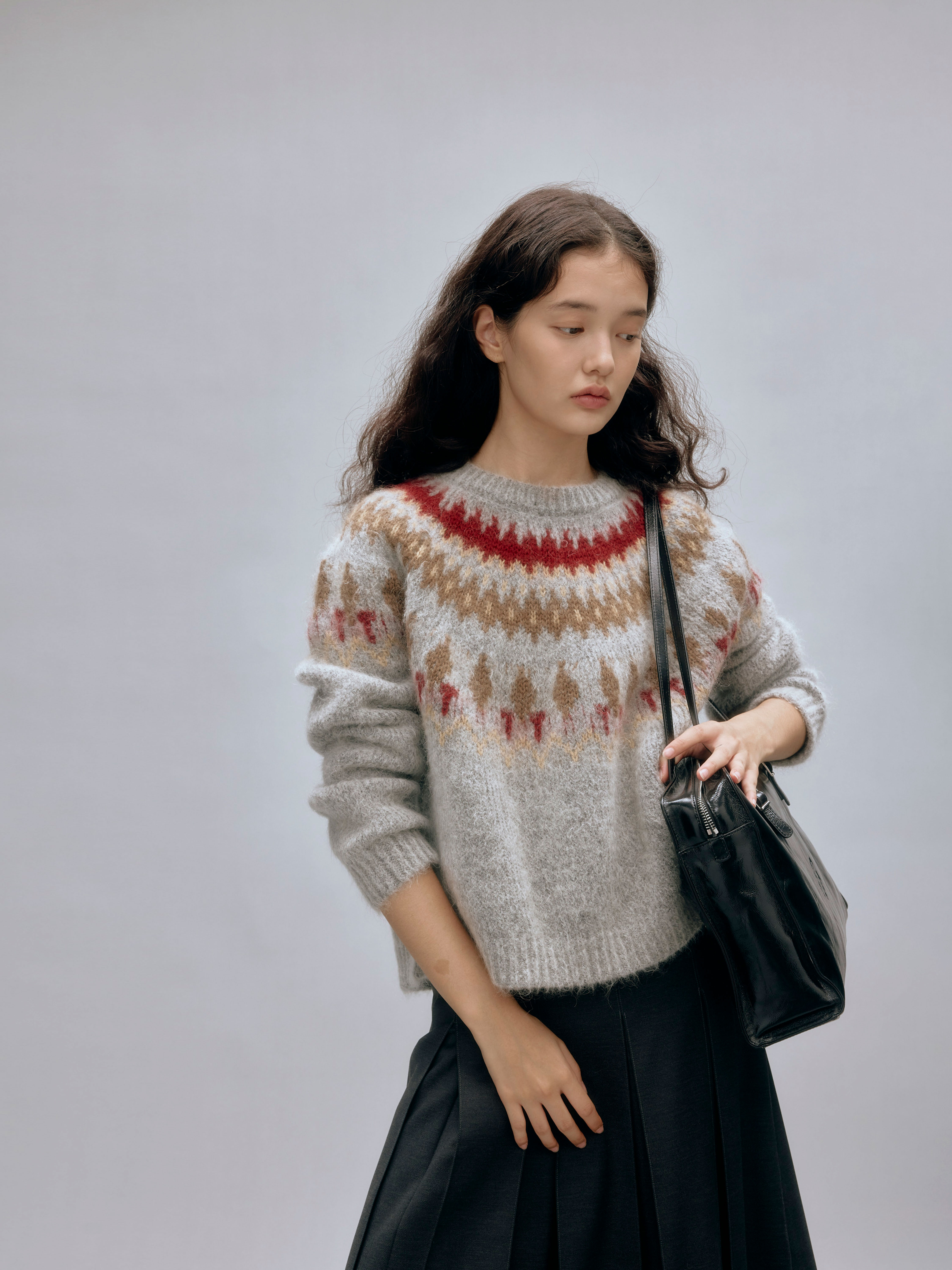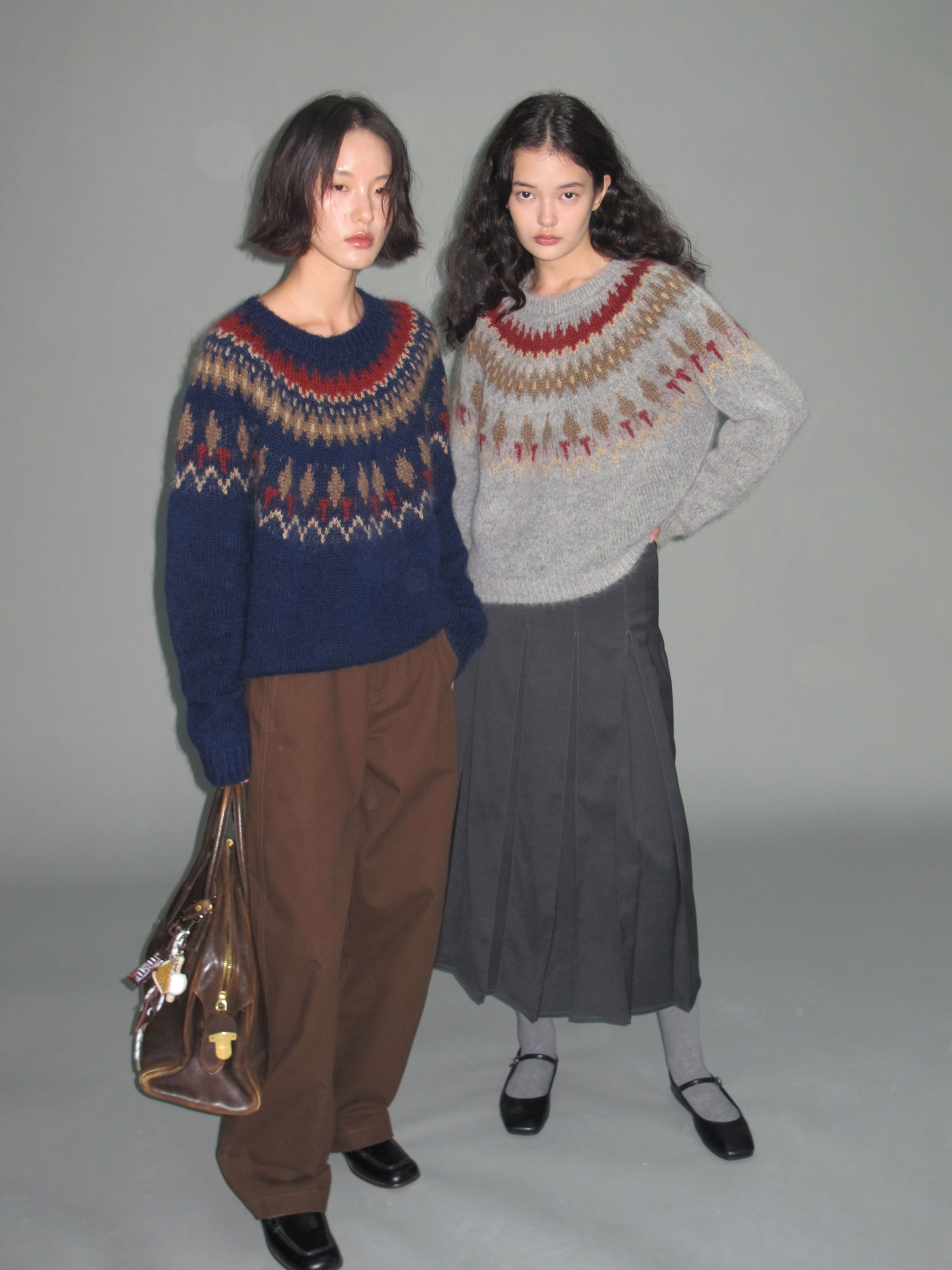 shyshystill/shy202408051/费尔岛羊毛马海毛重工设计感原创经典套头上衣