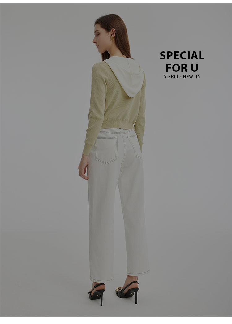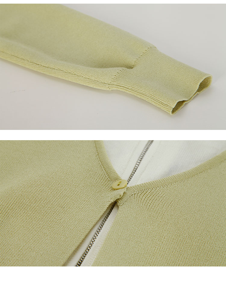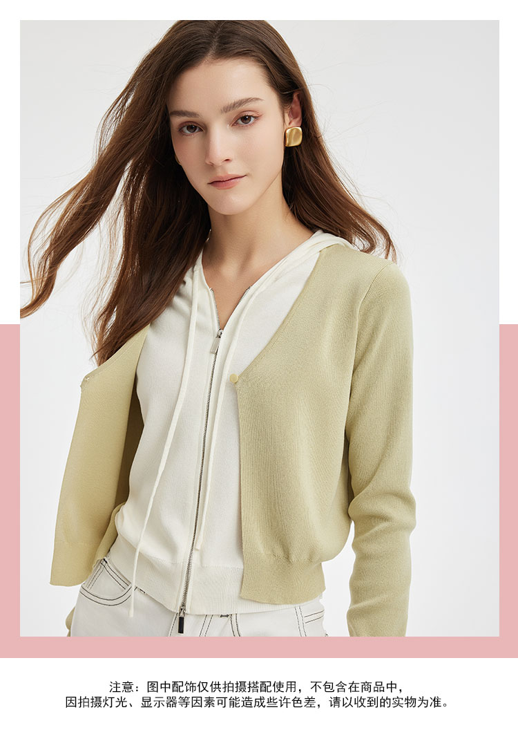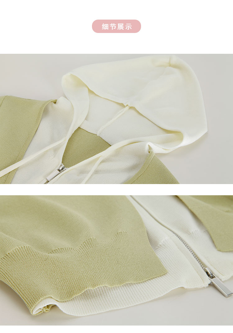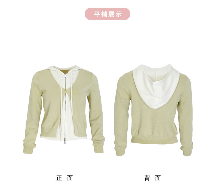 PE631斯尔丽24新款假两件撞色连帽衫双头拉链显瘦减龄时尚开衫针织上衣