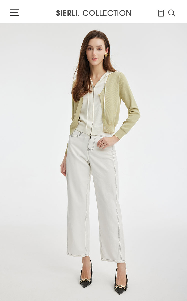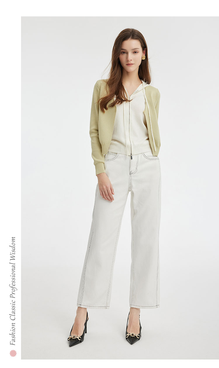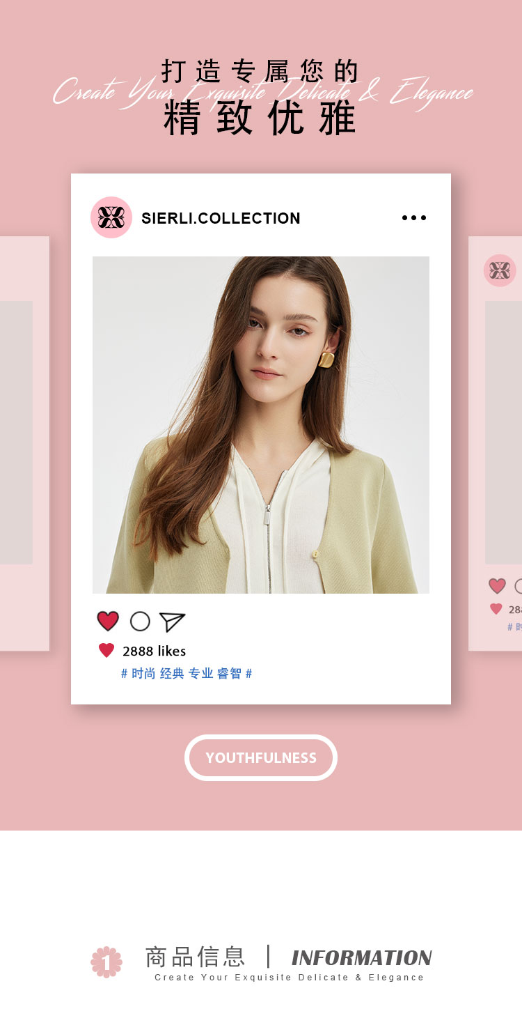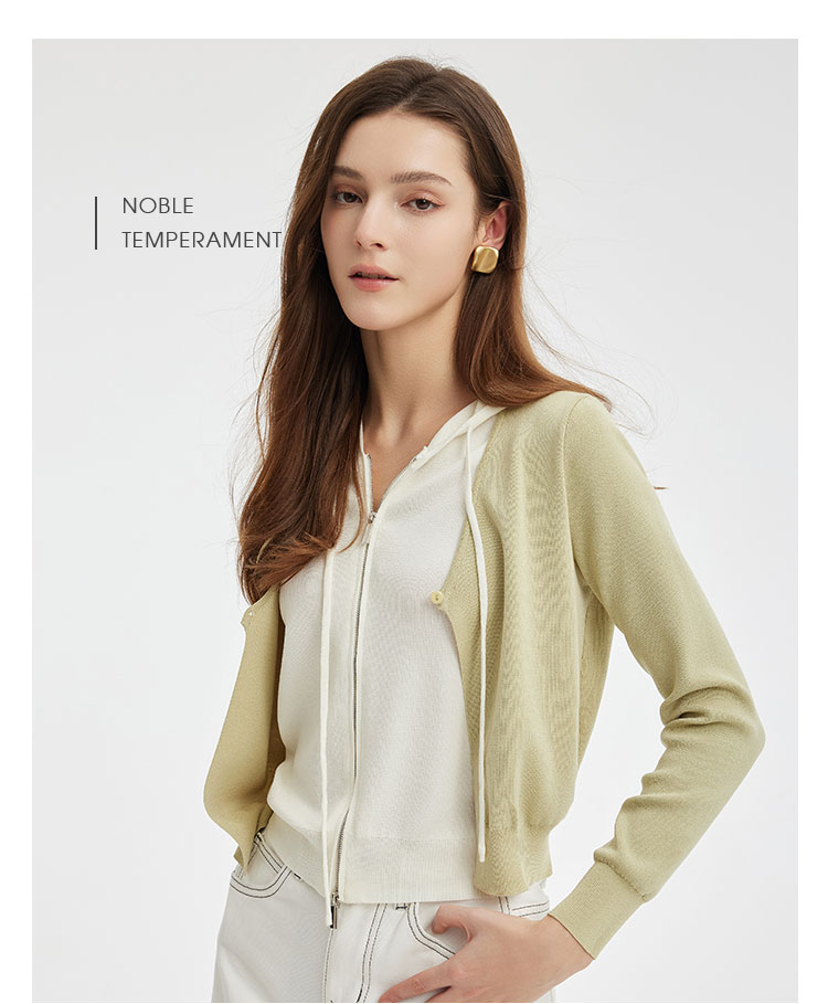 PE631斯尔丽24新款假两件撞色连帽衫双头拉链显瘦减龄时尚开衫针织上衣