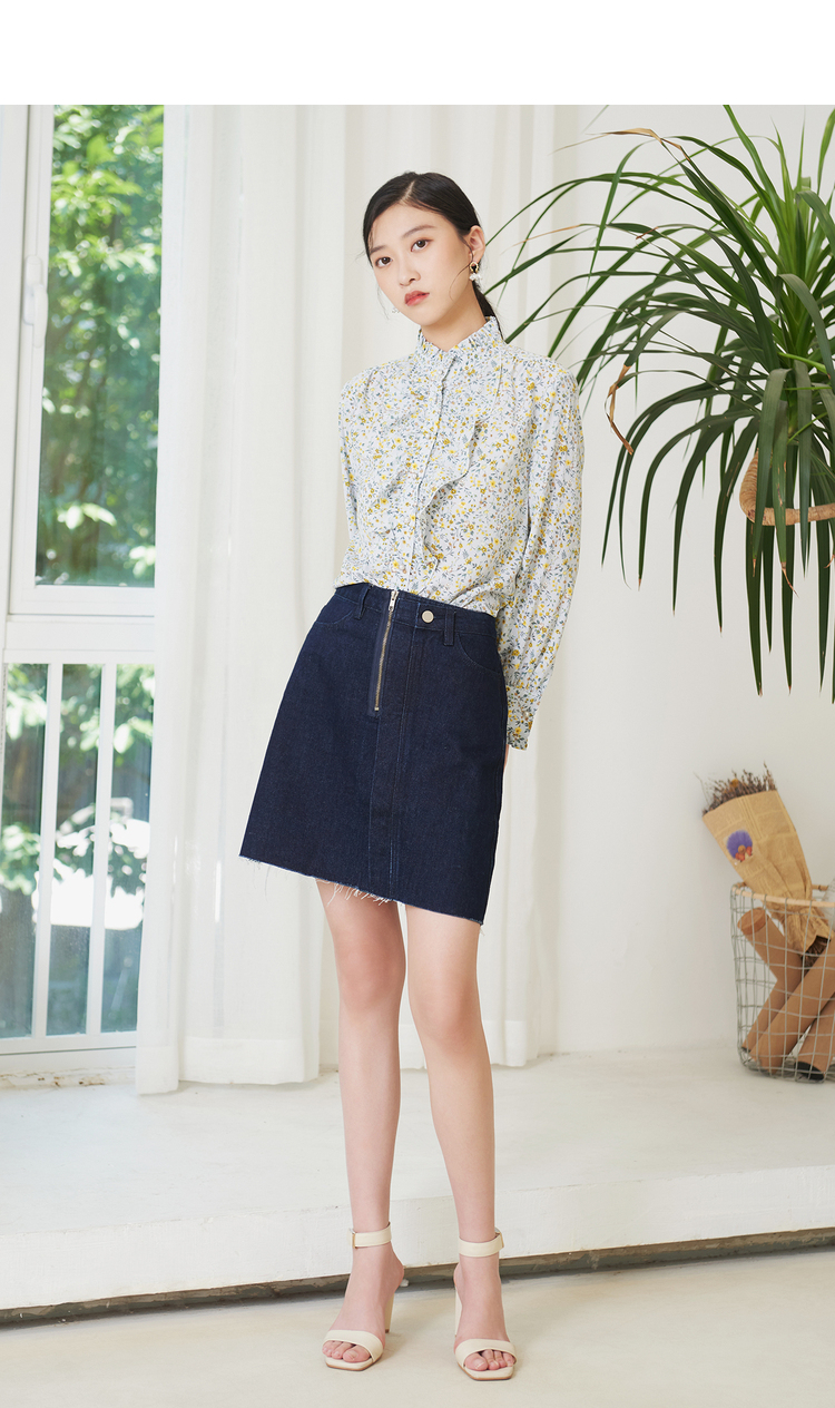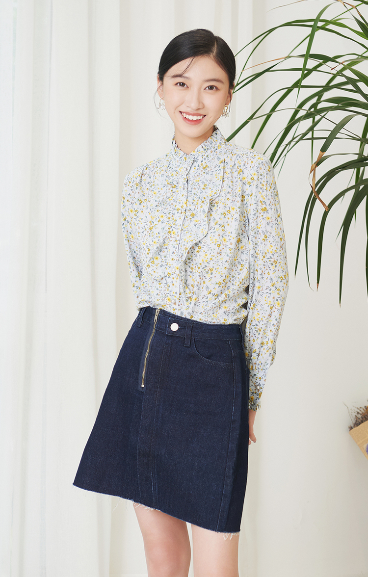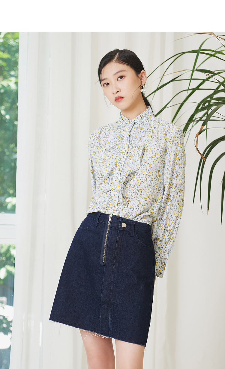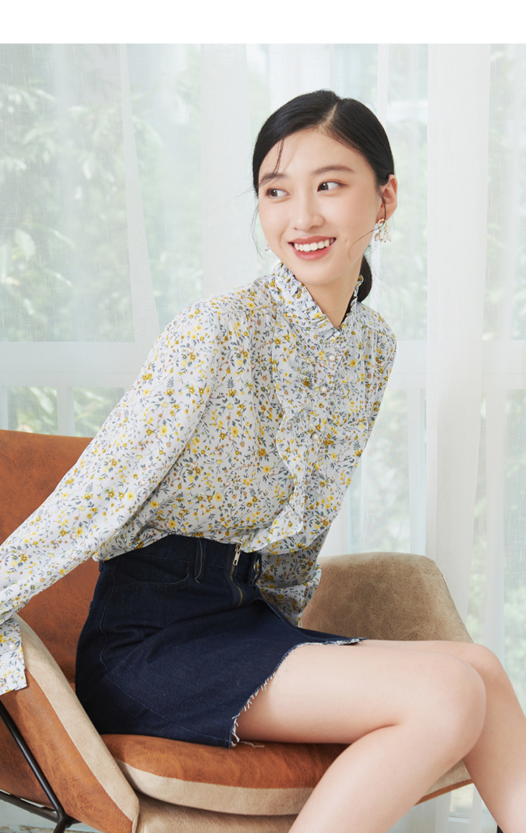 NEELLY纳俪商场同款秋季新款立领碎花衬衫女甜美荷叶边单排扣上衣N22074B04433