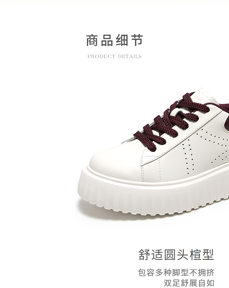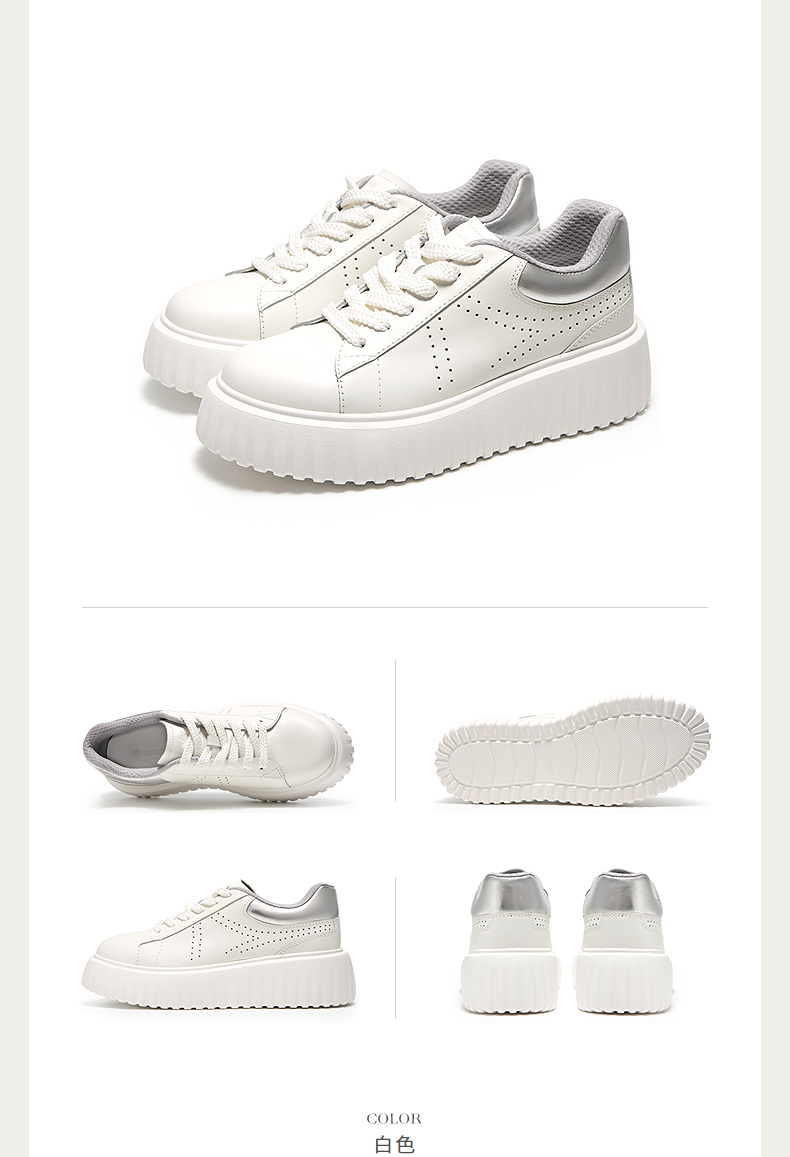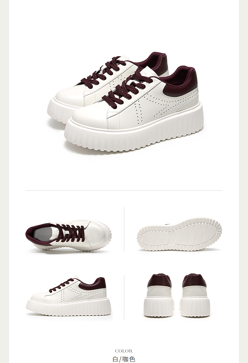 natursun厚底小白鞋女复古舒适牛皮增高百搭休闲板鞋N25108212