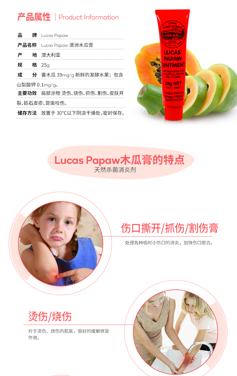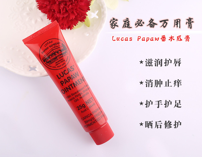 这货就和凡士林润肤霜,玫瑰花蕾膏一个样,哪干燥往哪涂就对了~便宜大碗+实用!!不过相对于它俩,还是更喜欢这货,牙膏管,用起来方便提取天然成分番木瓜,连明星也不放过的番木瓜膏!(番木瓜有100多年的历史了,是天然木瓜发酵的,就算人吃下去也没事,安全老少皆宜,据说,这支小软膏风靡澳洲,人手一支,称为澳洲的“万金油”)