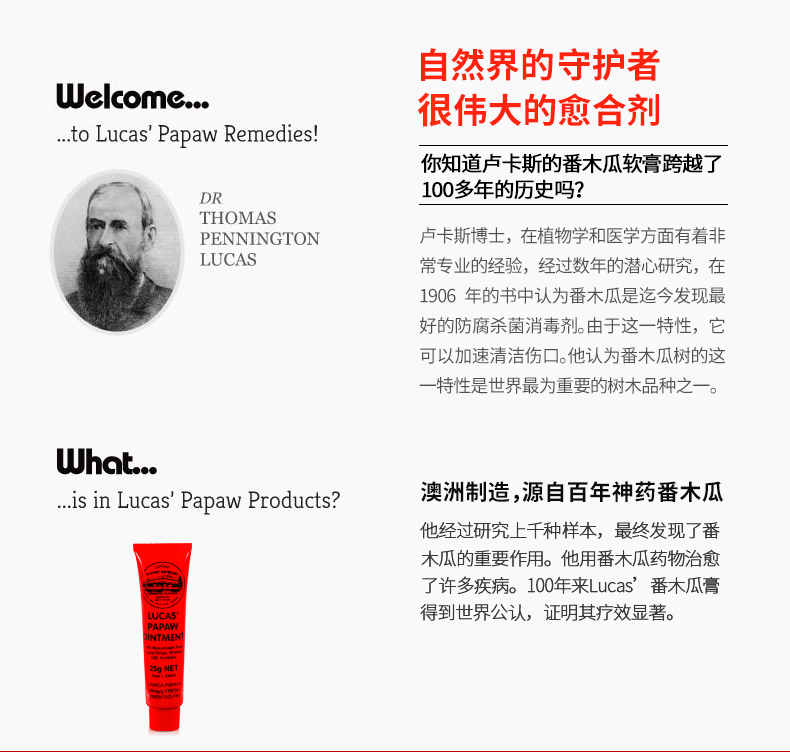 澳洲进口天然滋润番木瓜膏25g/支|LucasPapaw,滋润保湿润唇膏万用膏 ,防干裂去死皮淡化唇纹