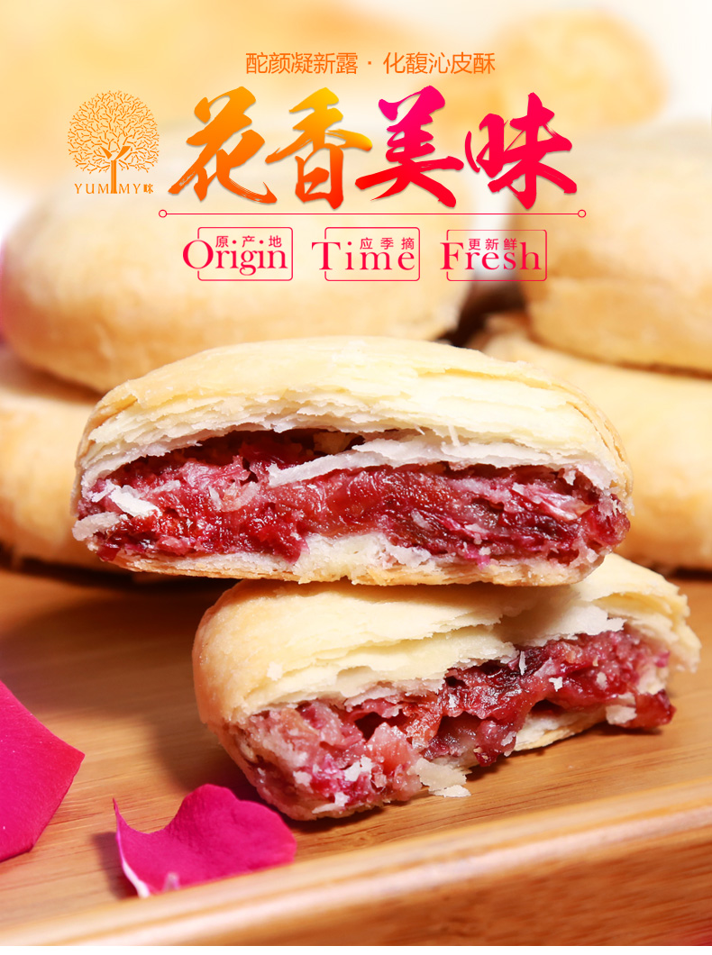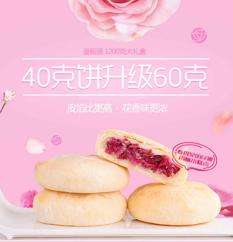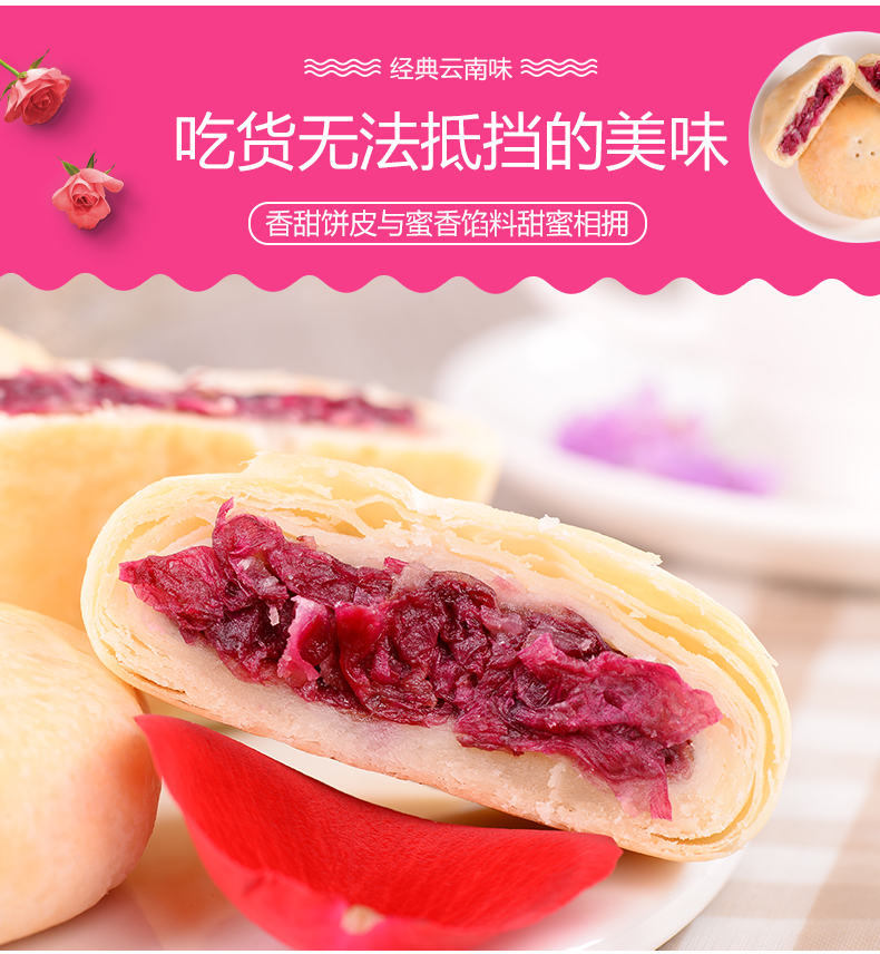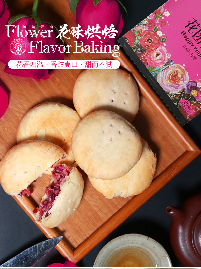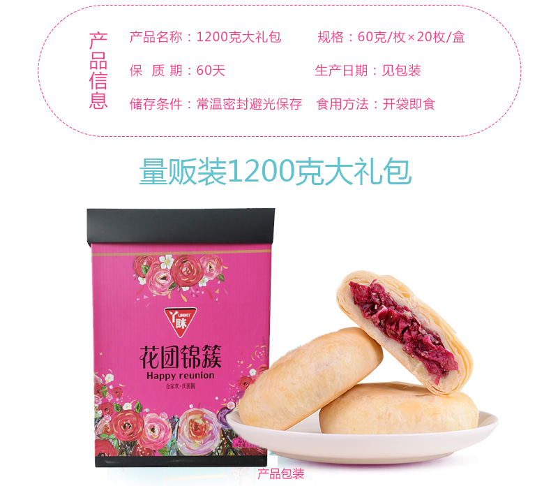 【云南特产】 经典玫瑰鲜花饼 花团锦簇提盒 60g*20枚【包邮】