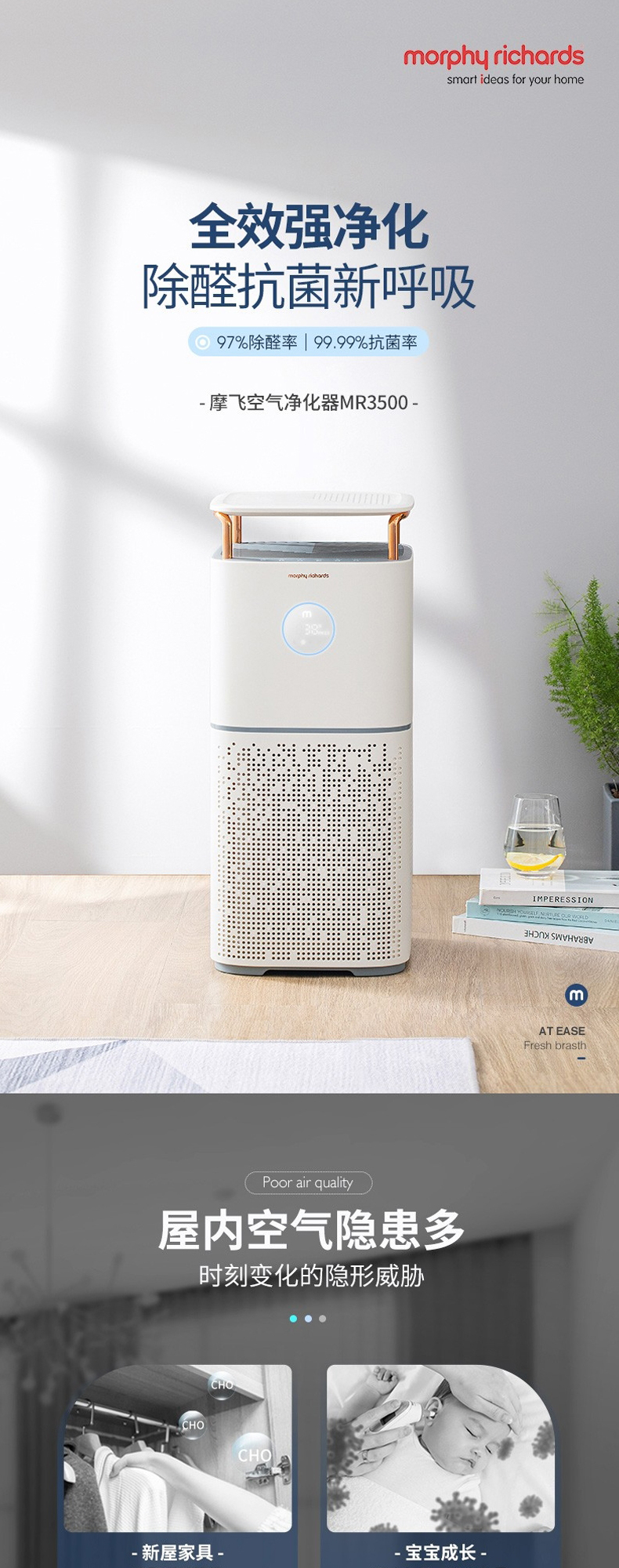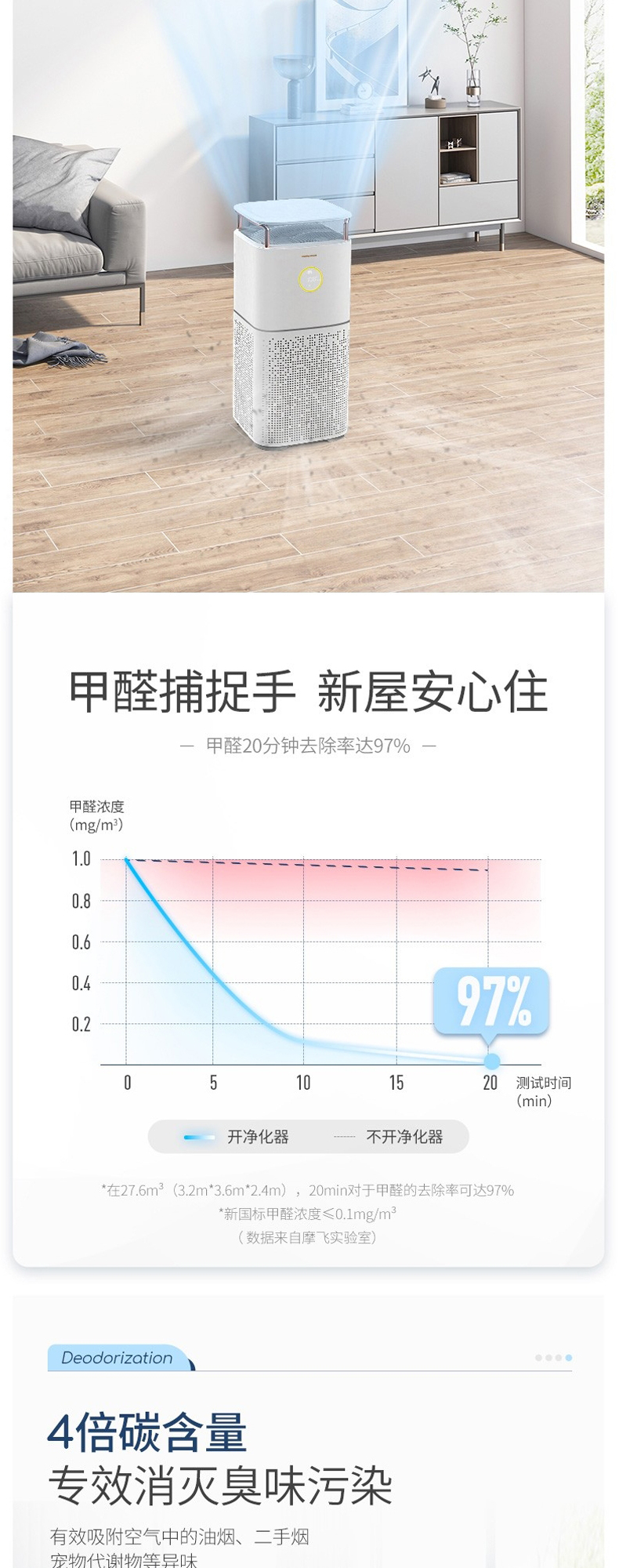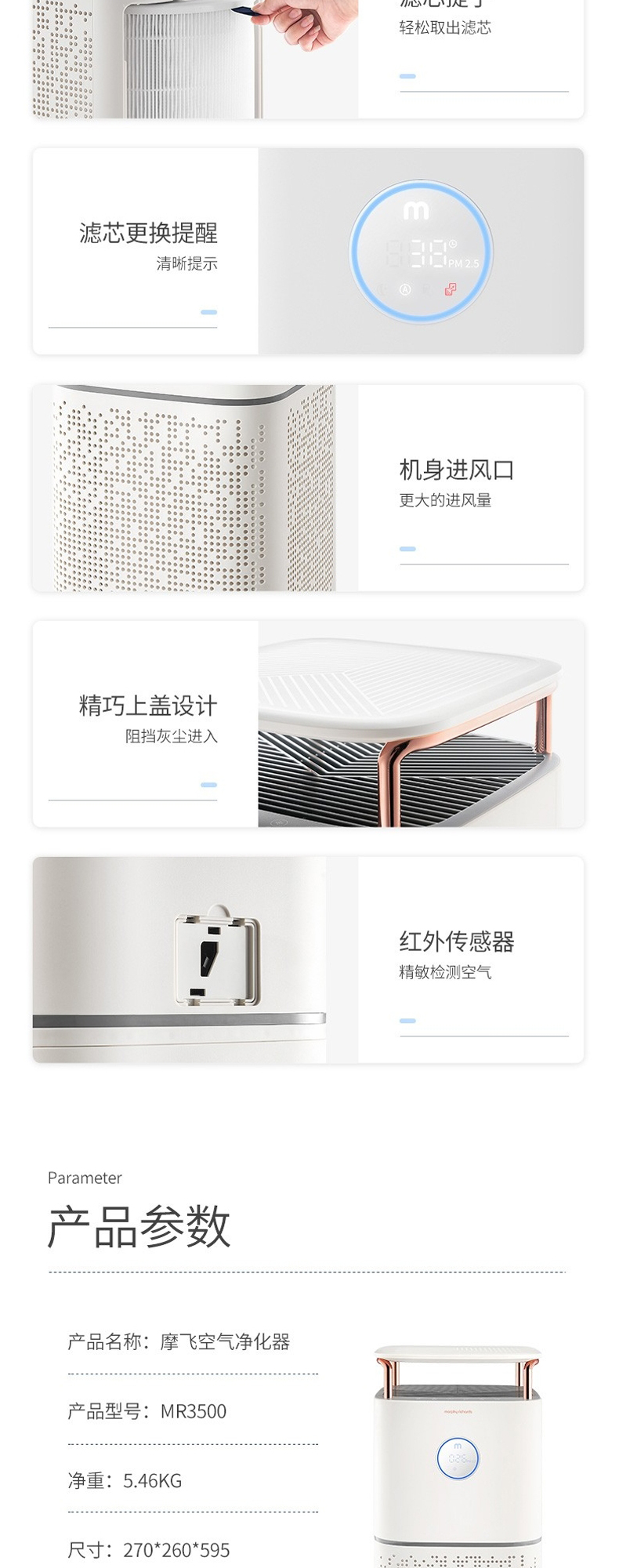 摩飞MR3500空气净化器家用去除甲醛神器吸烟除烟消毒机卧室内宠物净化机【摩飞】
