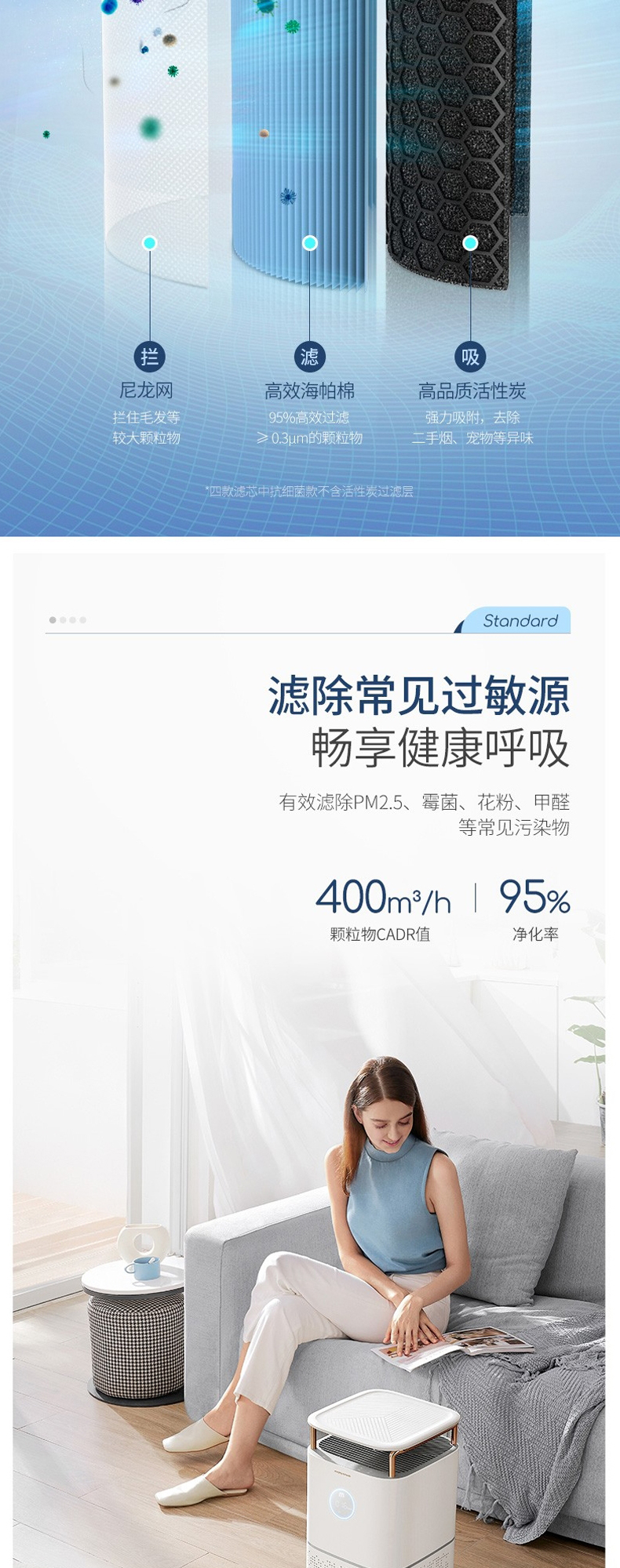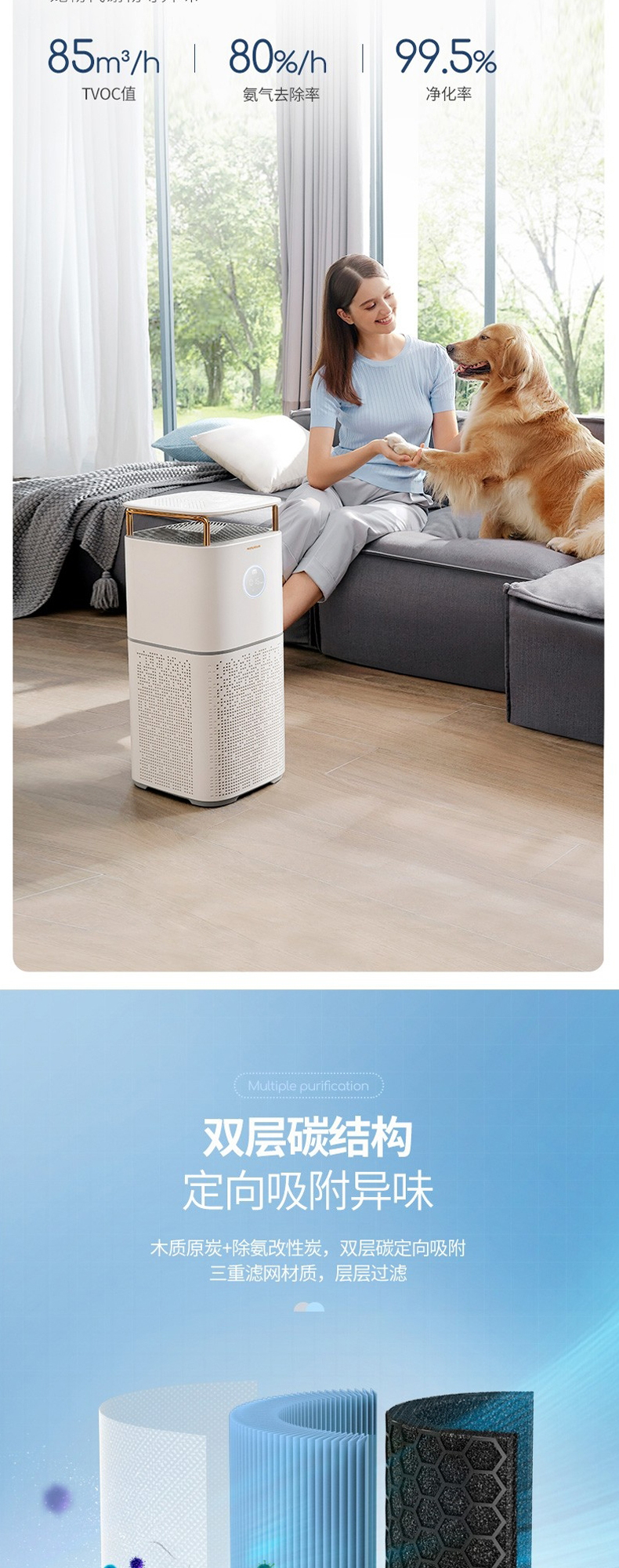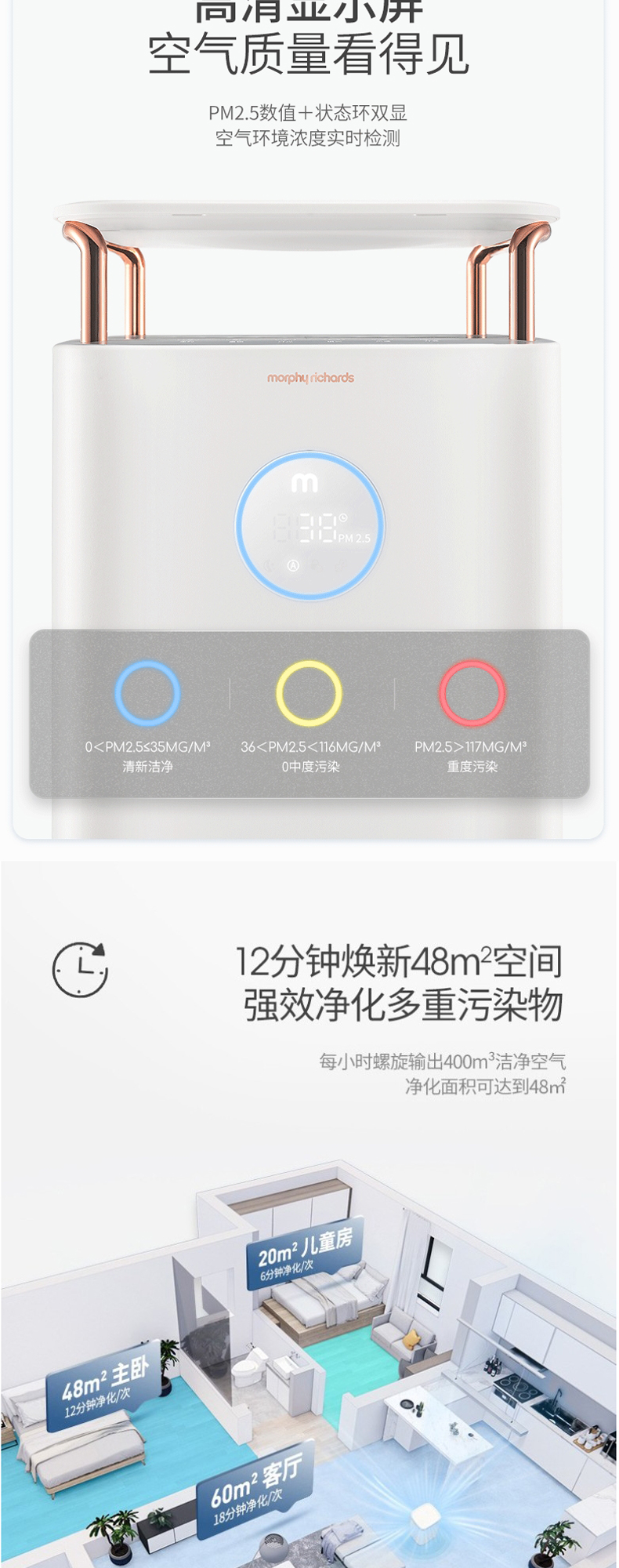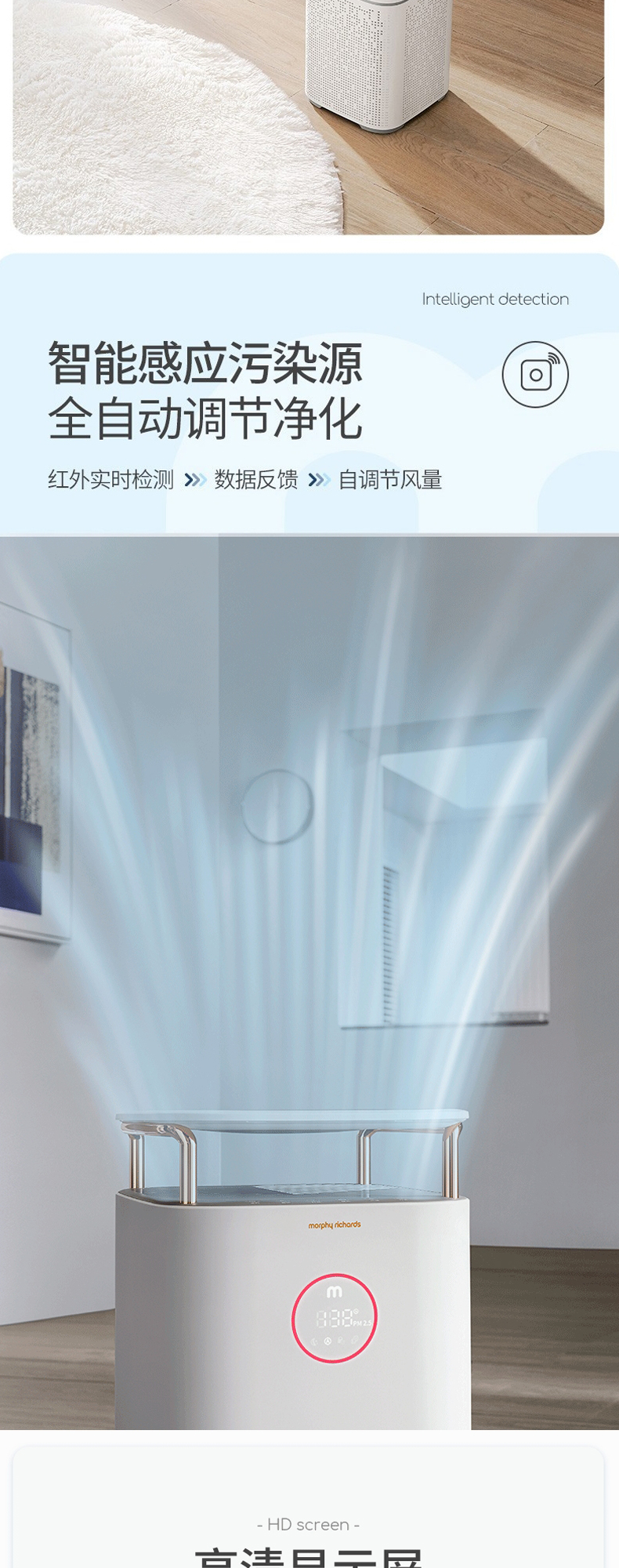 摩飞MR3500空气净化器家用去除甲醛神器吸烟除烟消毒机卧室内宠物净化机【摩飞】