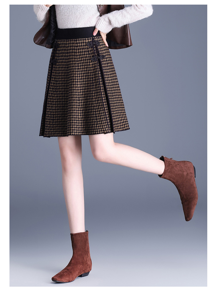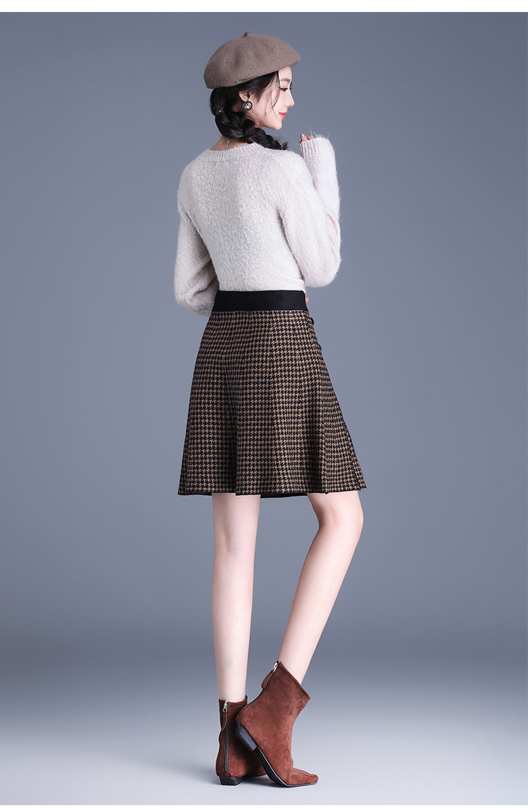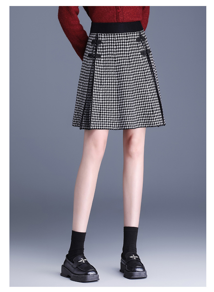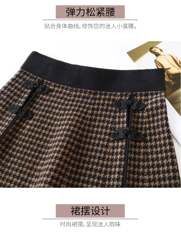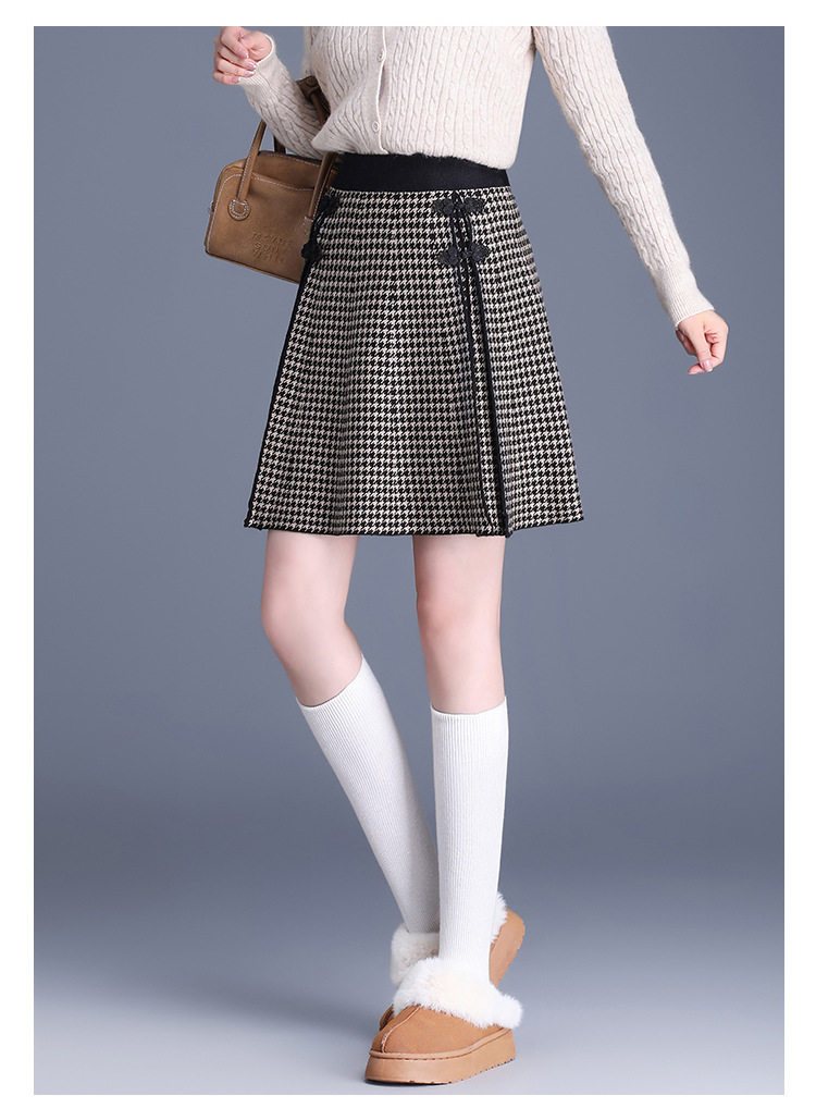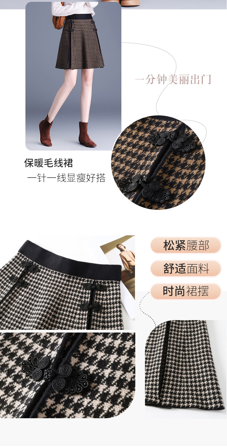 国风复古毛线千鸟格高腰半身裙MYX-621