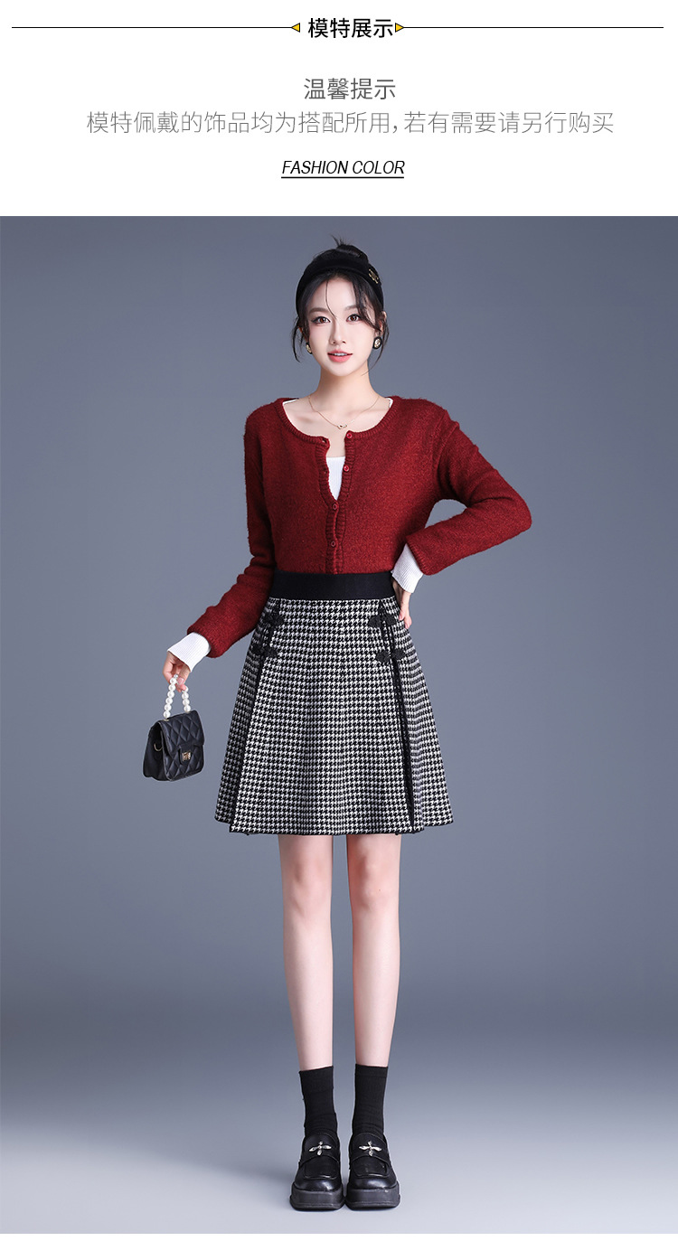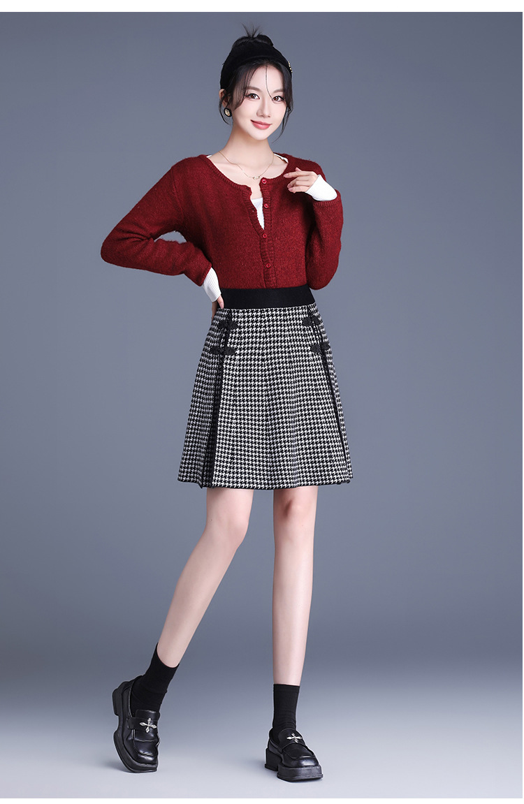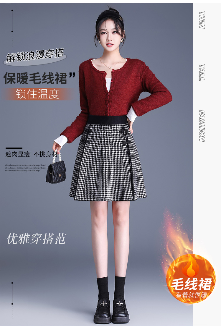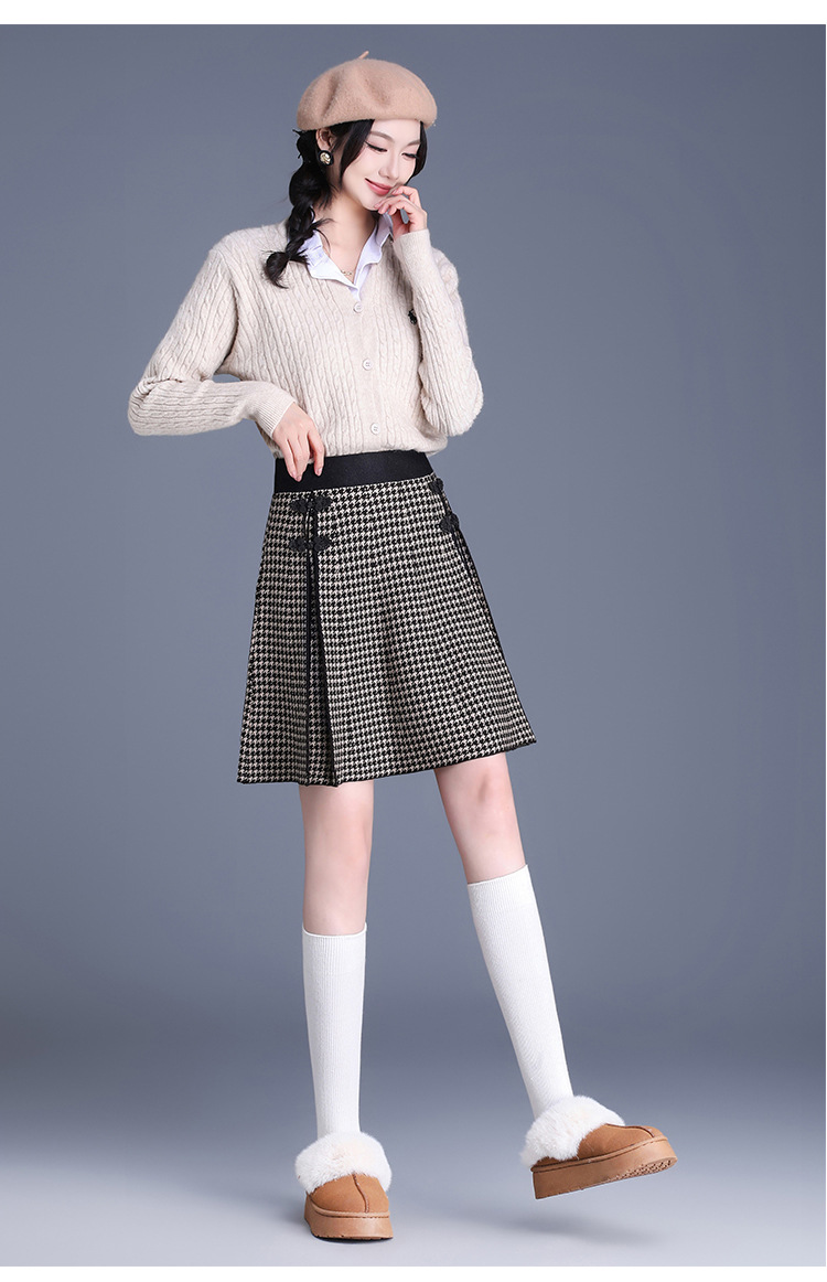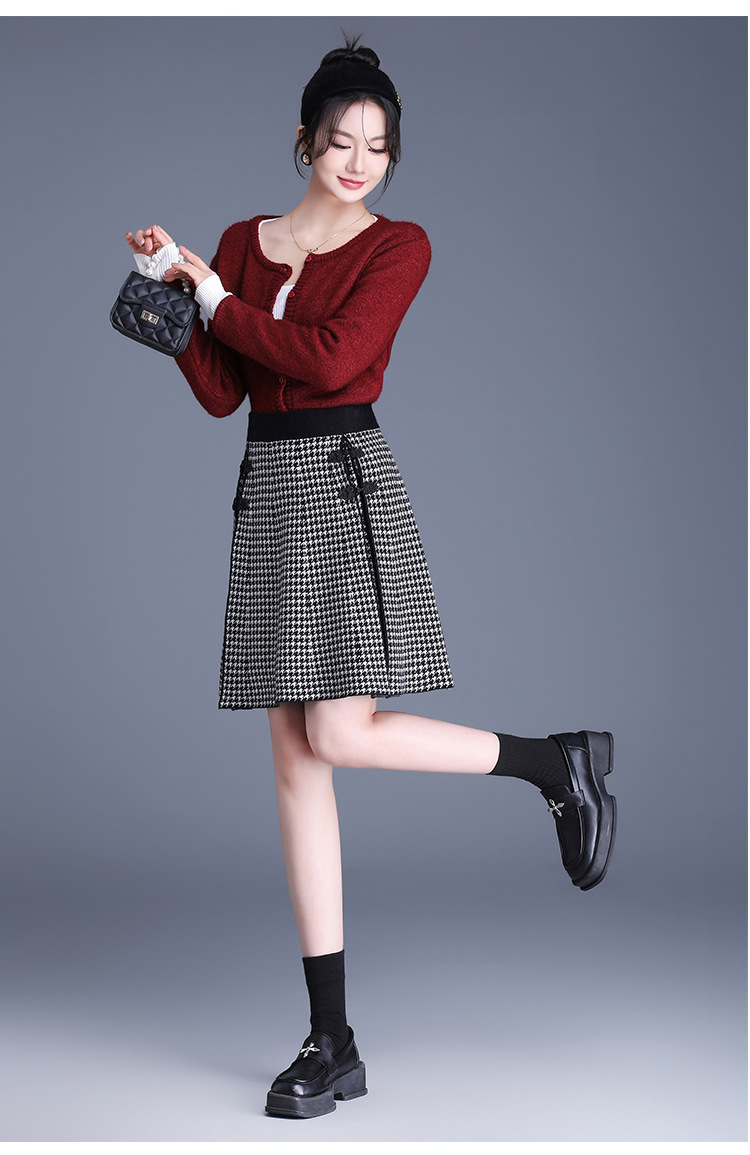 国风复古毛线千鸟格高腰半身裙MYX-621