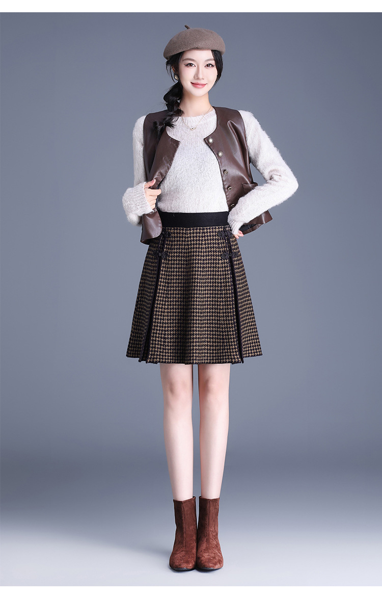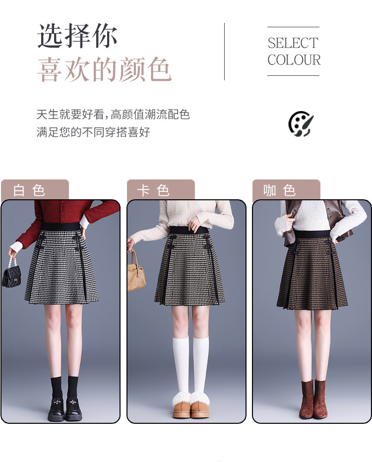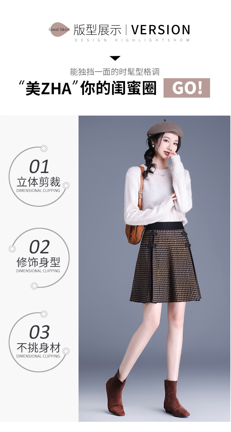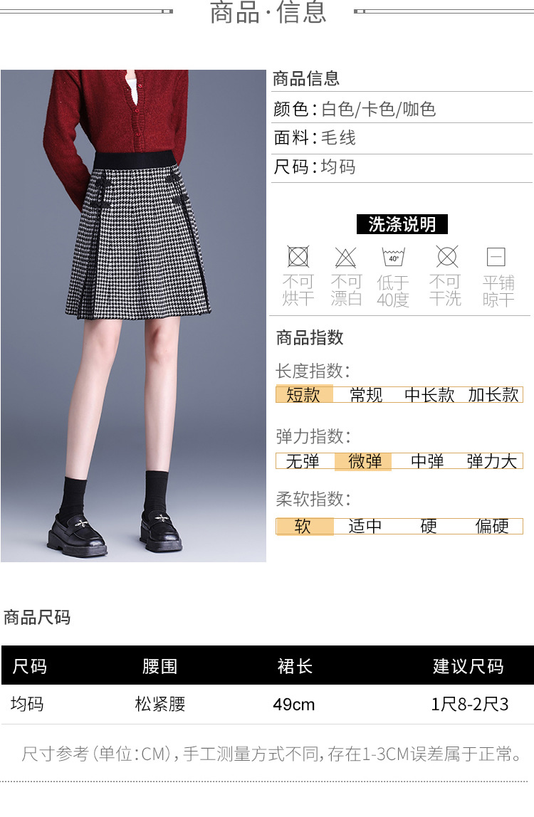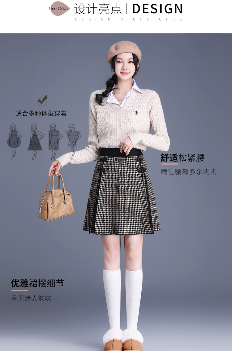国风复古毛线千鸟格高腰半身裙MYX-621