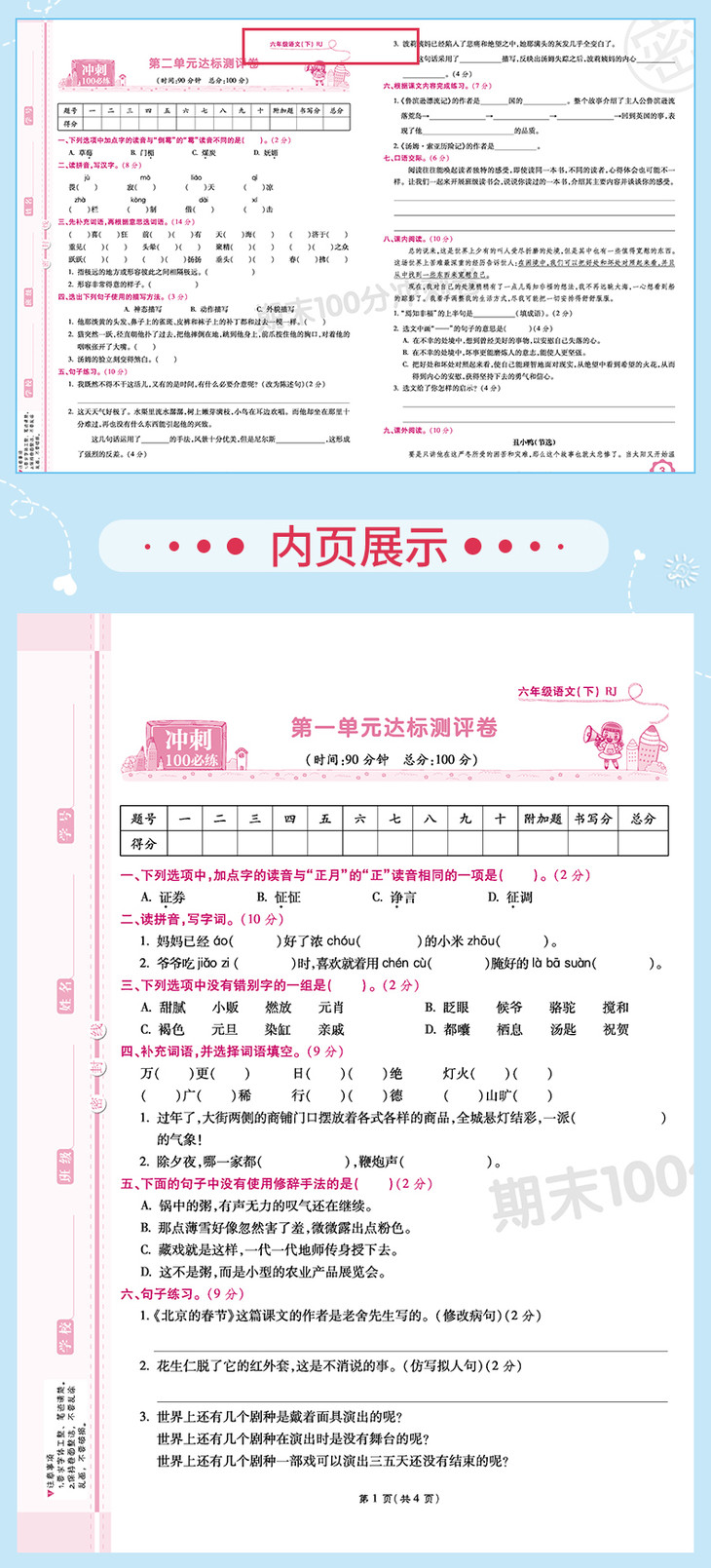 2021春新版 期末100分冲刺卷六年级语文下册人教版