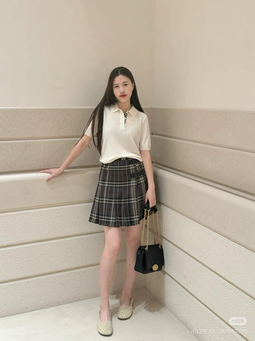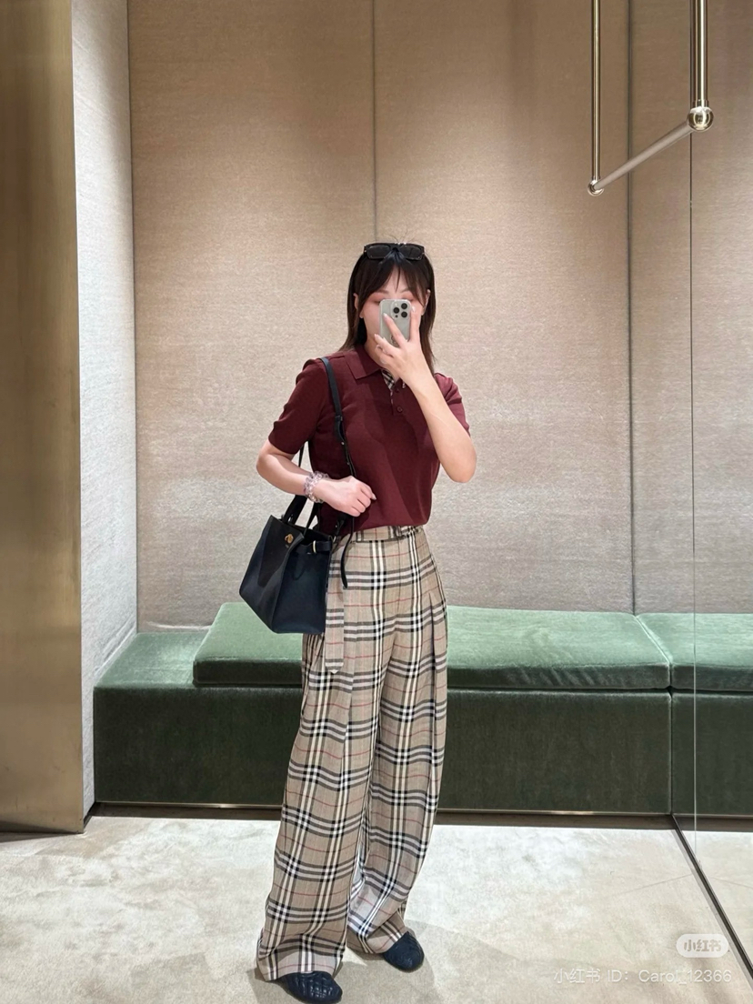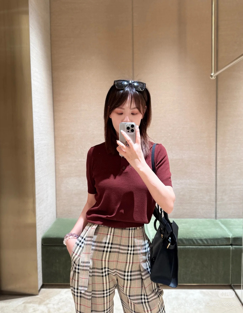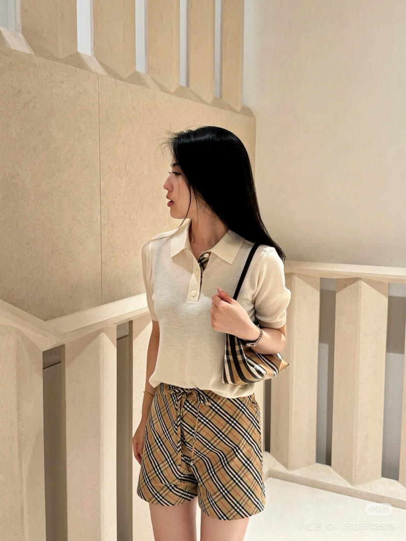 前襟的格纹,可以去呼应格纹短裤,格纹半裙或者格纹阔腿裤。