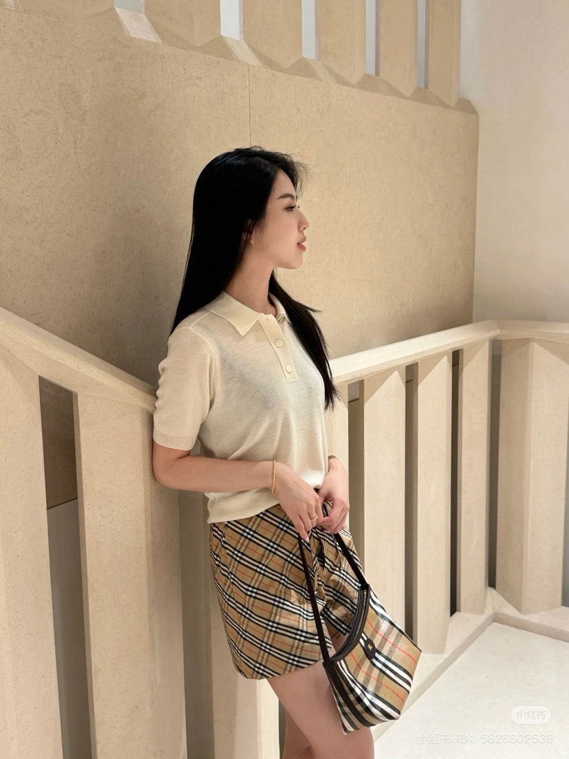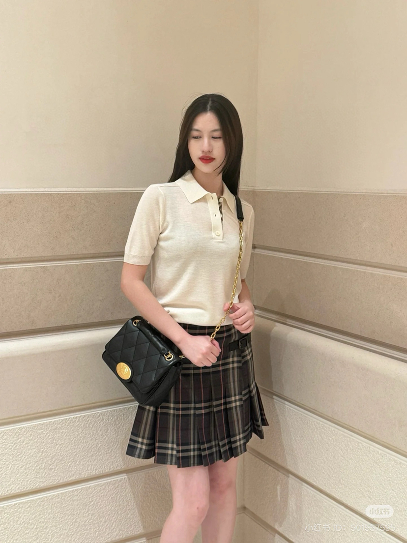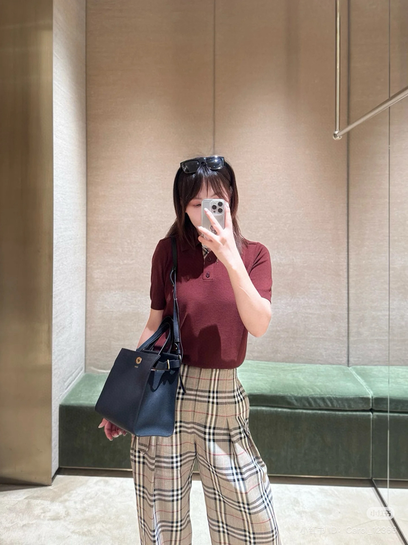 前襟的格纹,可以去呼应格纹短裤,格纹半裙或者格纹阔腿裤。