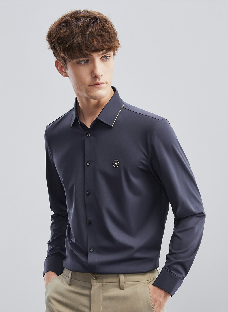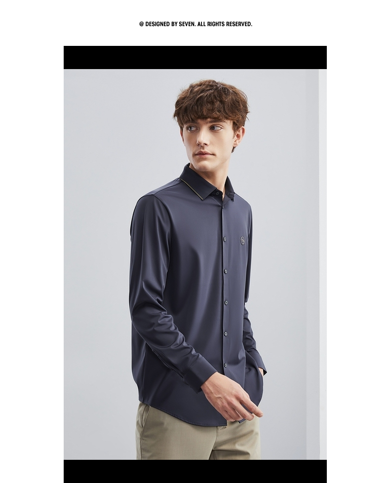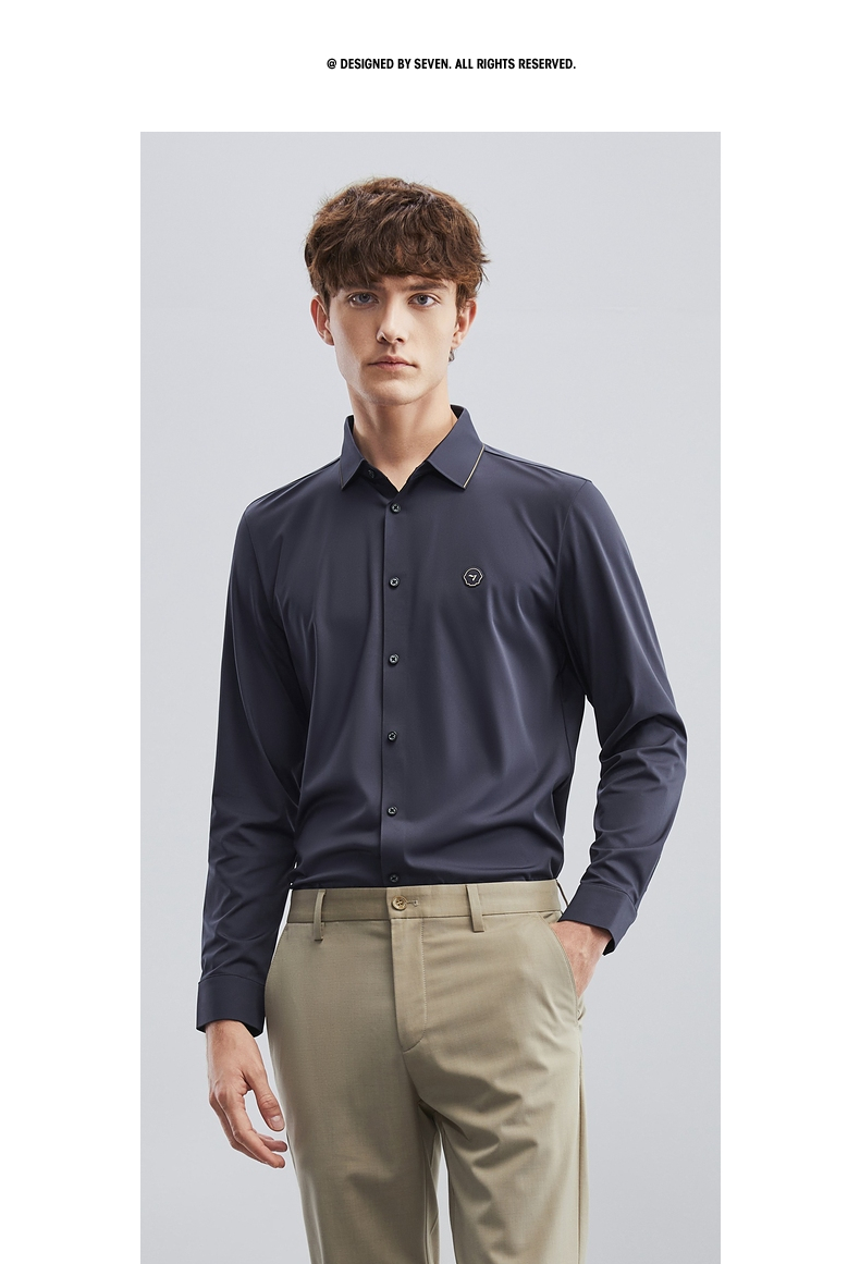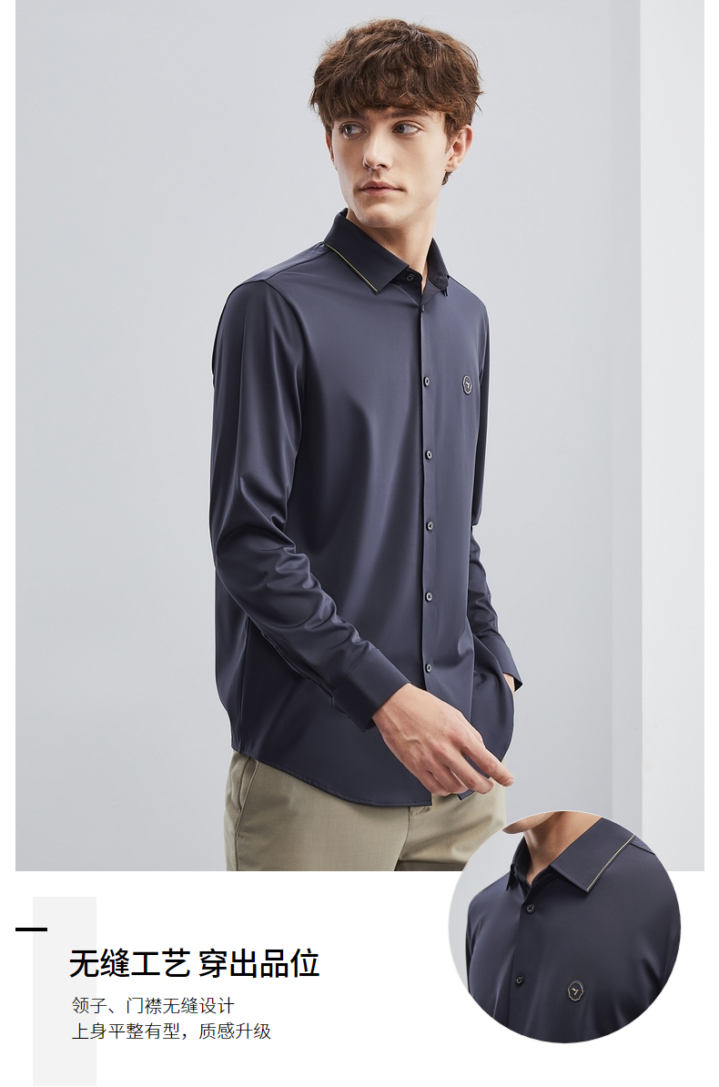 【特价】【无缝针织】柒牌男士衬衫长袖春季新款商务休闲高弹翻领衬衣 124A70710