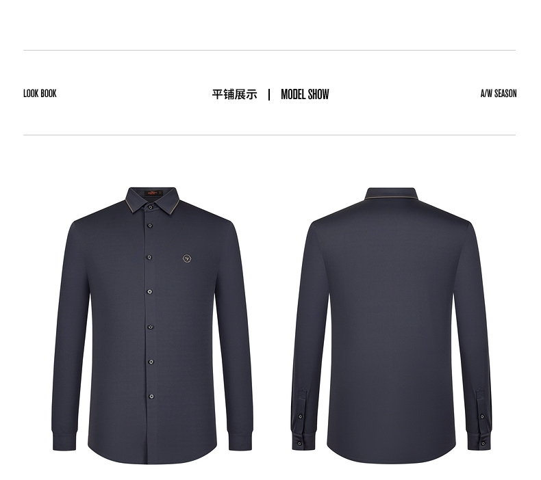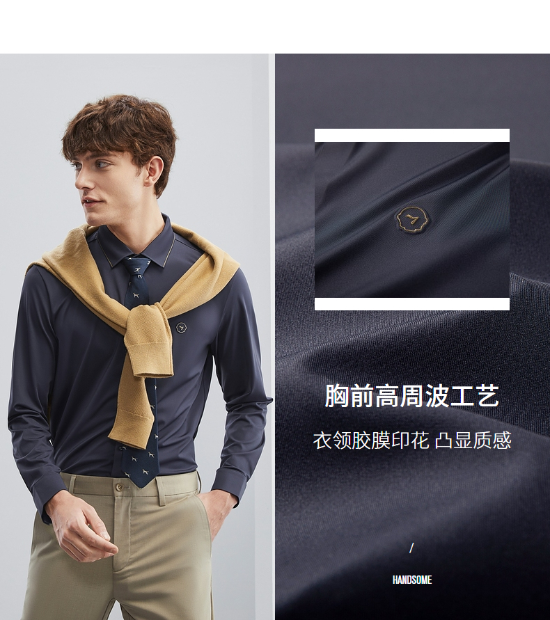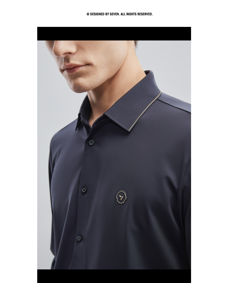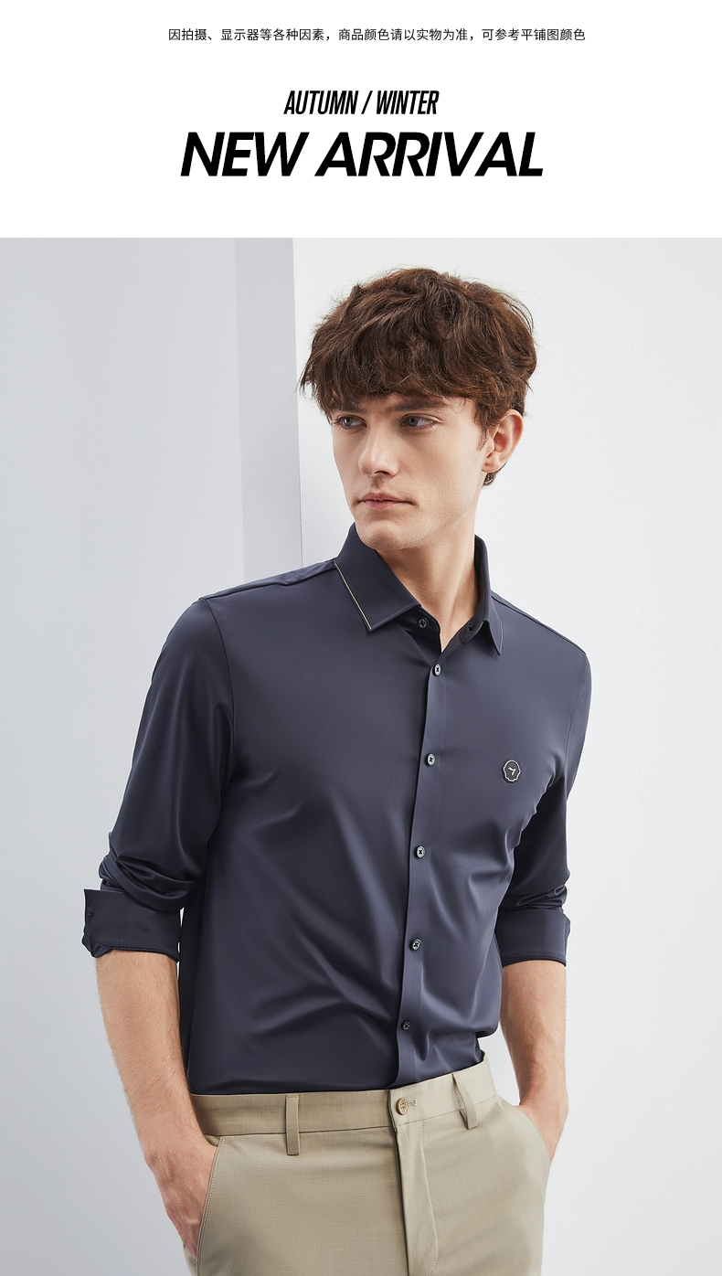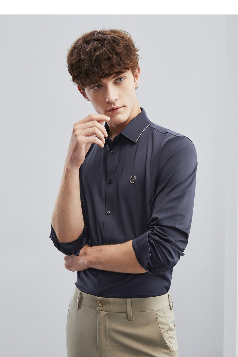 【特价】【无缝针织】柒牌男士衬衫长袖春季新款商务休闲高弹翻领衬衣 124A70710
