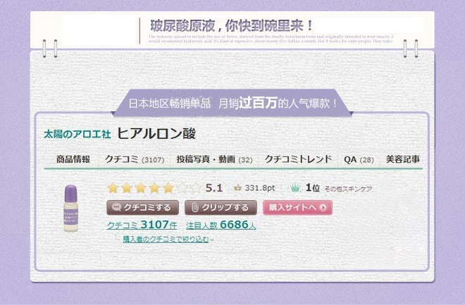 【现货】日本 COSME大赏 太阳社 玻尿酸透明质酸保湿原液
