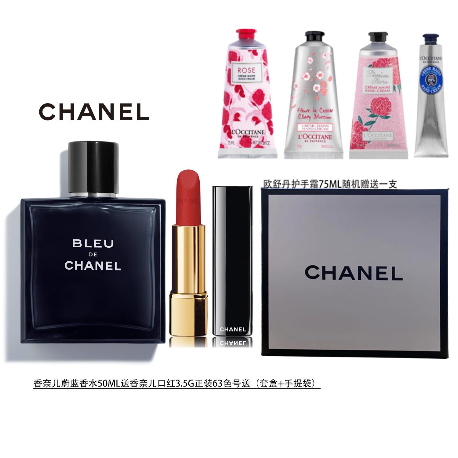 【品牌授权】CHANEL香奈儿 蔚蓝男士淡香水送50ml香奈儿口红女士 63色号#3.5g再送欧舒丹护手霜75ML(套盒))