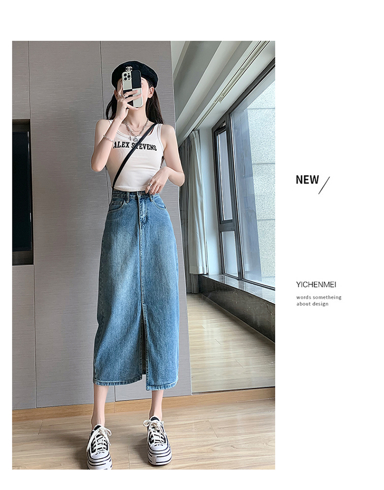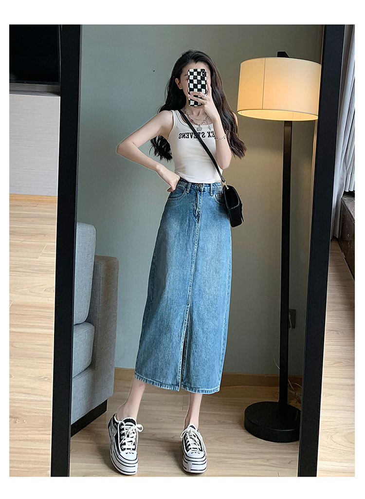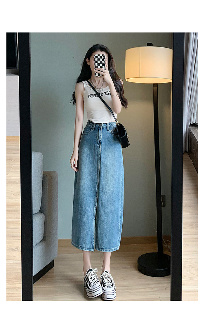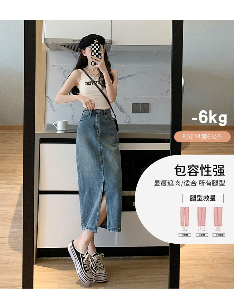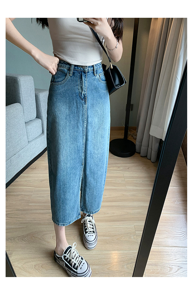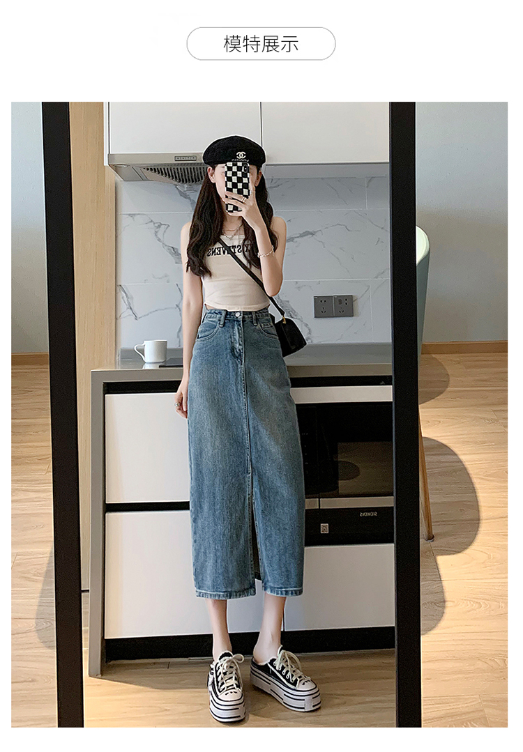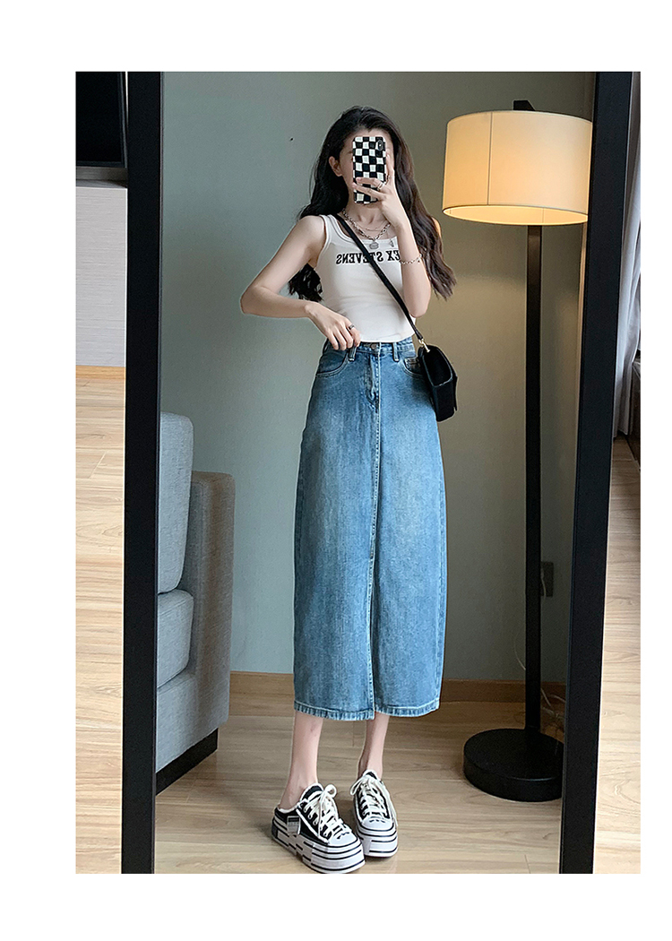 【一件穿三季】直筒牛仔半身裙开衩全棉高腰七分裙 藏肉显腿瘦 时尚穿搭初春夏秋搭配
