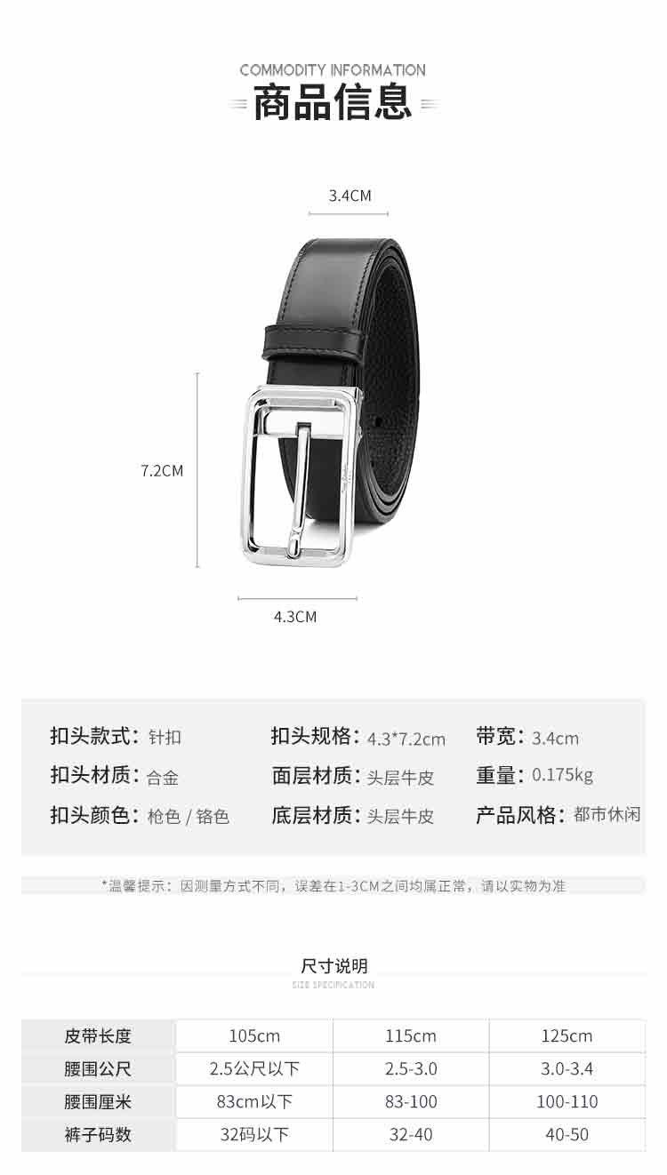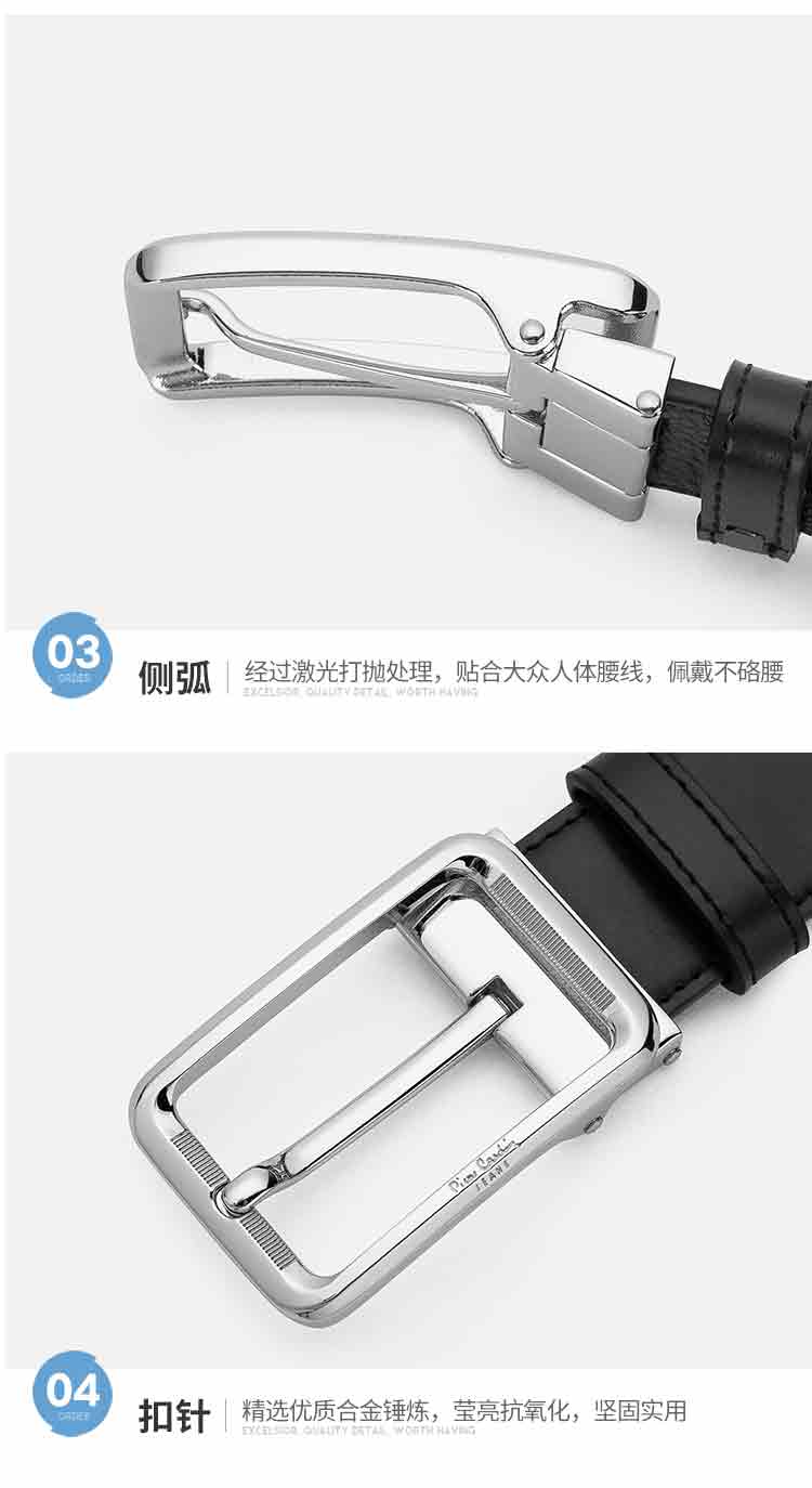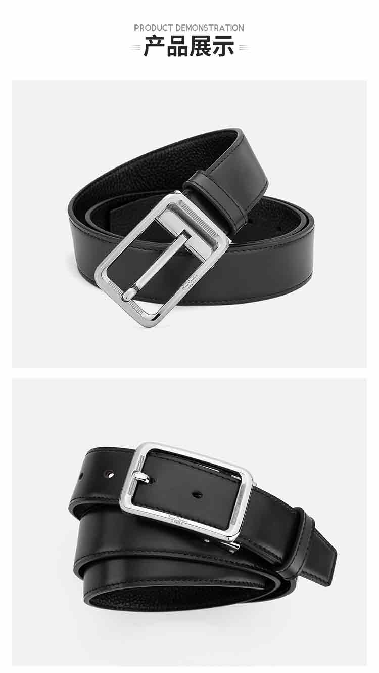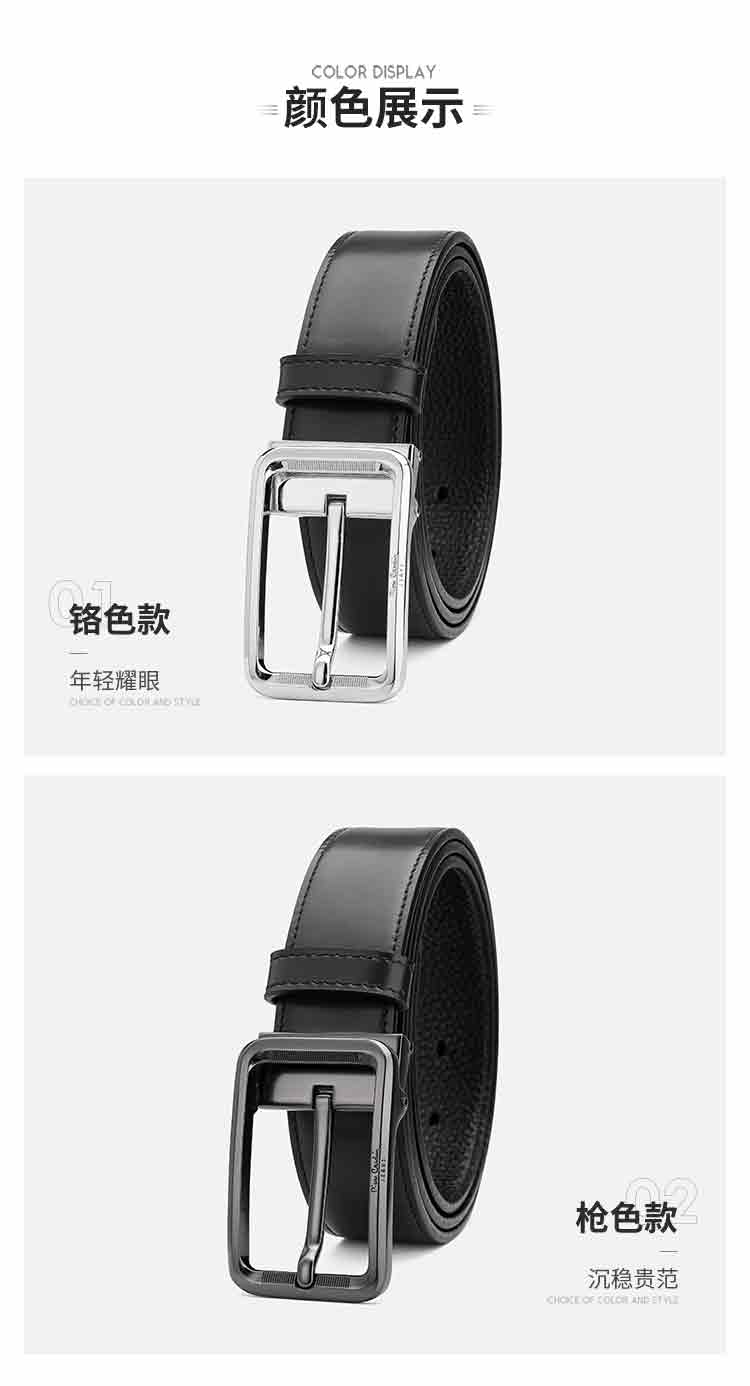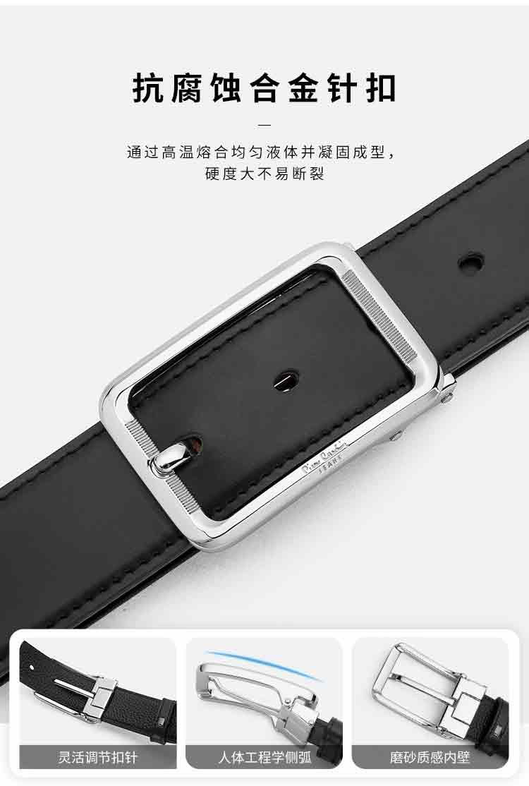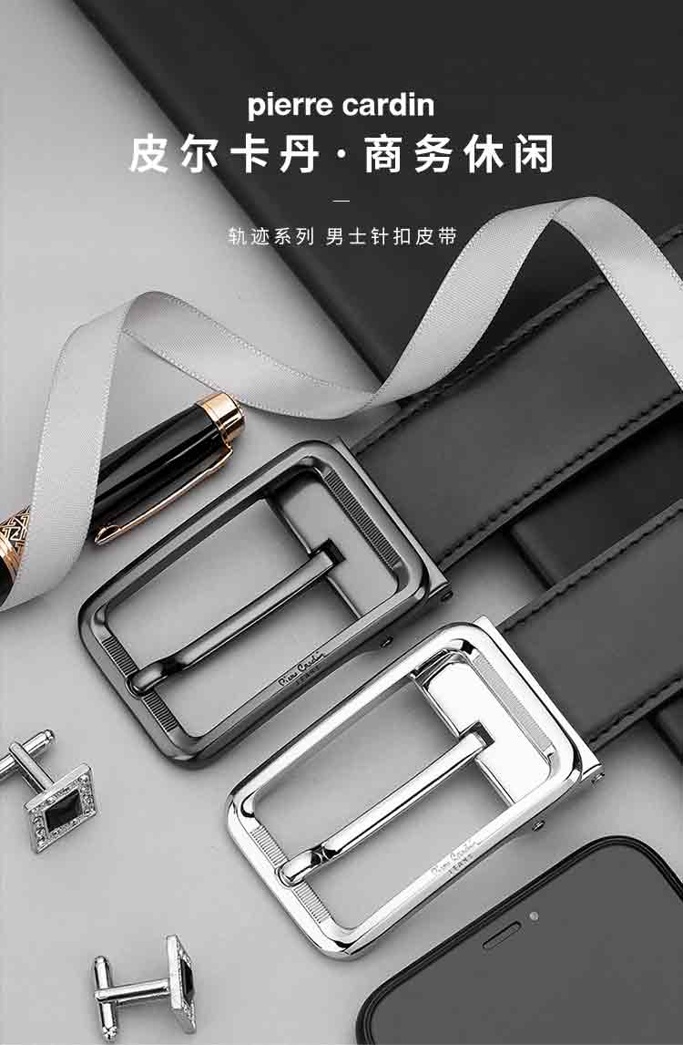 皮尔卡丹皮带男士真皮头层牛皮裤腰带新潮针扣皮带男款