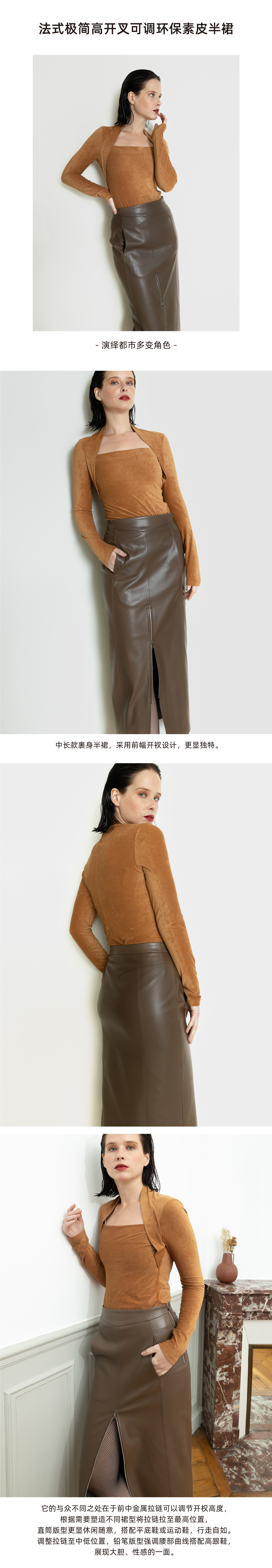 法式极简高开叉可调环保皮长半裙