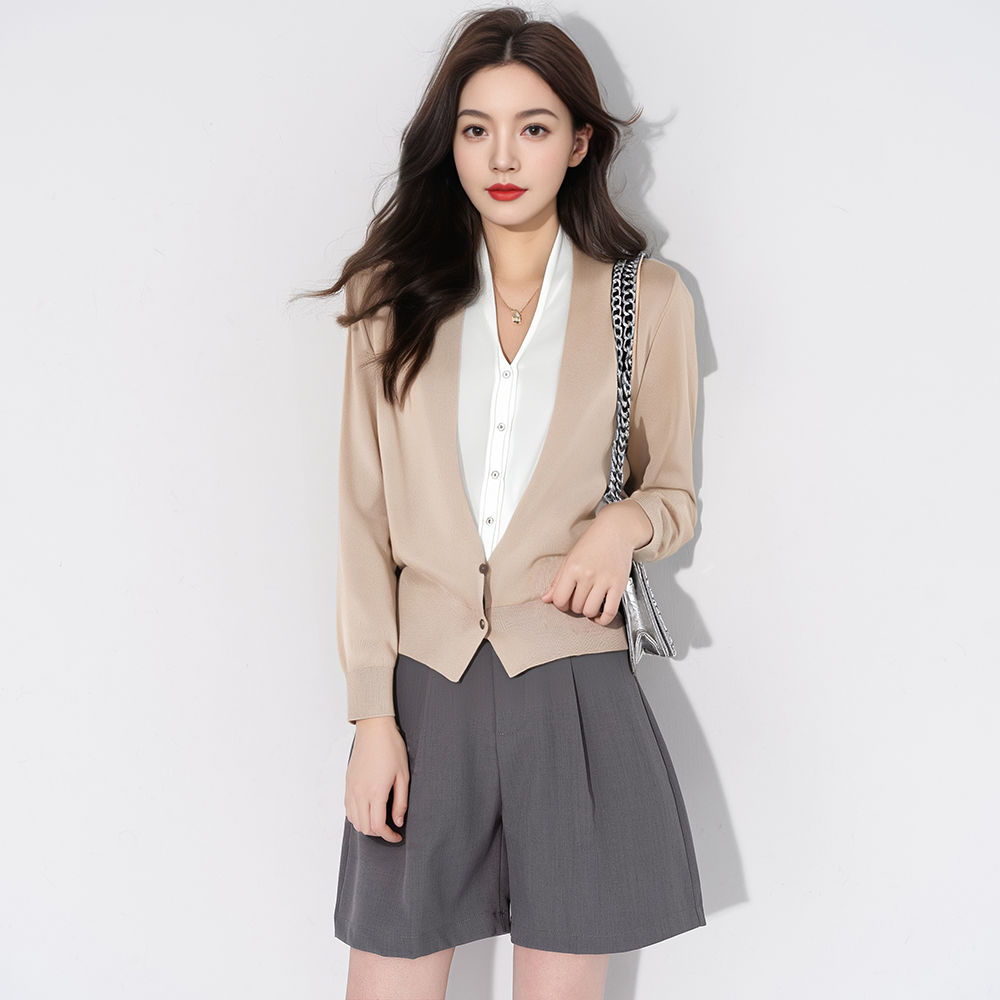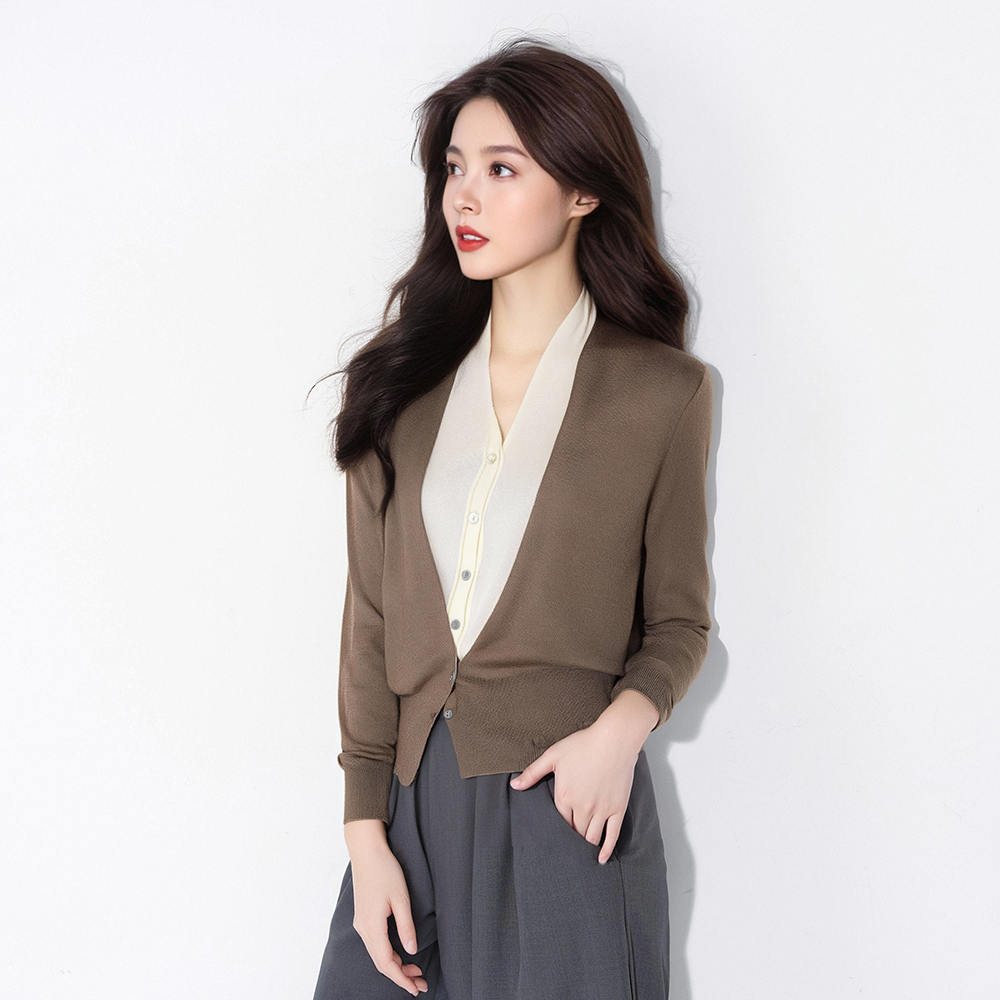 34%羊毛假两件针织开衫上衣(送皮带) A-5753