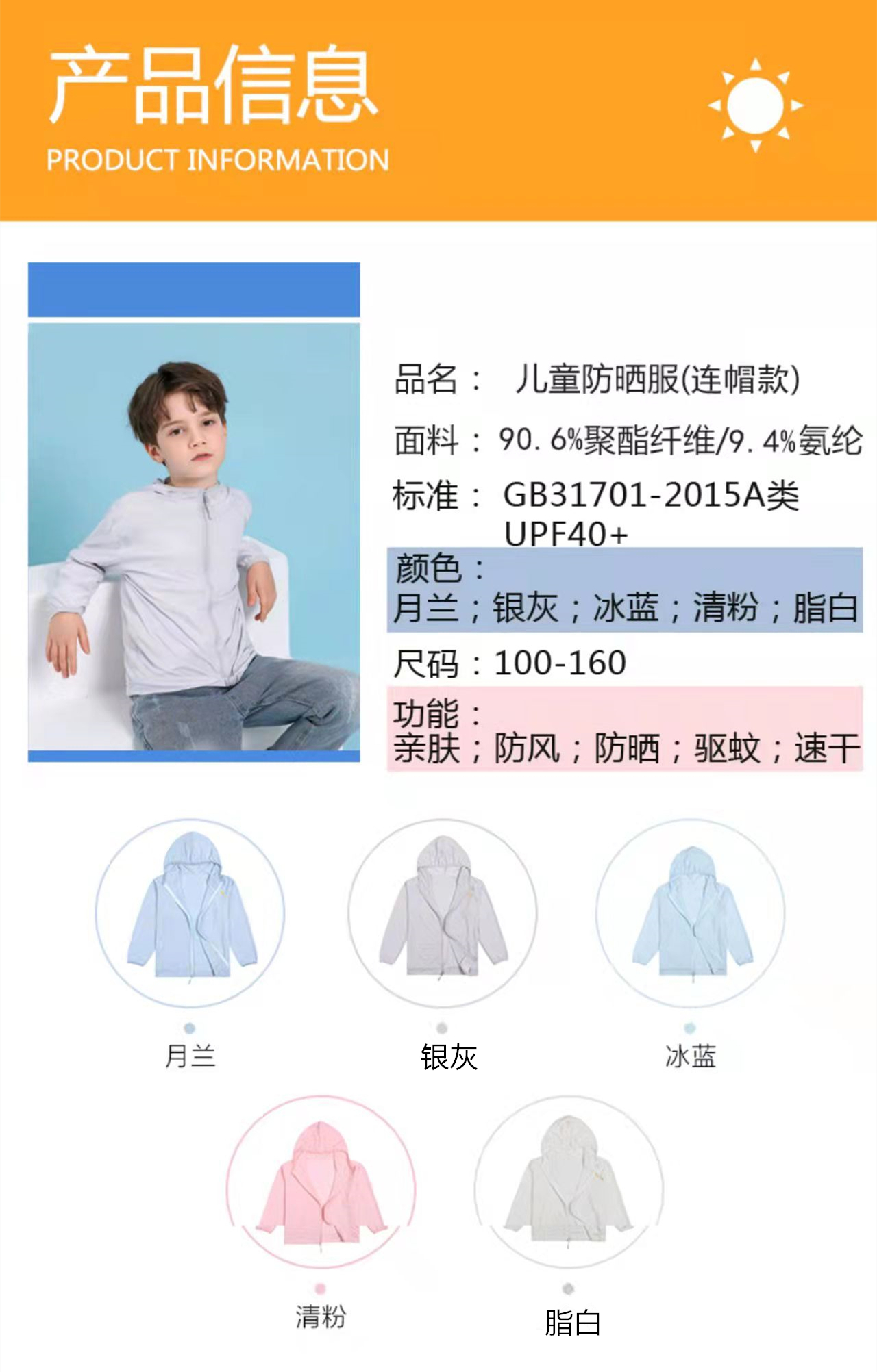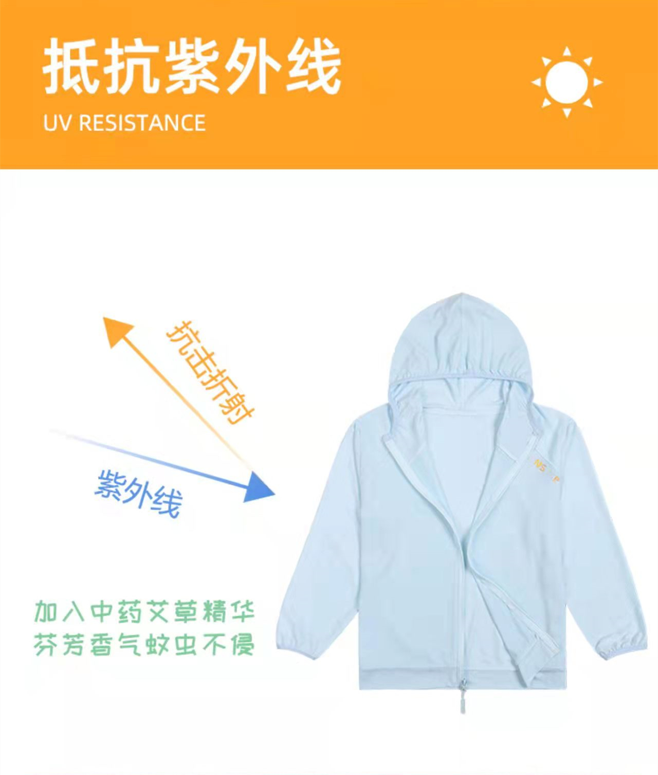 【品名】儿童A类艾草防蚊冰丝防晒衣