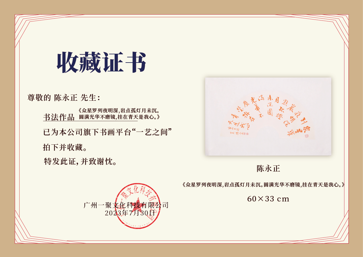 陈永正书法33x60CM《众星罗列夜明深,岩点孤灯月未沉。圆满光华不磨镜,挂在青天是我心》1.78平尺手写纸本宣纸作品[原作编号:SF0691]