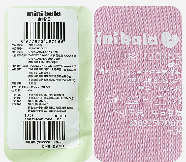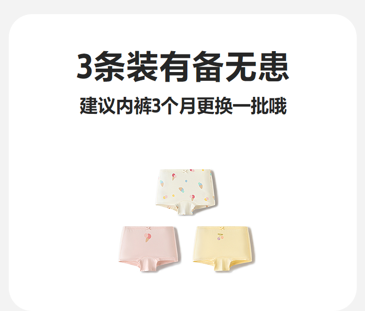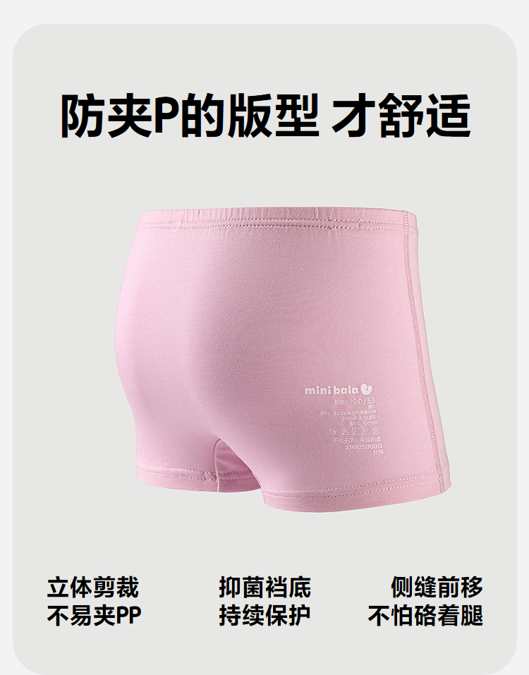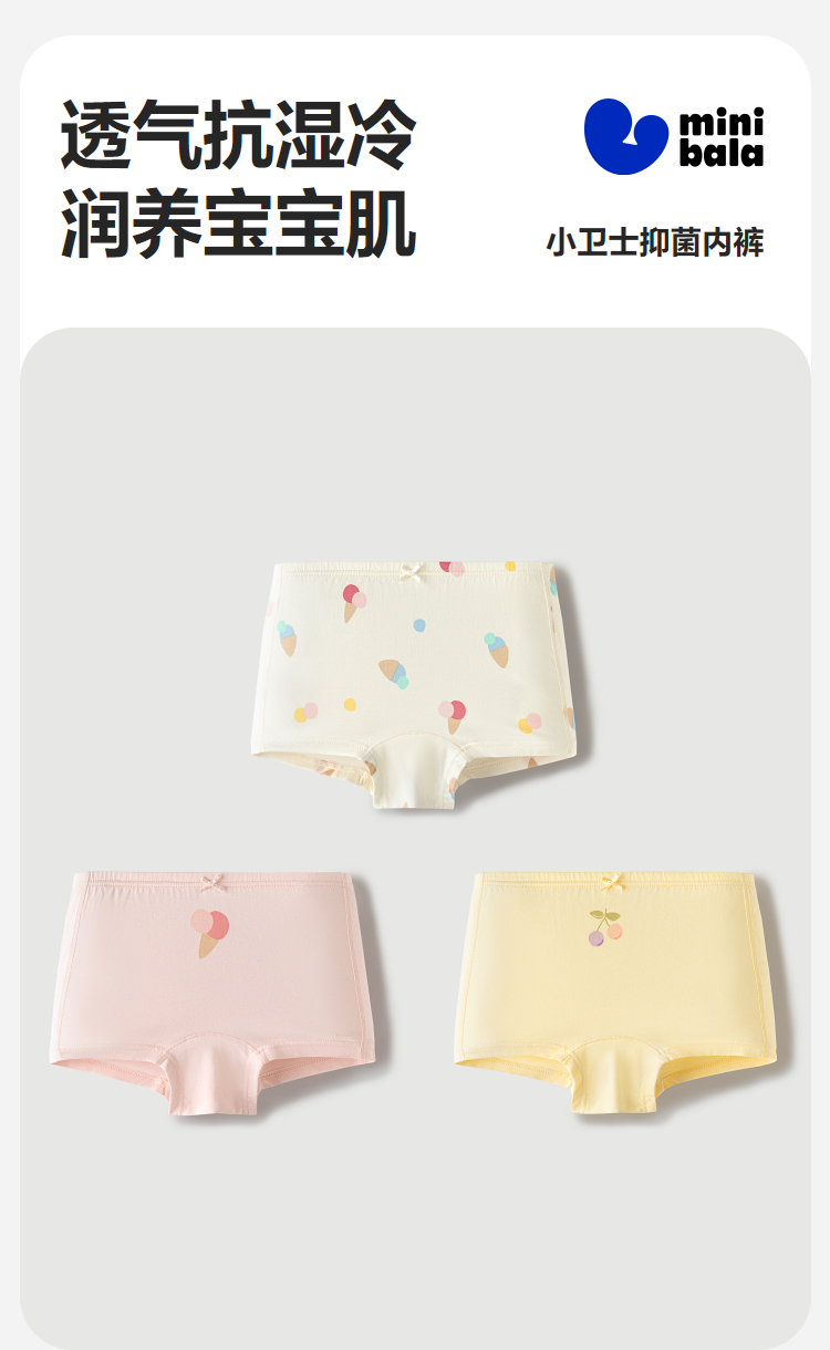 迷你巴拉儿童内裤女童吸湿排汗宝宝平角内裤抑菌不夹PP 3条装