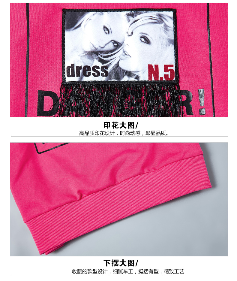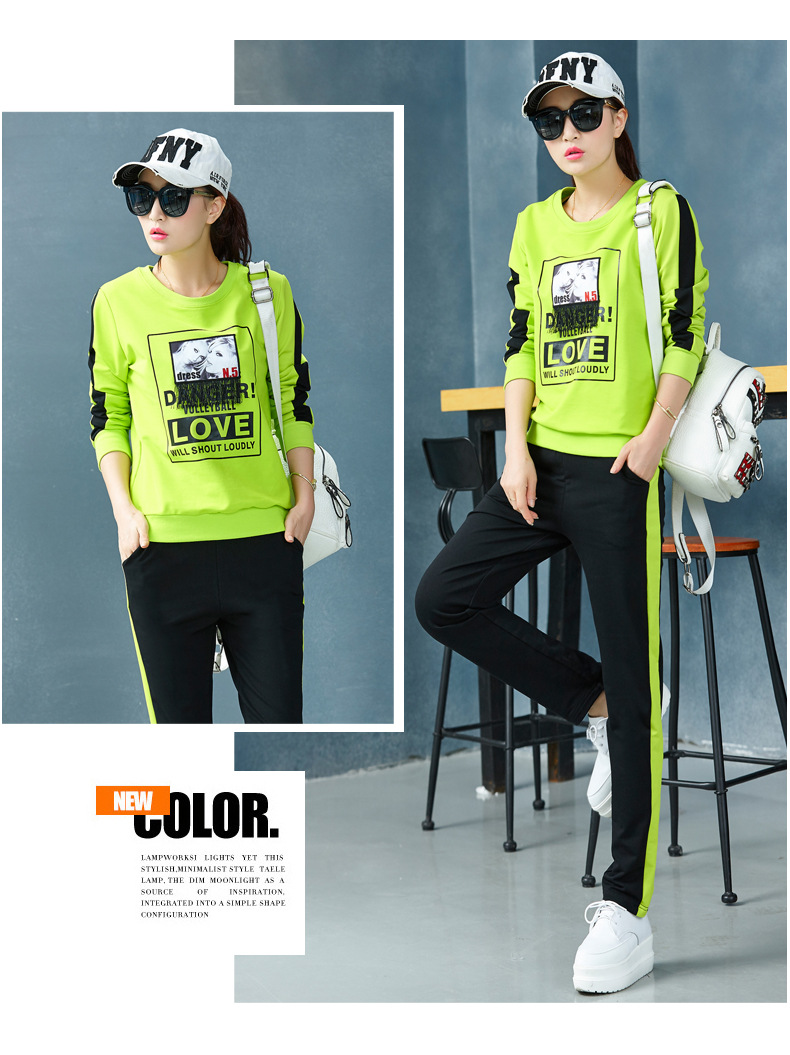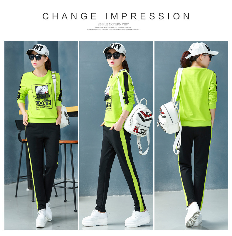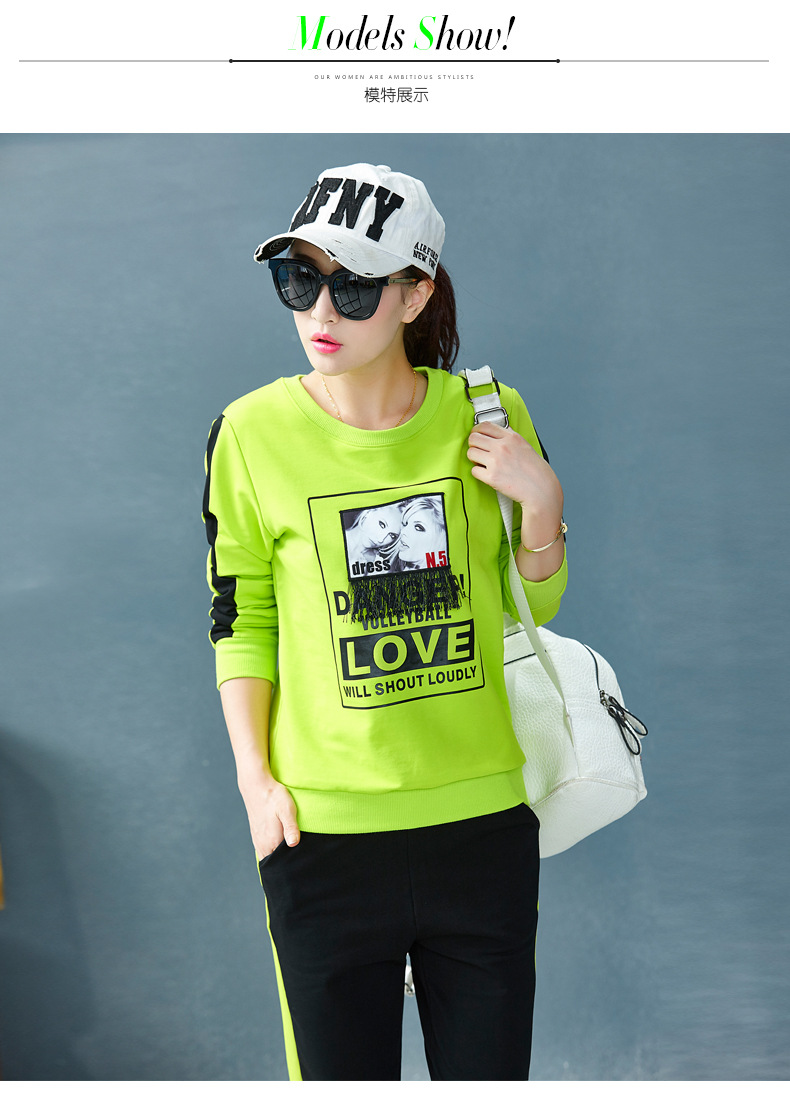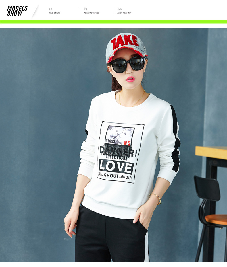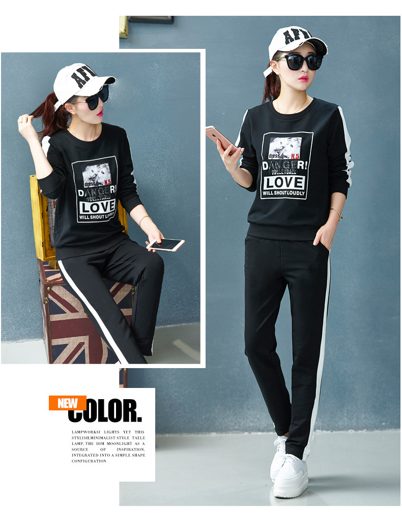 【套装女】宝多芬秋季靓丽女运动服棉质套头运动套装时尚印花条纹女休闲套装