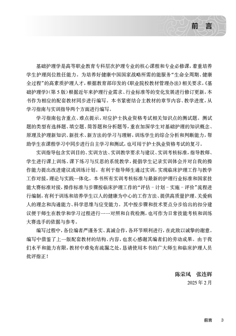 基础护理学学习指导 十四五规划教材全国高等职业教育专科配套教材 陈荣凤 张连辉 供护理助产专业用9787117376570人民卫生出版社