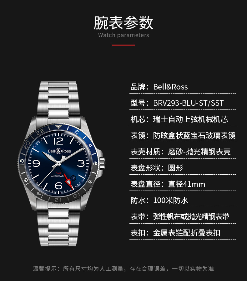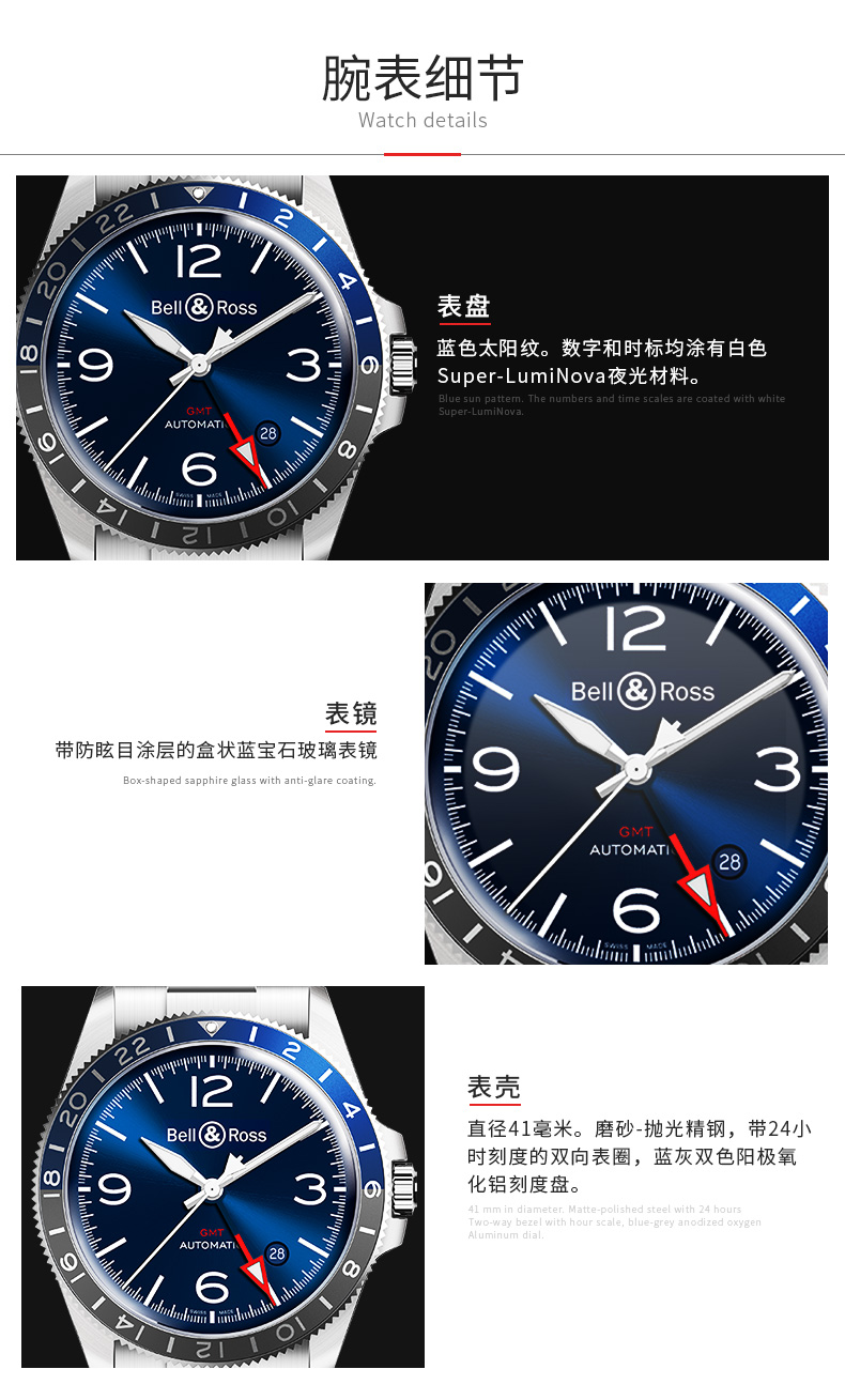Bell & Ross 柏莱士瑞士进口全自动机械手表男士蓝色 BRV293-BLU-ST-SST