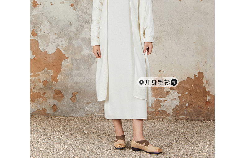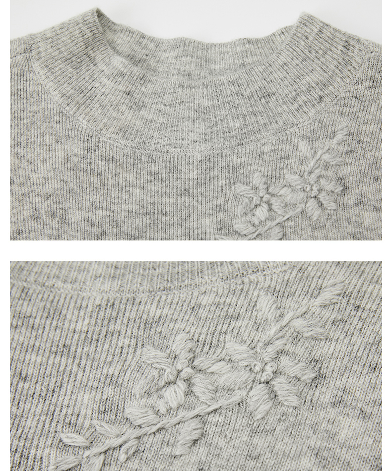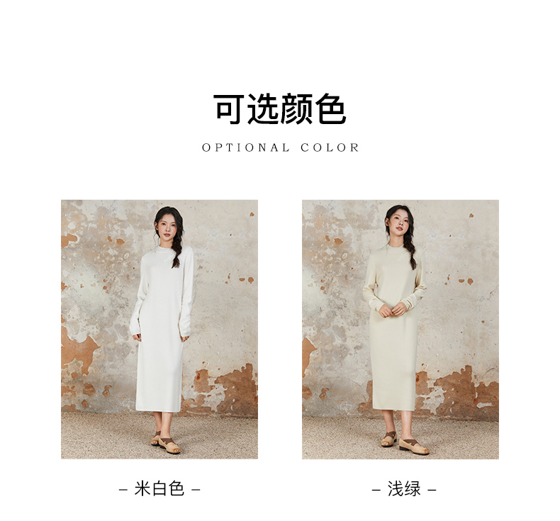 Famecoco范可儿连衣裙含羊毛纯色圆领刺绣H型文艺长裙女FAB6FA032