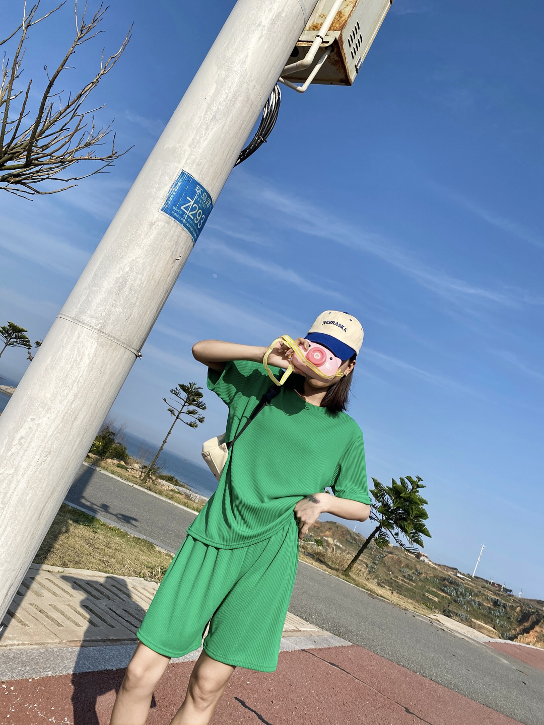 3、短裤巧妙地遮住腿部的缺陷,高腰设计拉长腿部比例