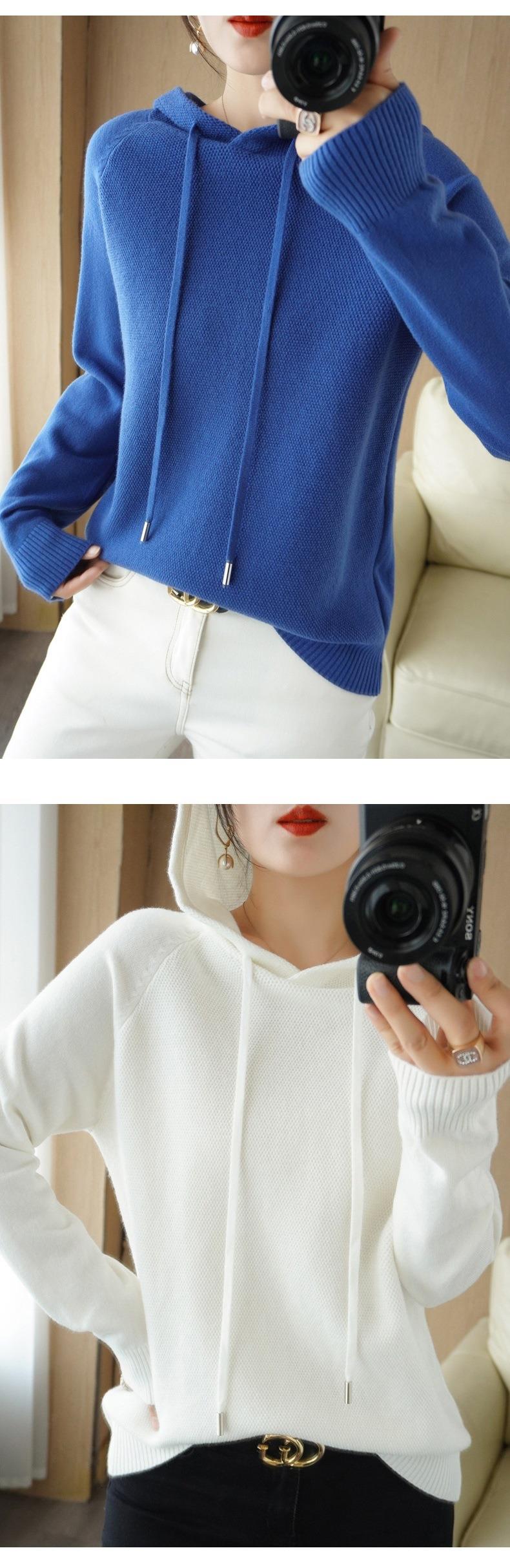 连帽卫衣女春秋2023新款帽衫打底衫内搭针织衫休闲大码带帽毛衣女