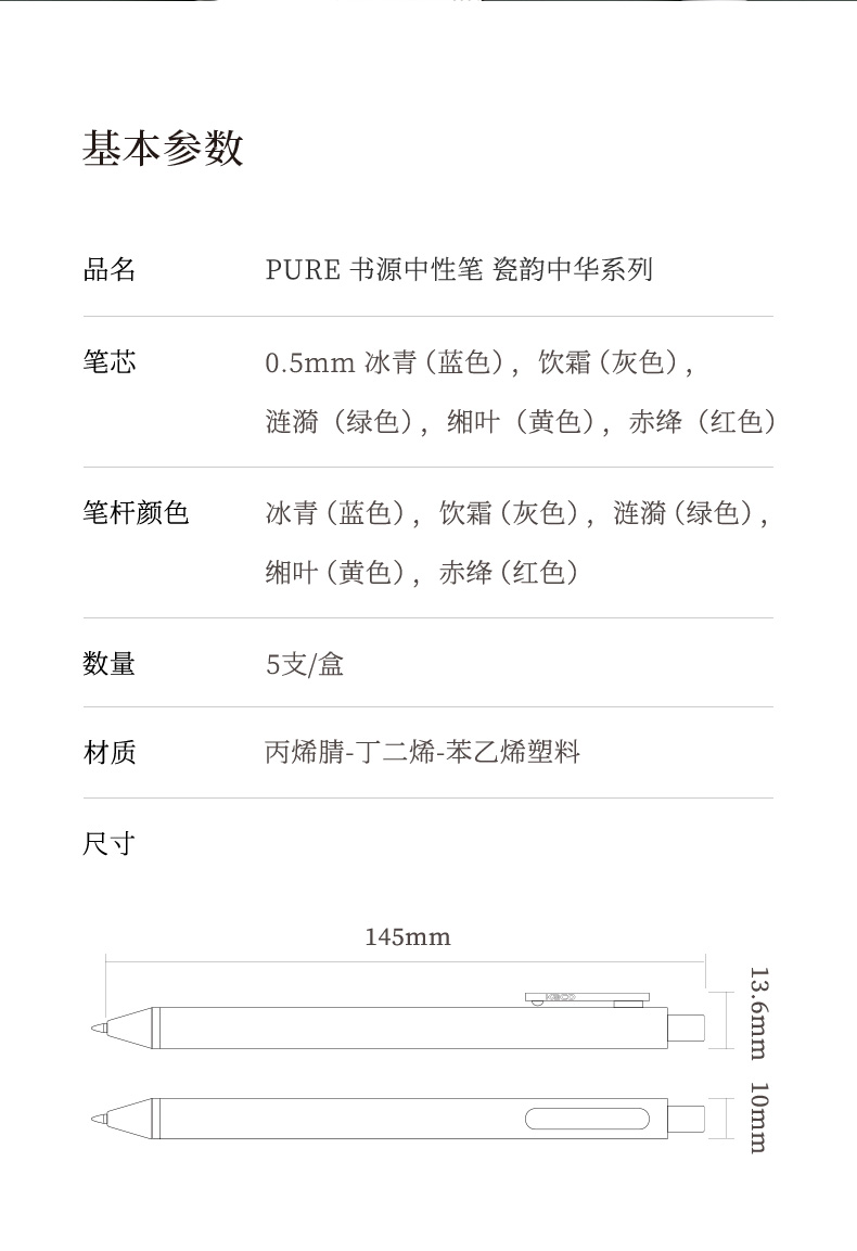 【KACO】PURE 书源中性笔 05跟色笔芯 瓷韵中华(5支PET装含底托)(国博联名款)