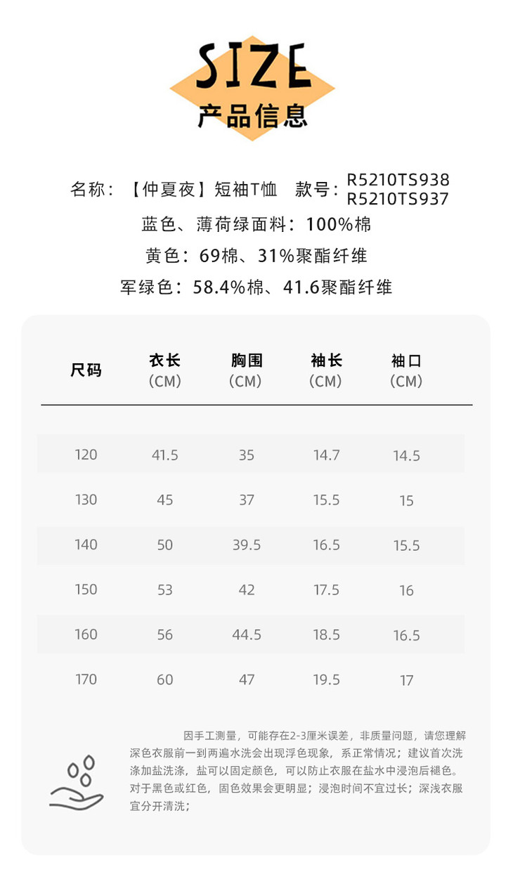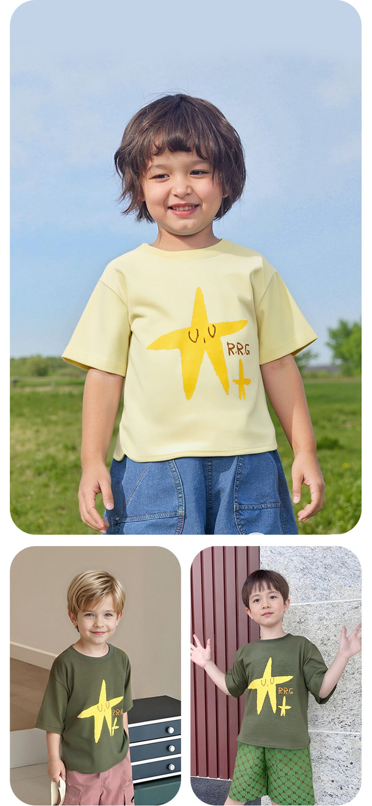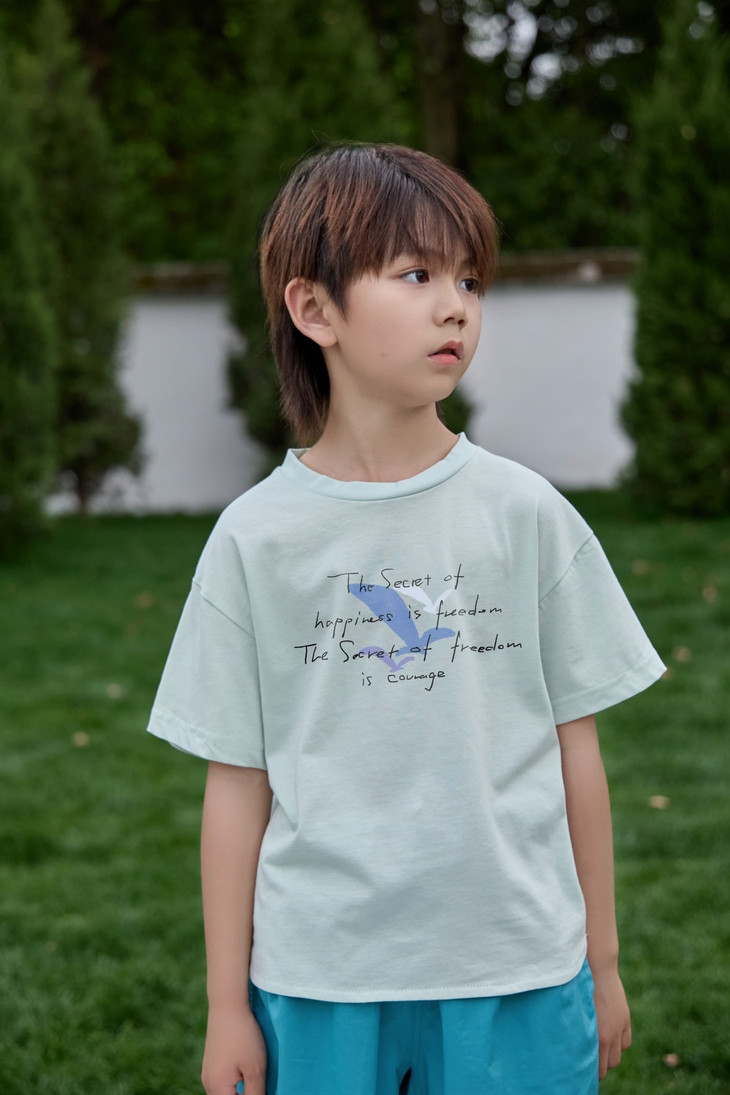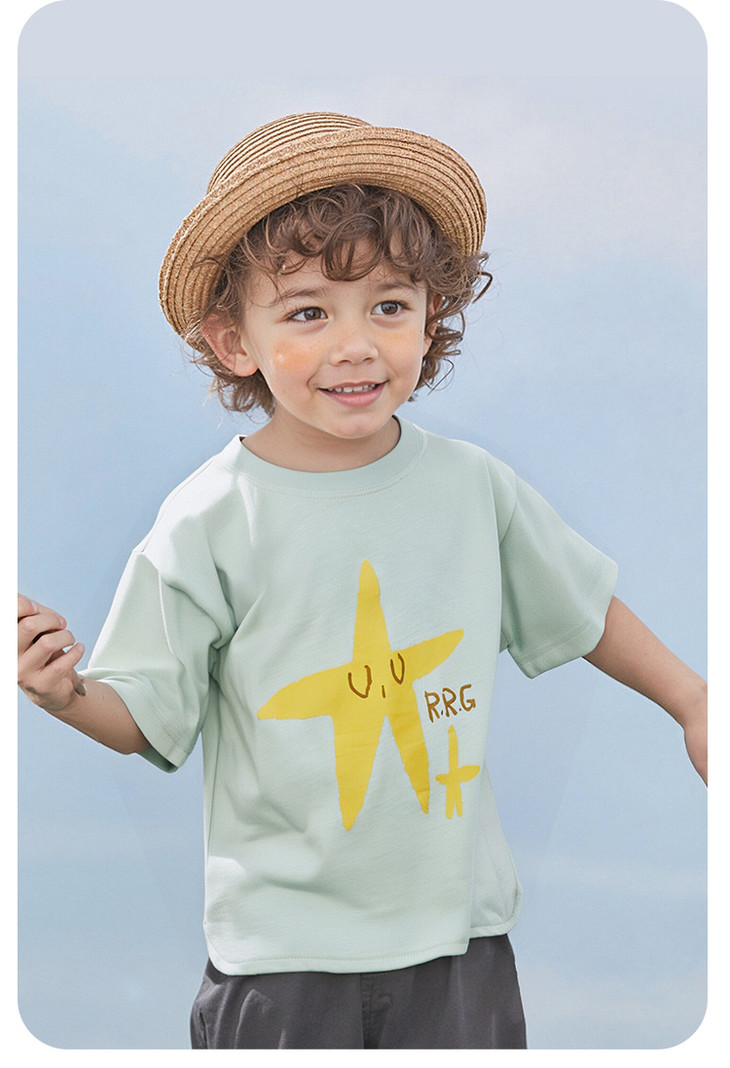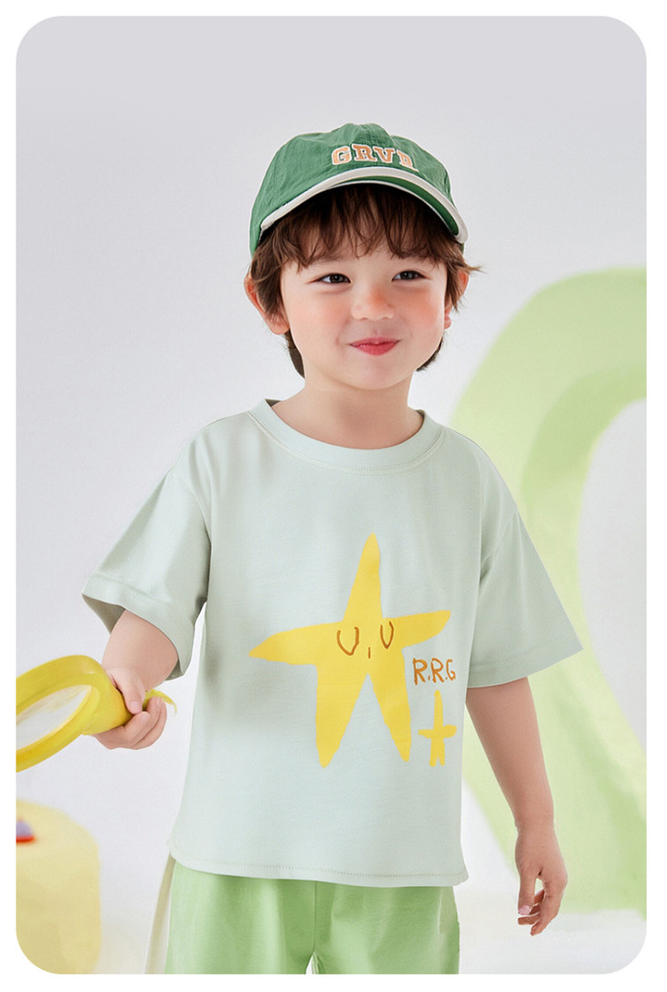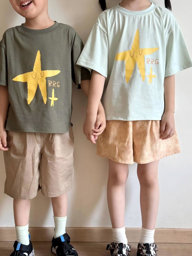 🌟莫兰迪四色可选 克莱因蓝、薄荷绿、浅蛋黄、军绿色 🎠户外游玩、居家日常轻松适配各种场景, 让宝贝每天都是亮眼的时尚小达人~ 👕基础圆领设计,宽松版型不束缚, 弧形下摆开叉活动自如更开心! 水印做旧工艺,减少胶感不闷汗💧! 俏皮可爱,为宝贝的夏夜添满欢乐。