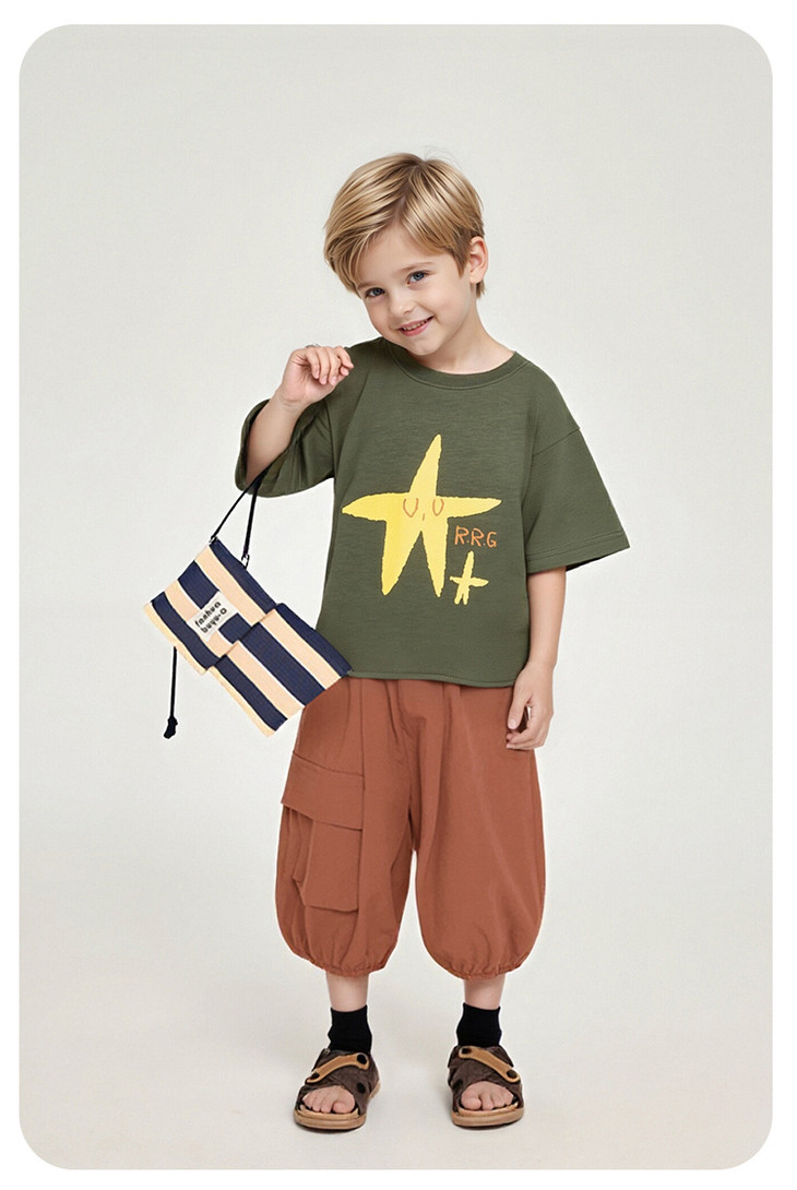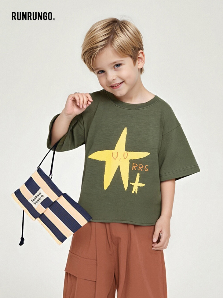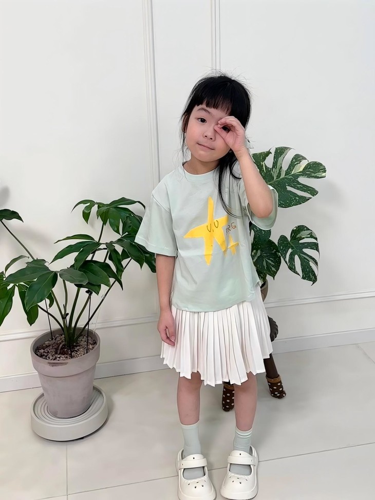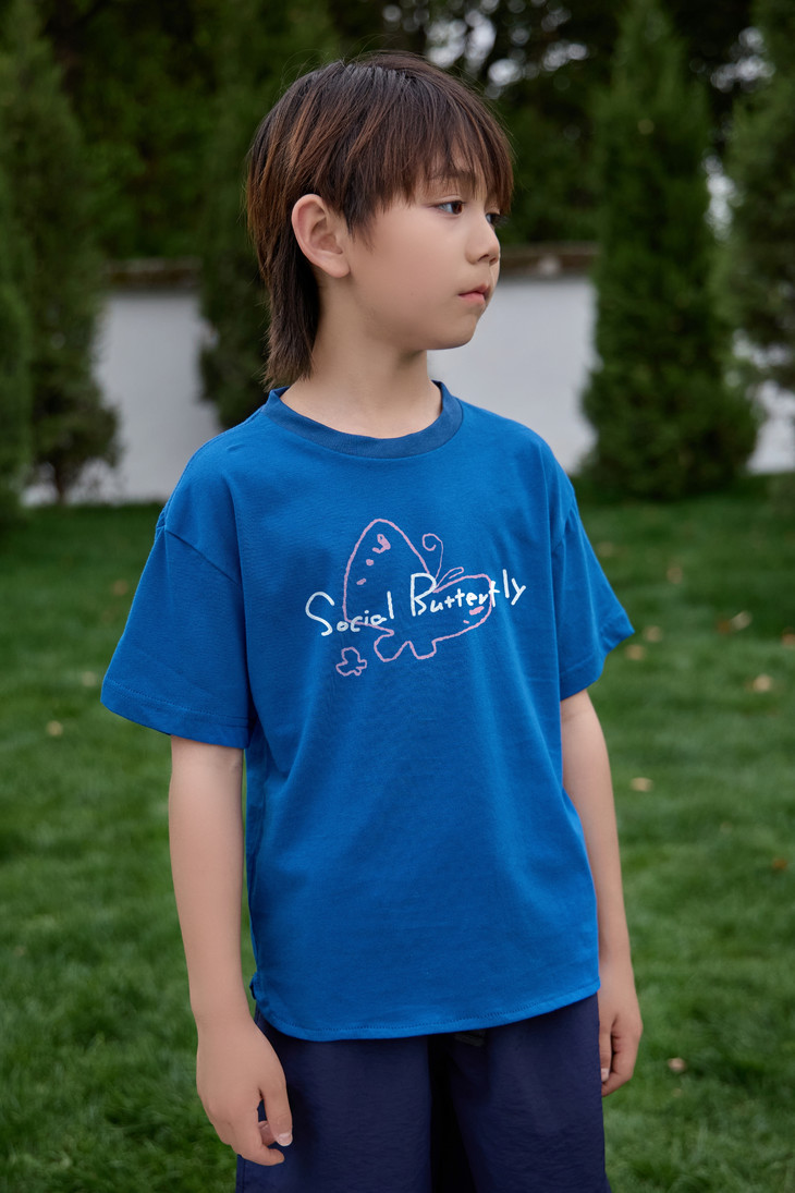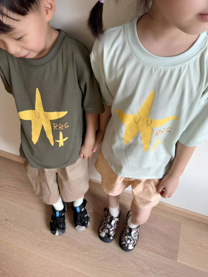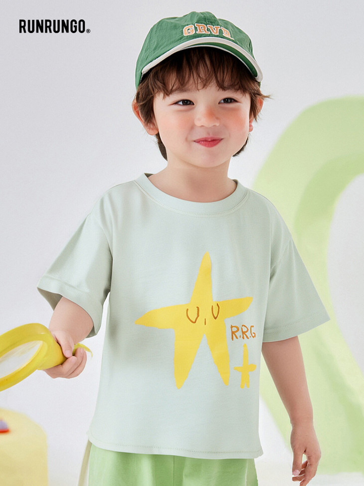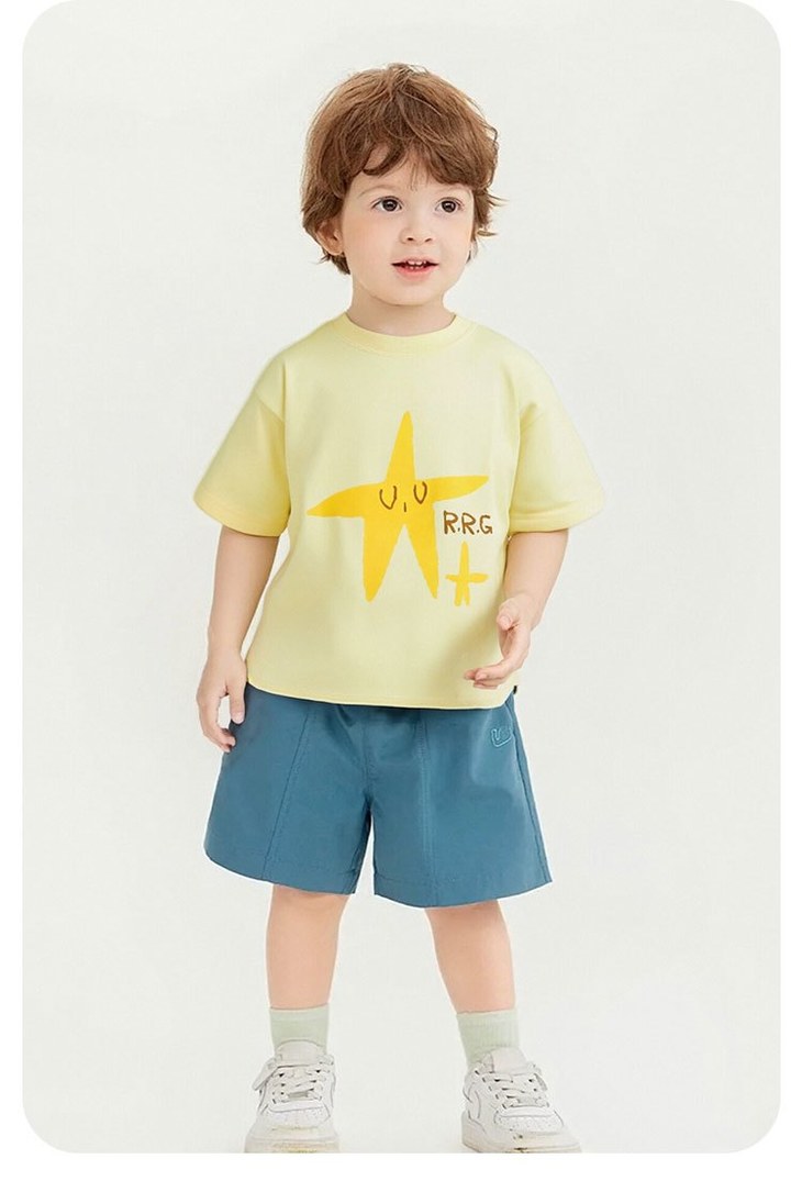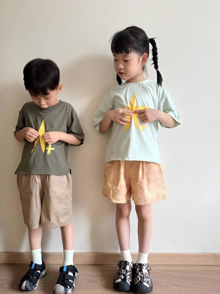 🌟莫兰迪四色可选 克莱因蓝、薄荷绿、浅蛋黄、军绿色 🎠户外游玩、居家日常轻松适配各种场景, 让宝贝每天都是亮眼的时尚小达人~ 👕基础圆领设计,宽松版型不束缚, 弧形下摆开叉活动自如更开心! 水印做旧工艺,减少胶感不闷汗💧! 俏皮可爱,为宝贝的夏夜添满欢乐。