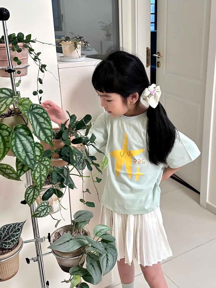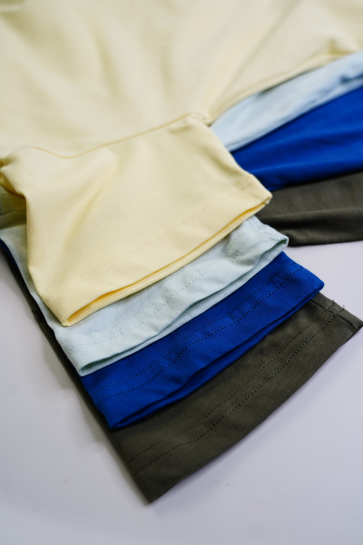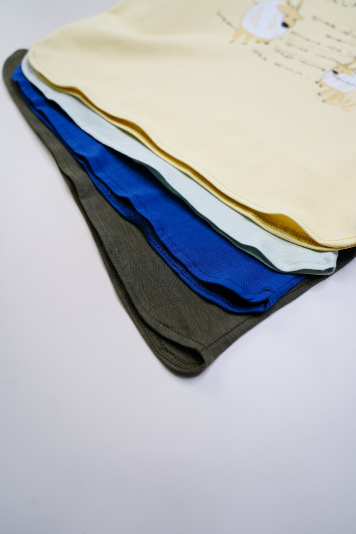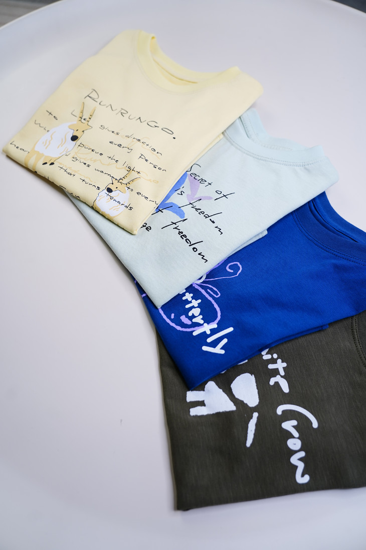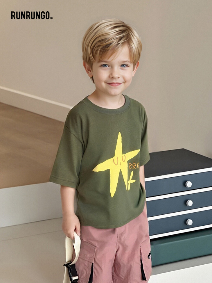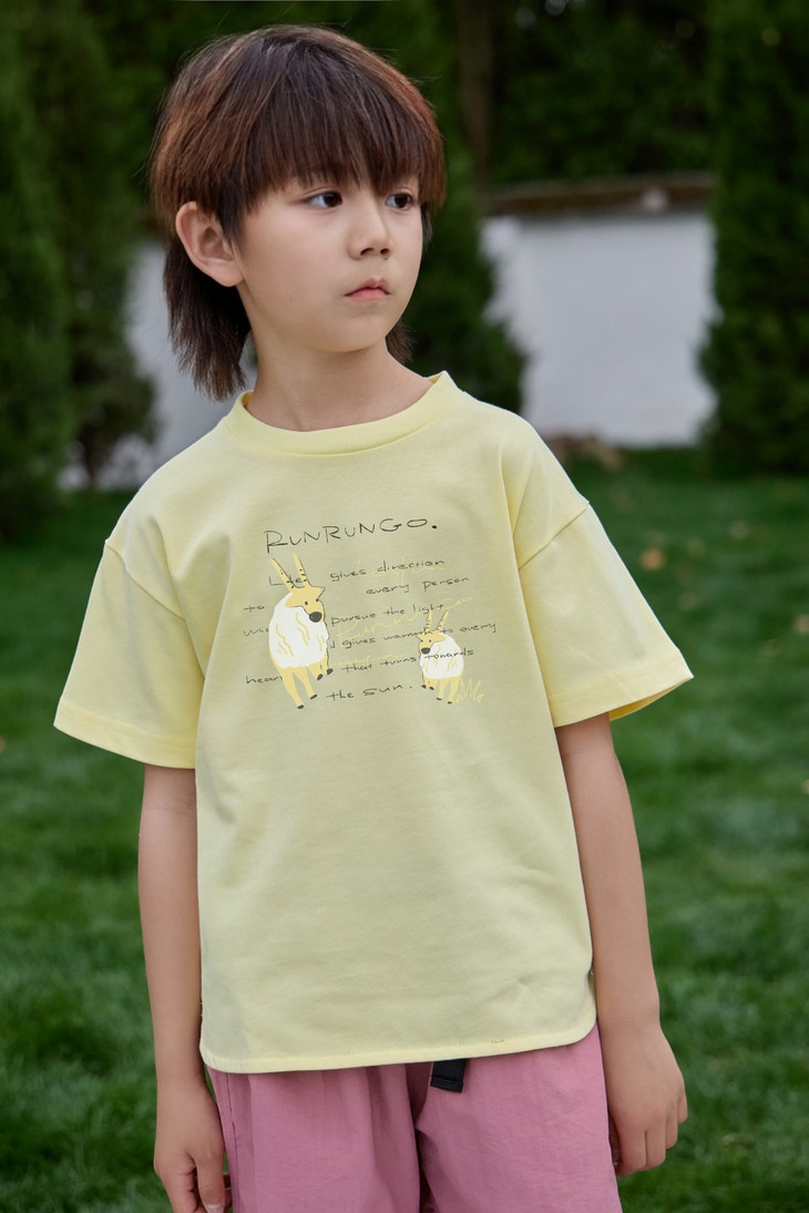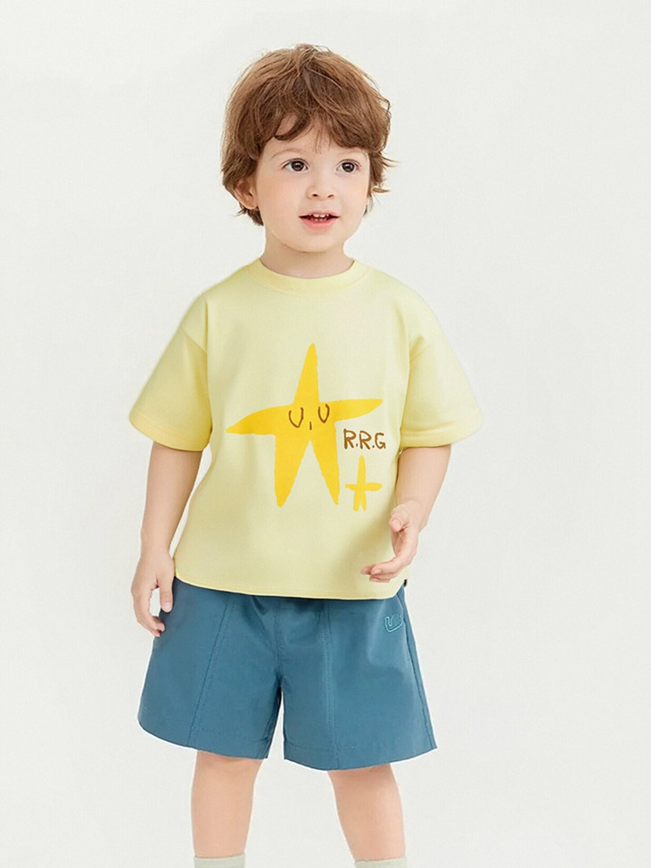 🌟莫兰迪四色可选 克莱因蓝、薄荷绿、浅蛋黄、军绿色 🎠户外游玩、居家日常轻松适配各种场景, 让宝贝每天都是亮眼的时尚小达人~ 👕基础圆领设计,宽松版型不束缚, 弧形下摆开叉活动自如更开心! 水印做旧工艺,减少胶感不闷汗💧! 俏皮可爱,为宝贝的夏夜添满欢乐。
