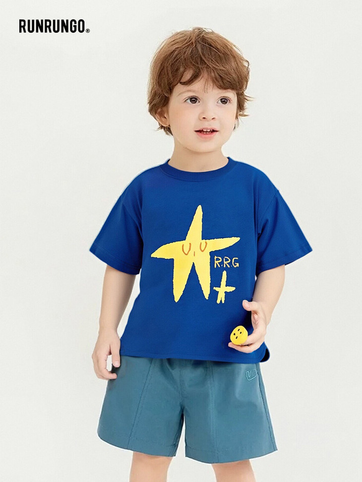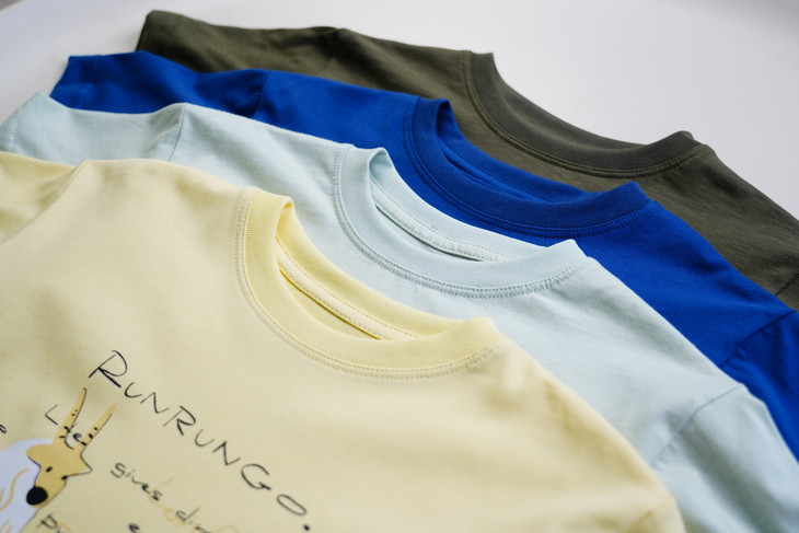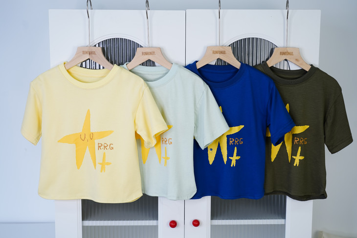 runrungo【仲夏夜】长绒棉混纺T恤 精选两种🔴优质面料 ·克莱因蓝、薄荷绿100% 纯棉款 表面磨毛工艺,短绒舒适柔软〰️ 表面细腻绒软,触感升级 内里平纹舒适亲肤 如云朵般柔软亲肤, 给宝贝最纯粹的呵护!