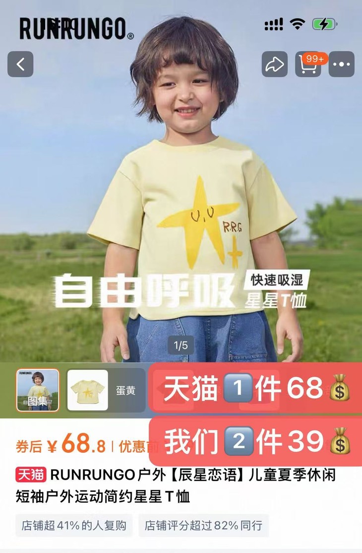 天猫官旗1件68💰 我们2件39💰,立省97💰