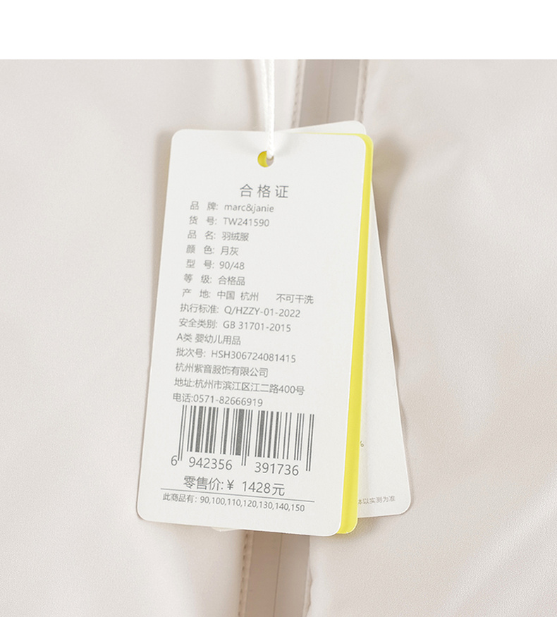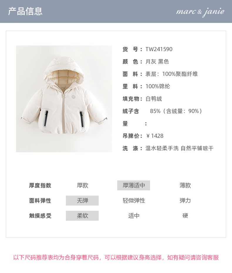 马克珍妮男童潮酷三防保暖羽绒服儿童羽绒服2024年冬装新款241590