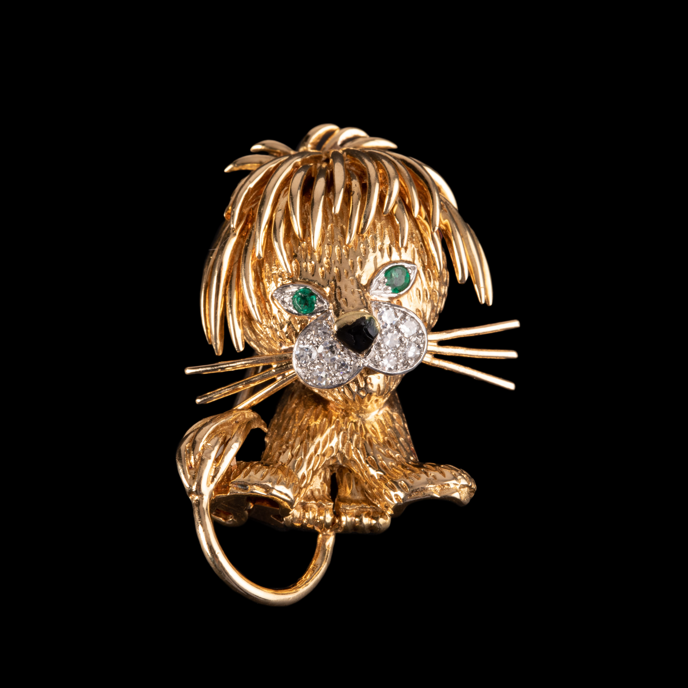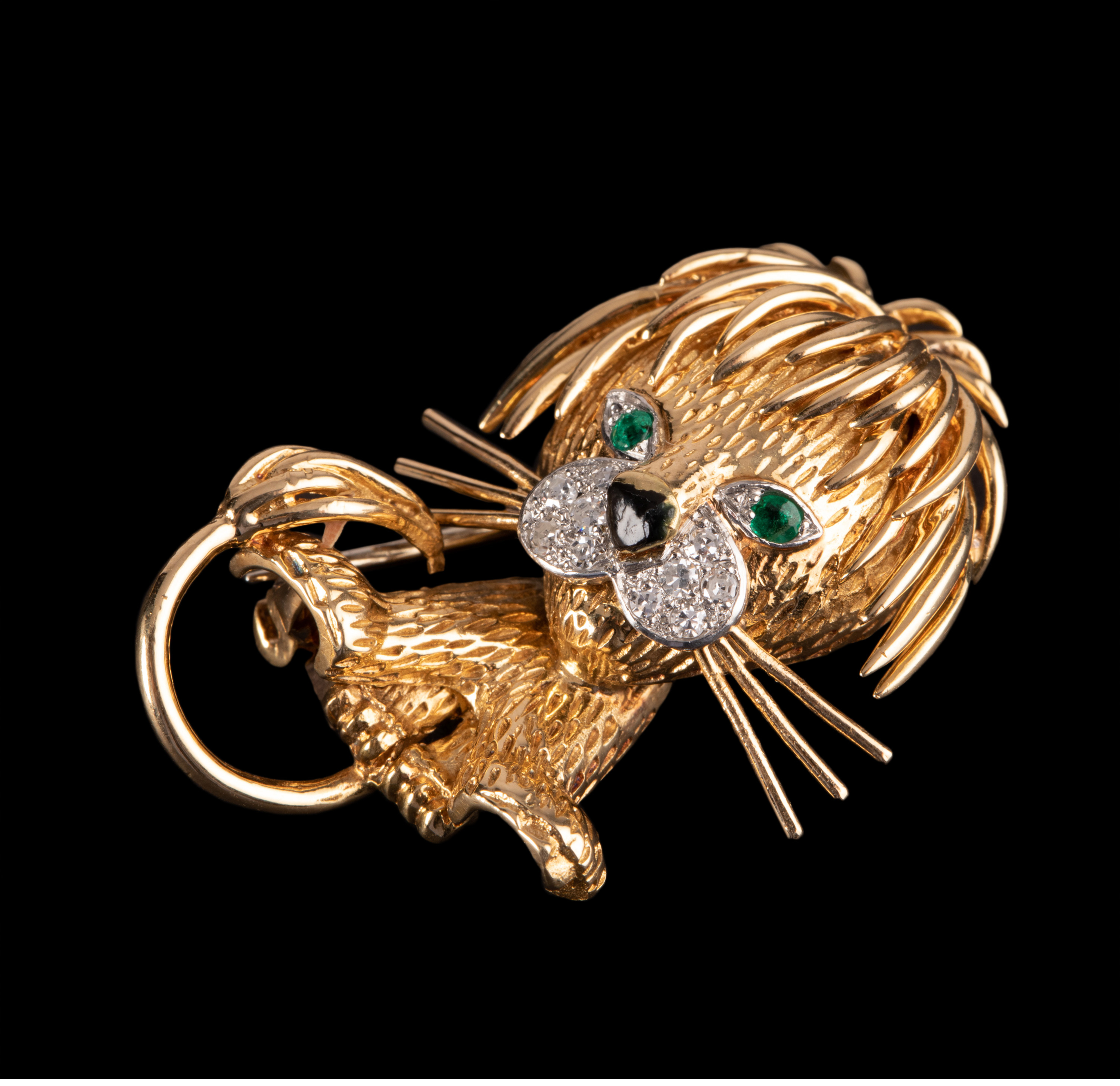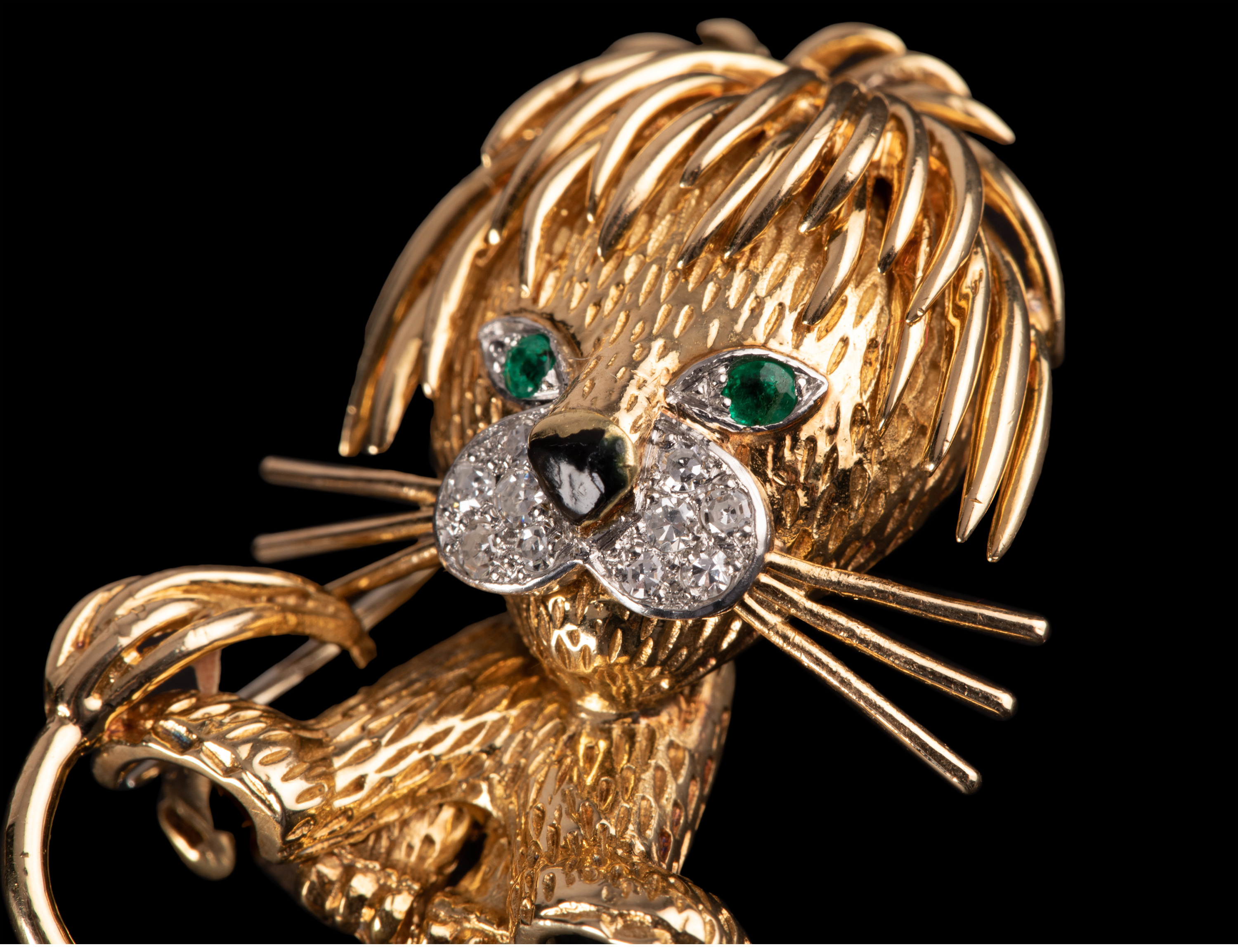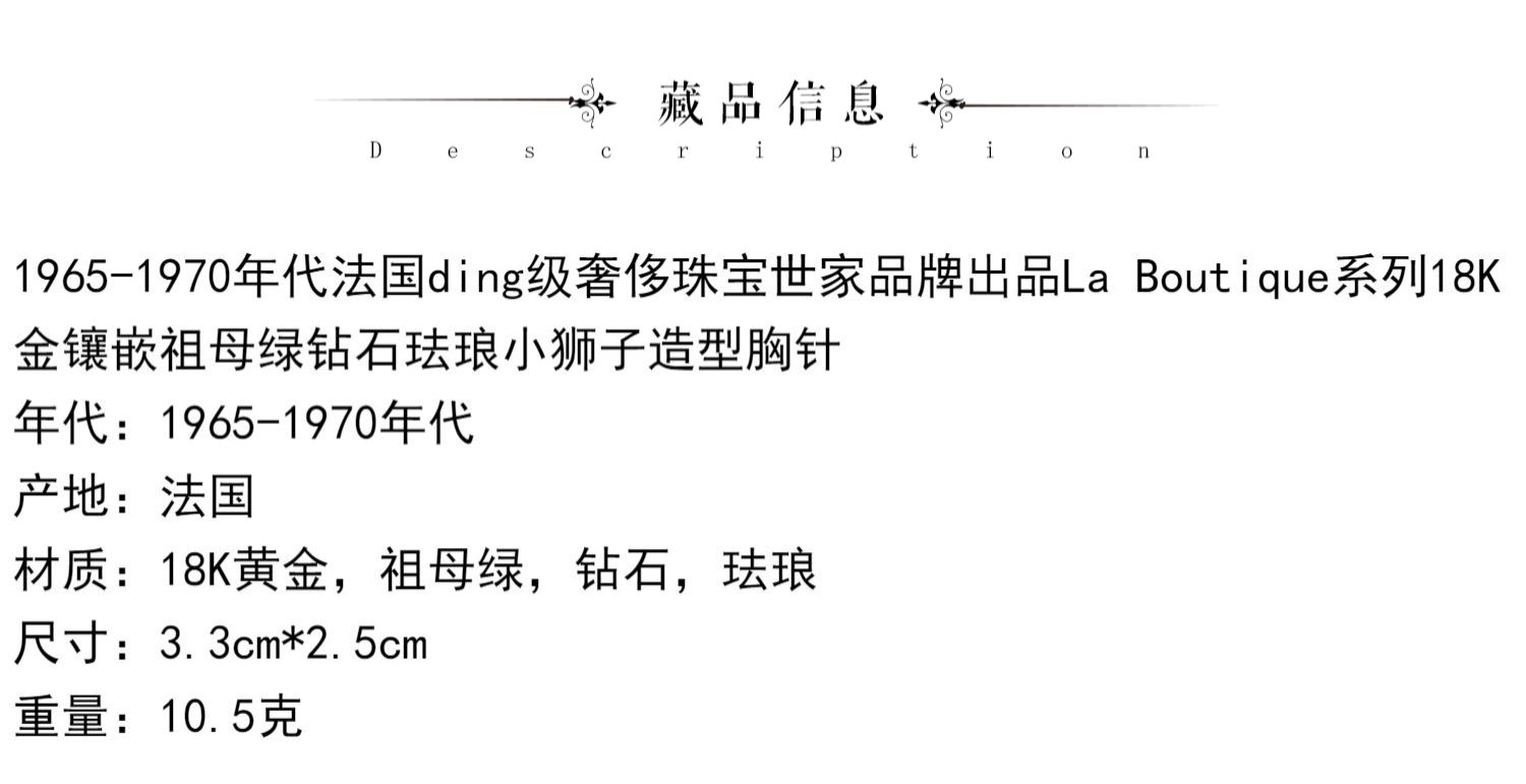 独角鹿西洋古董法国珠宝世家18K金镶祖母绿钻石珐琅小狮子胸针