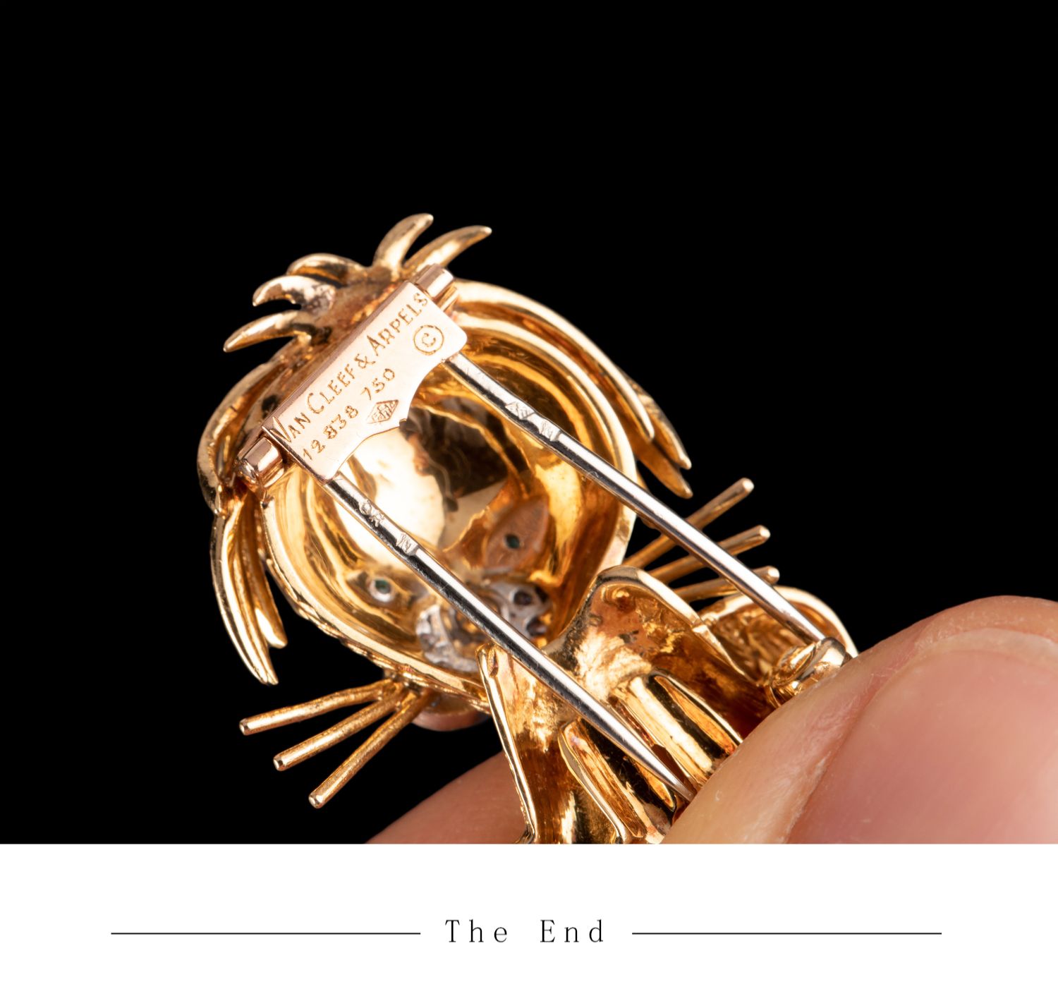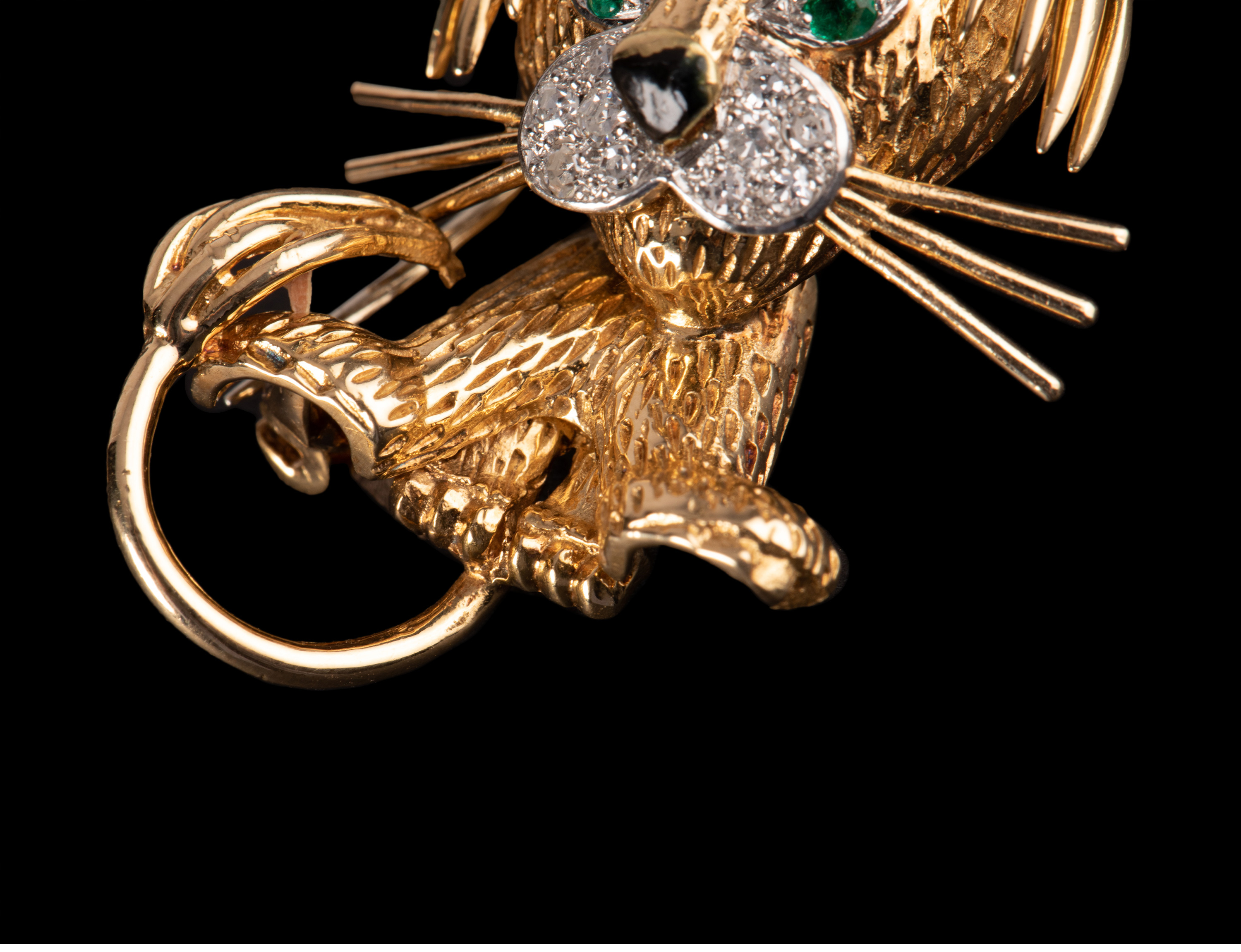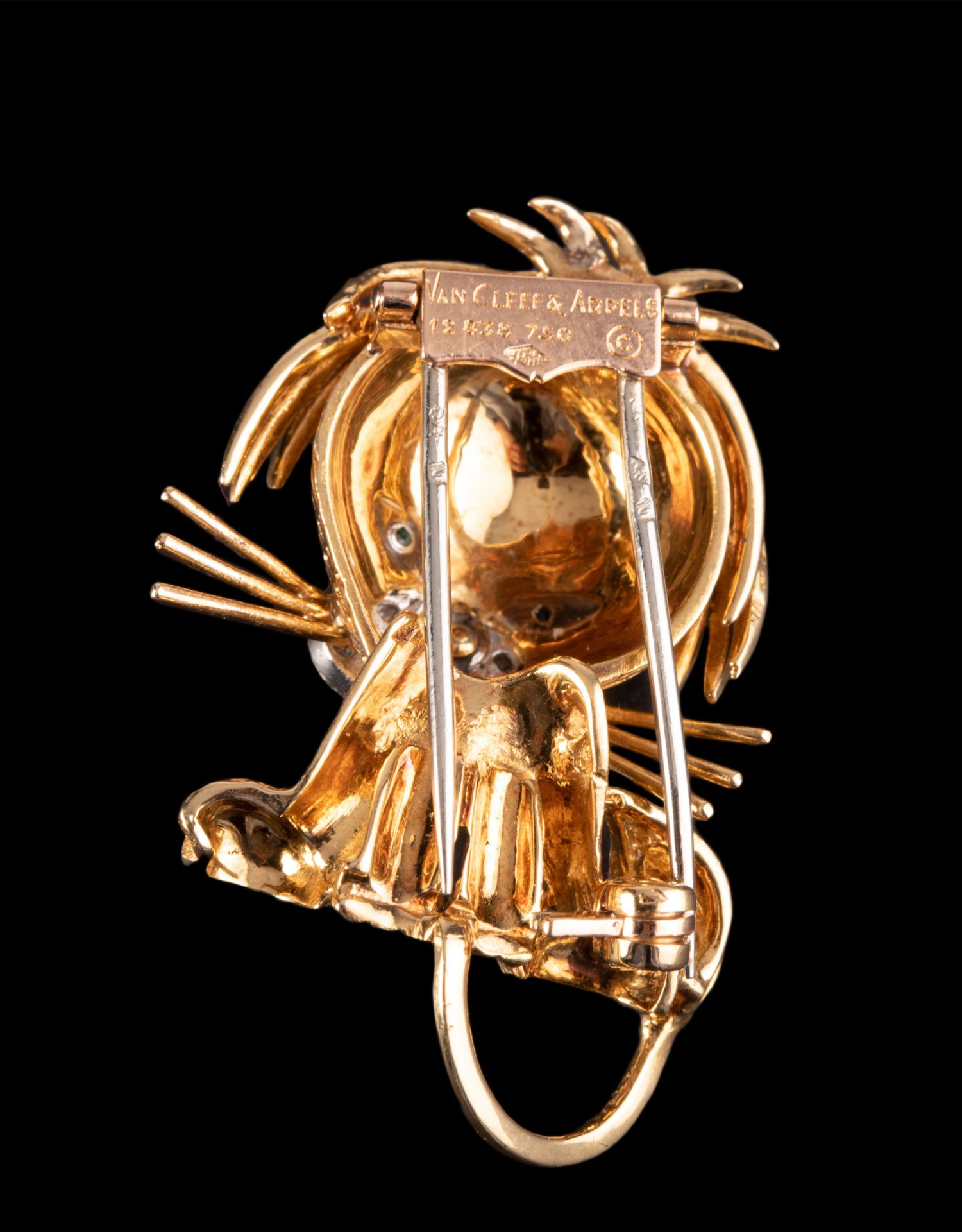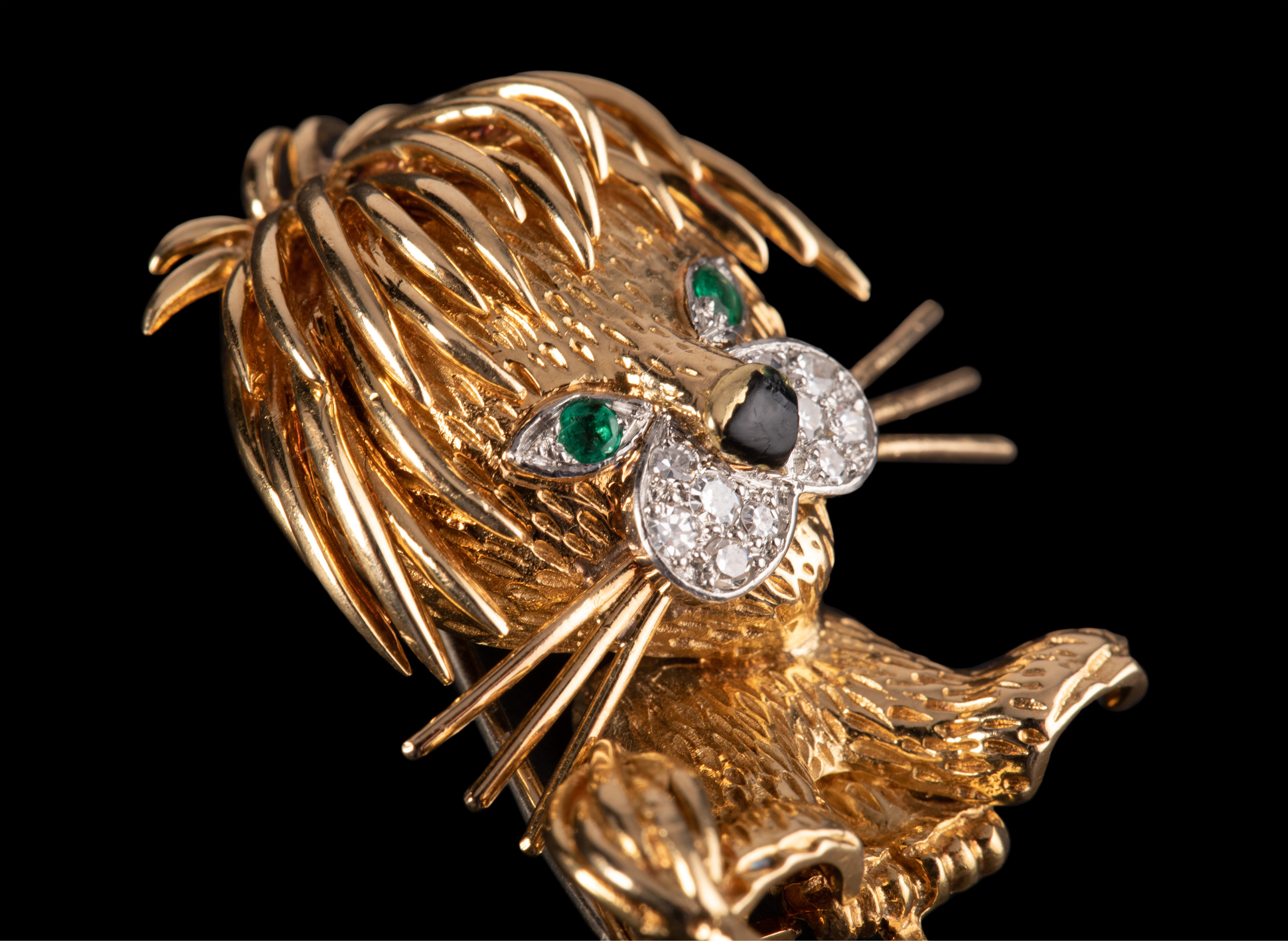 独角鹿西洋古董法国珠宝世家18K金镶祖母绿钻石珐琅小狮子胸针