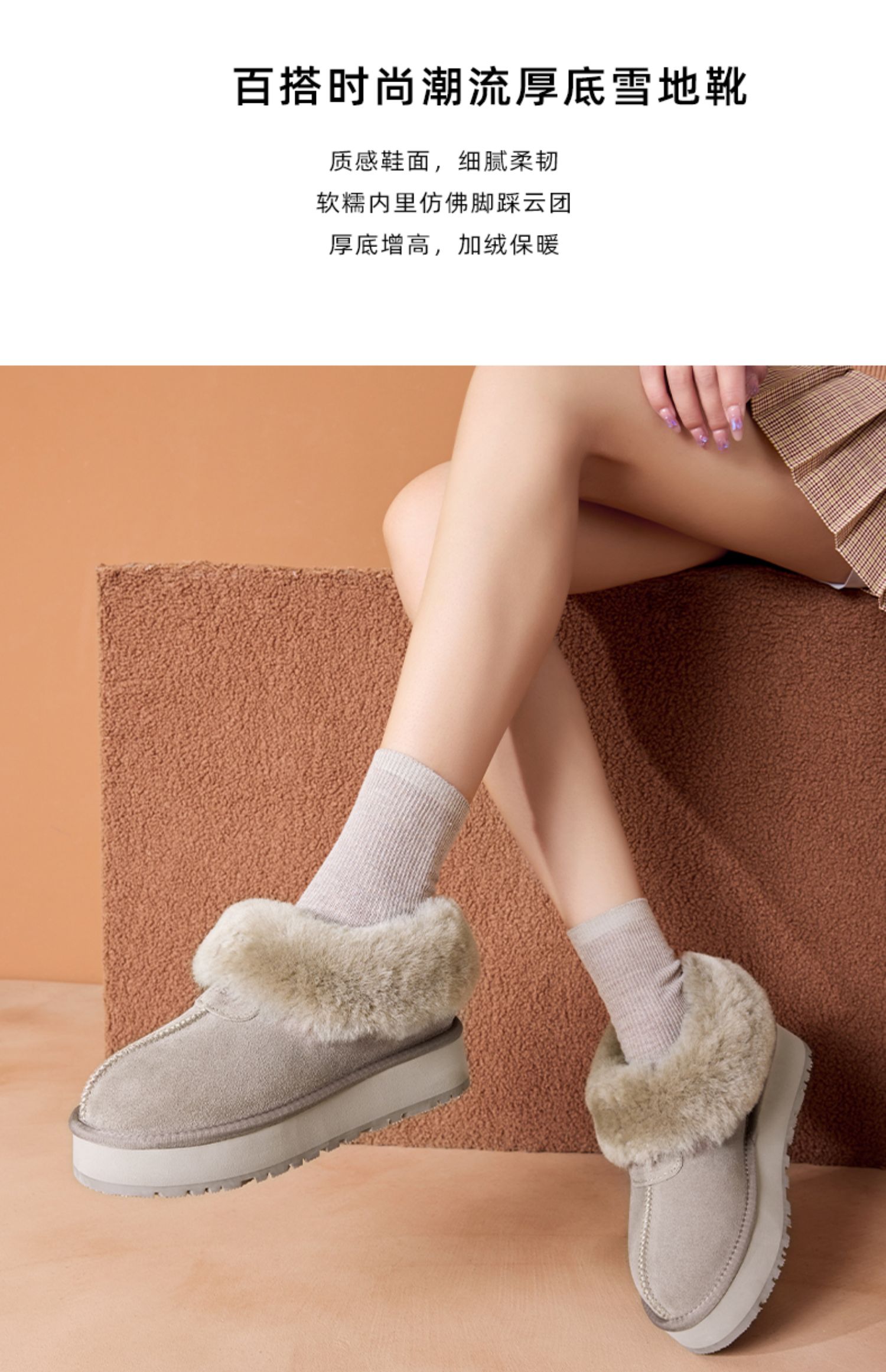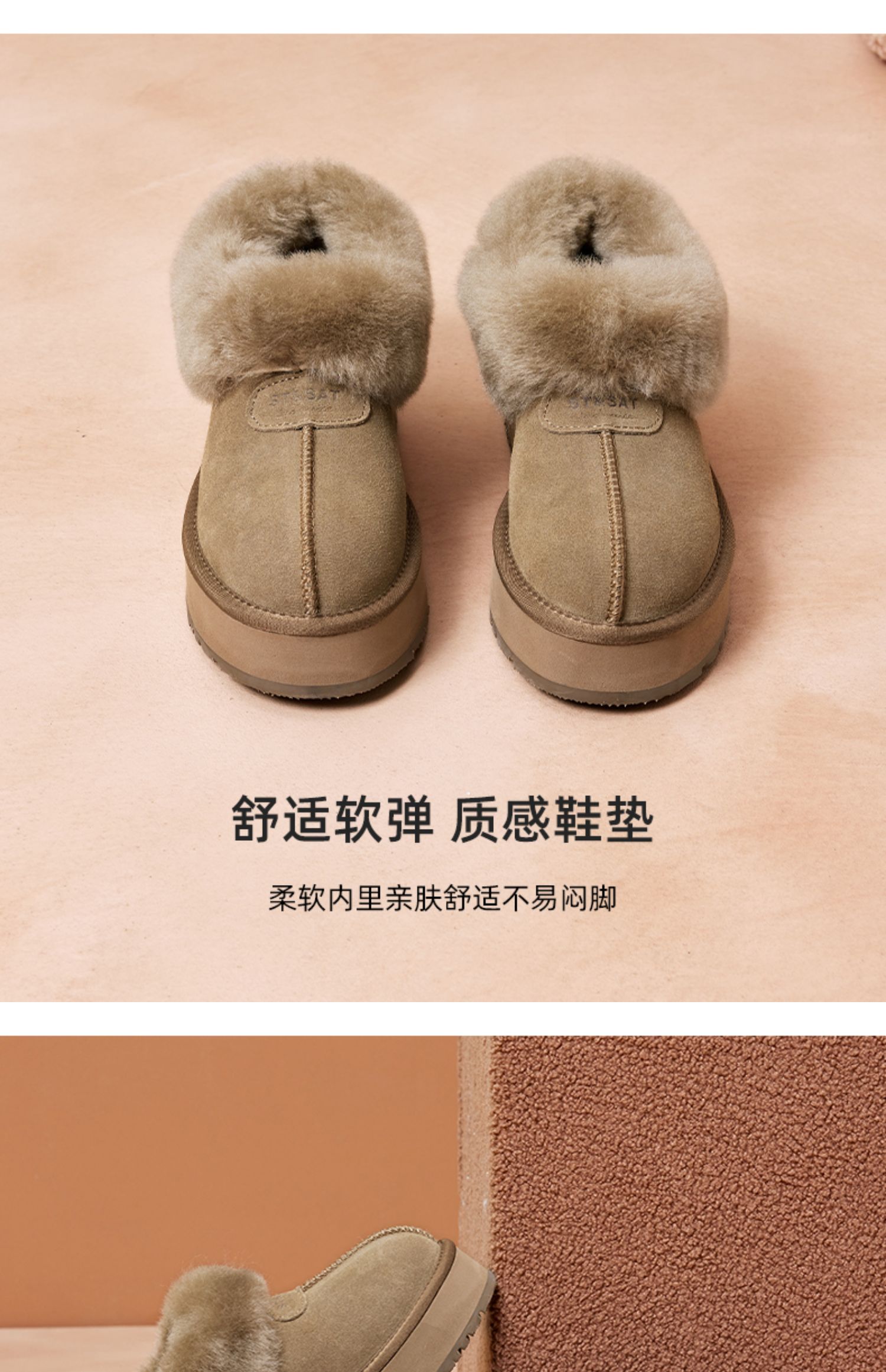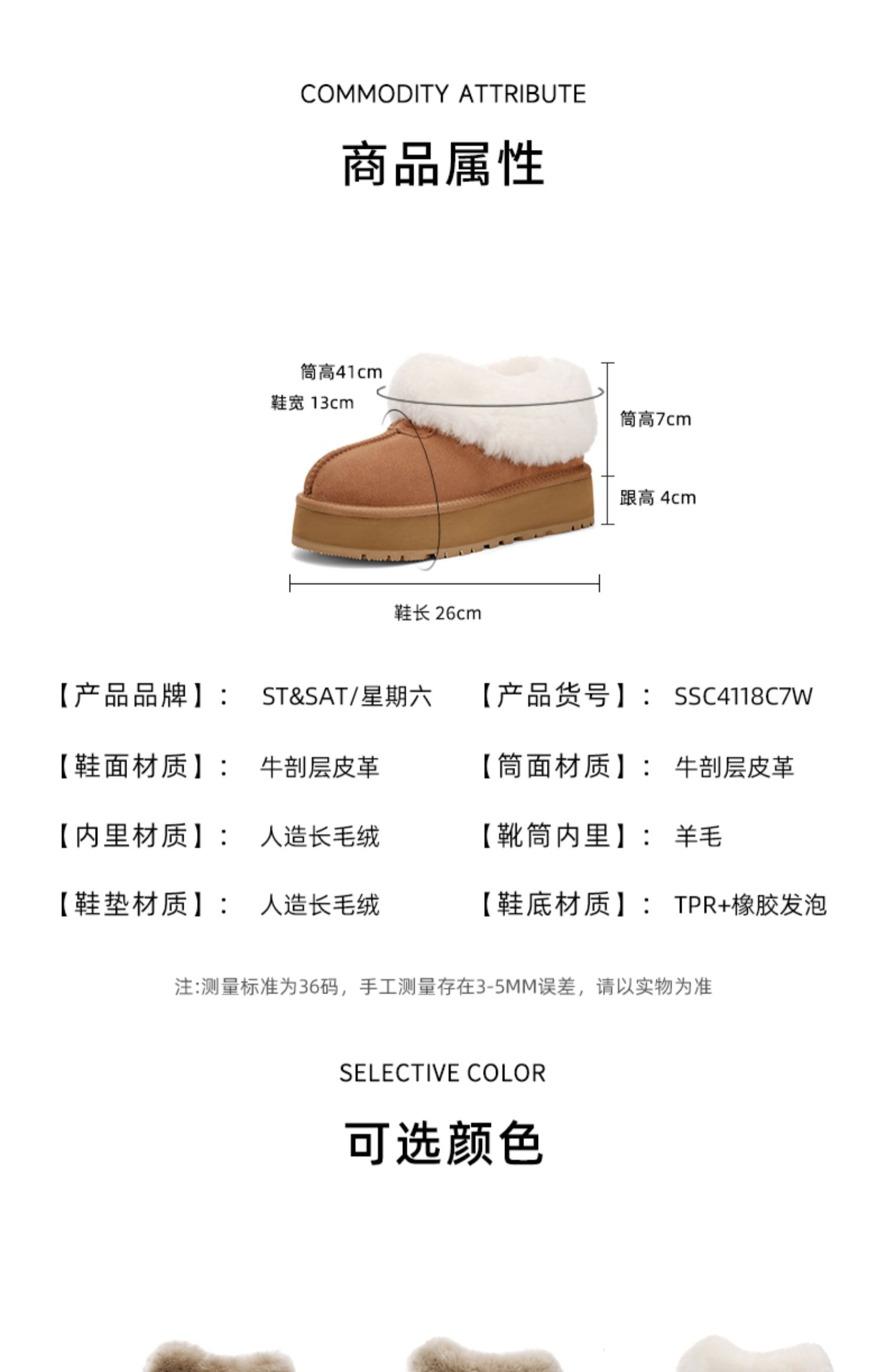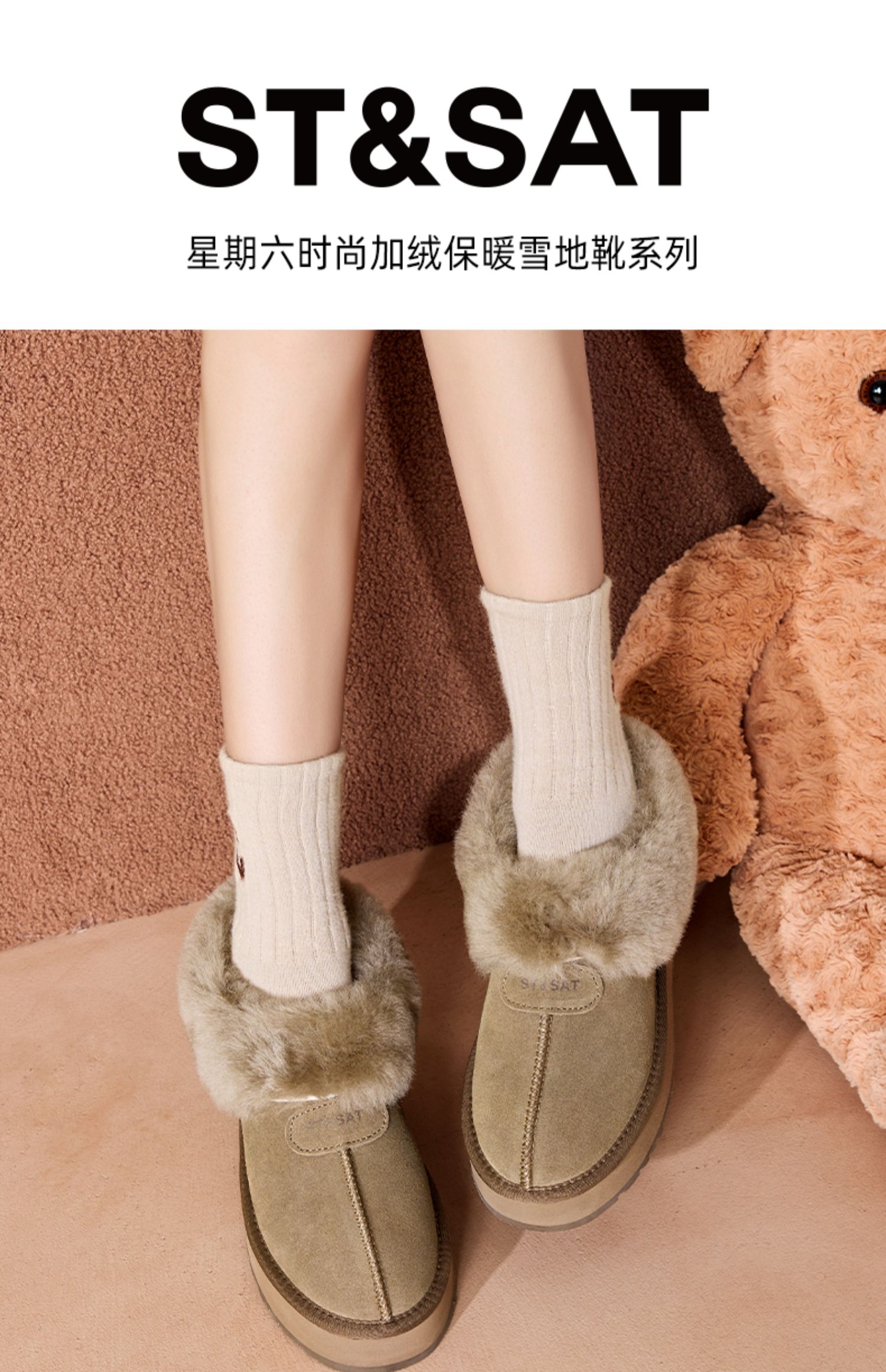 星期六甜感毛领加绒厚底短款雪地靴SSC4118C7W
