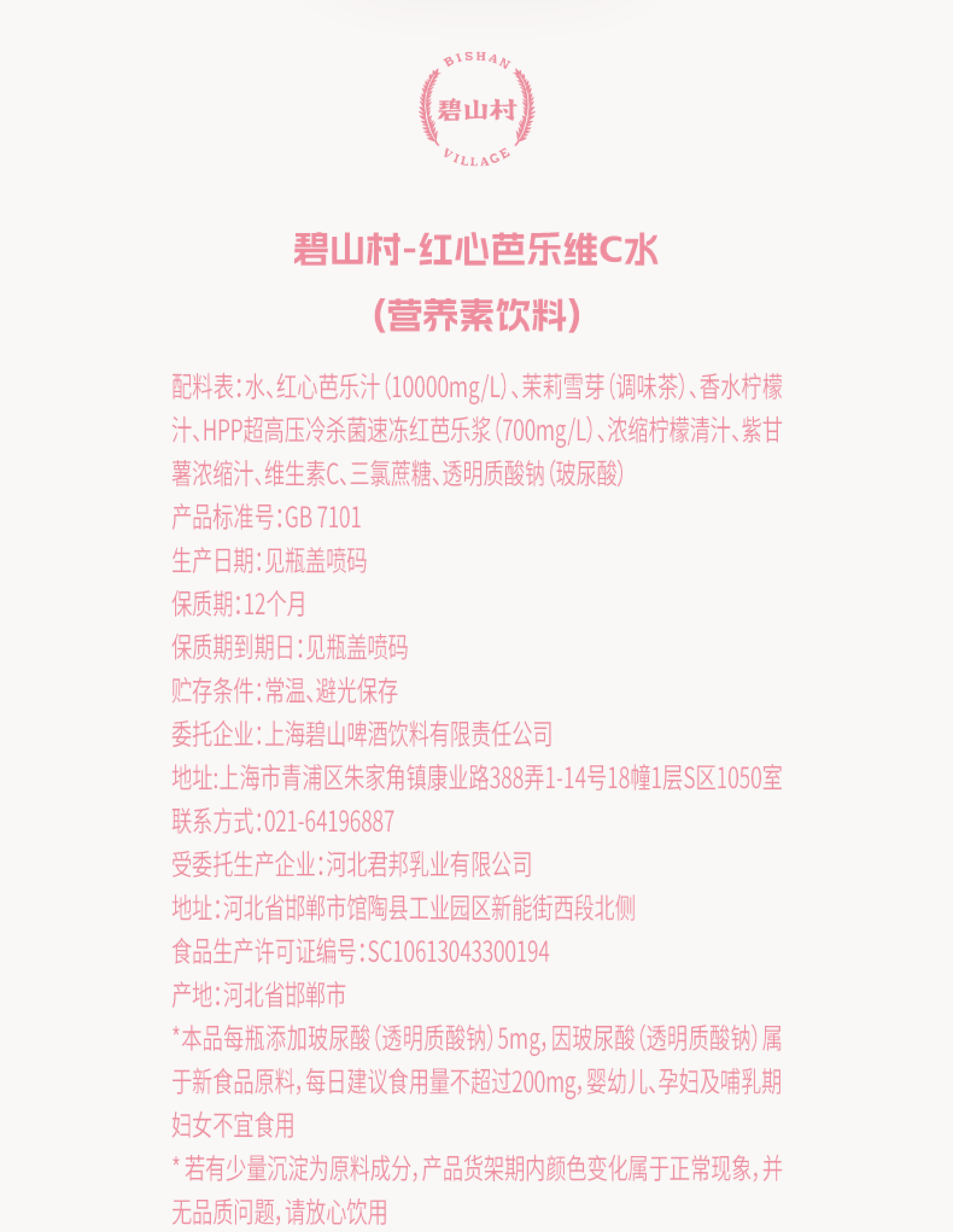 碧山村红心芭乐维C水500ml*5瓶清爽果香玻尿酸解腻清甜果味