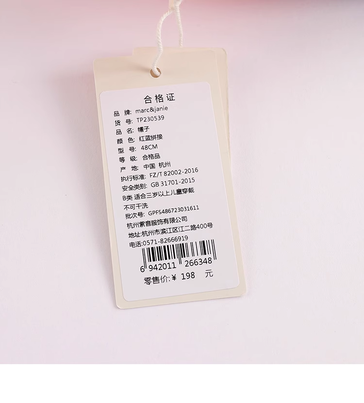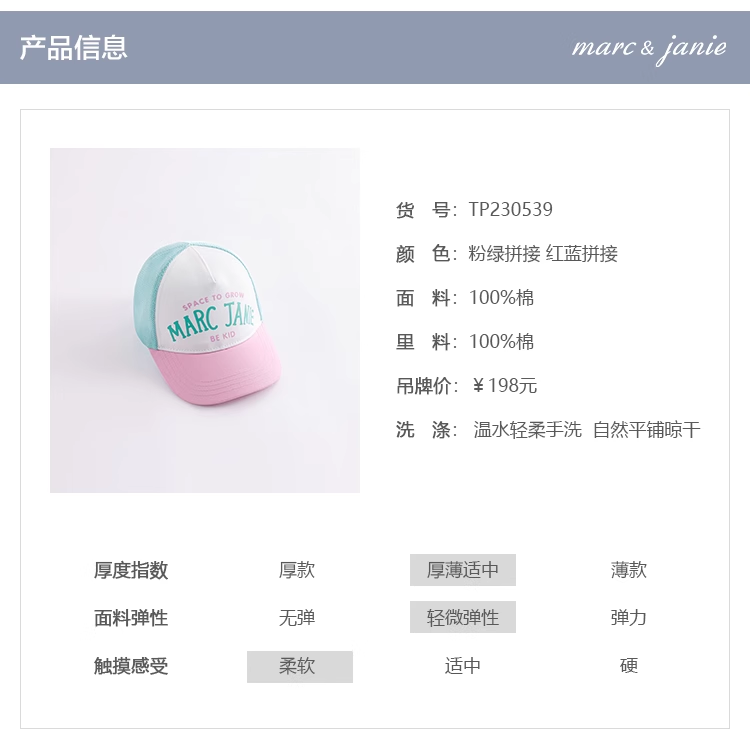 马克珍妮夏装 男女童撞色运动棒球帽鸭舌帽休闲帽 儿童帽子230539