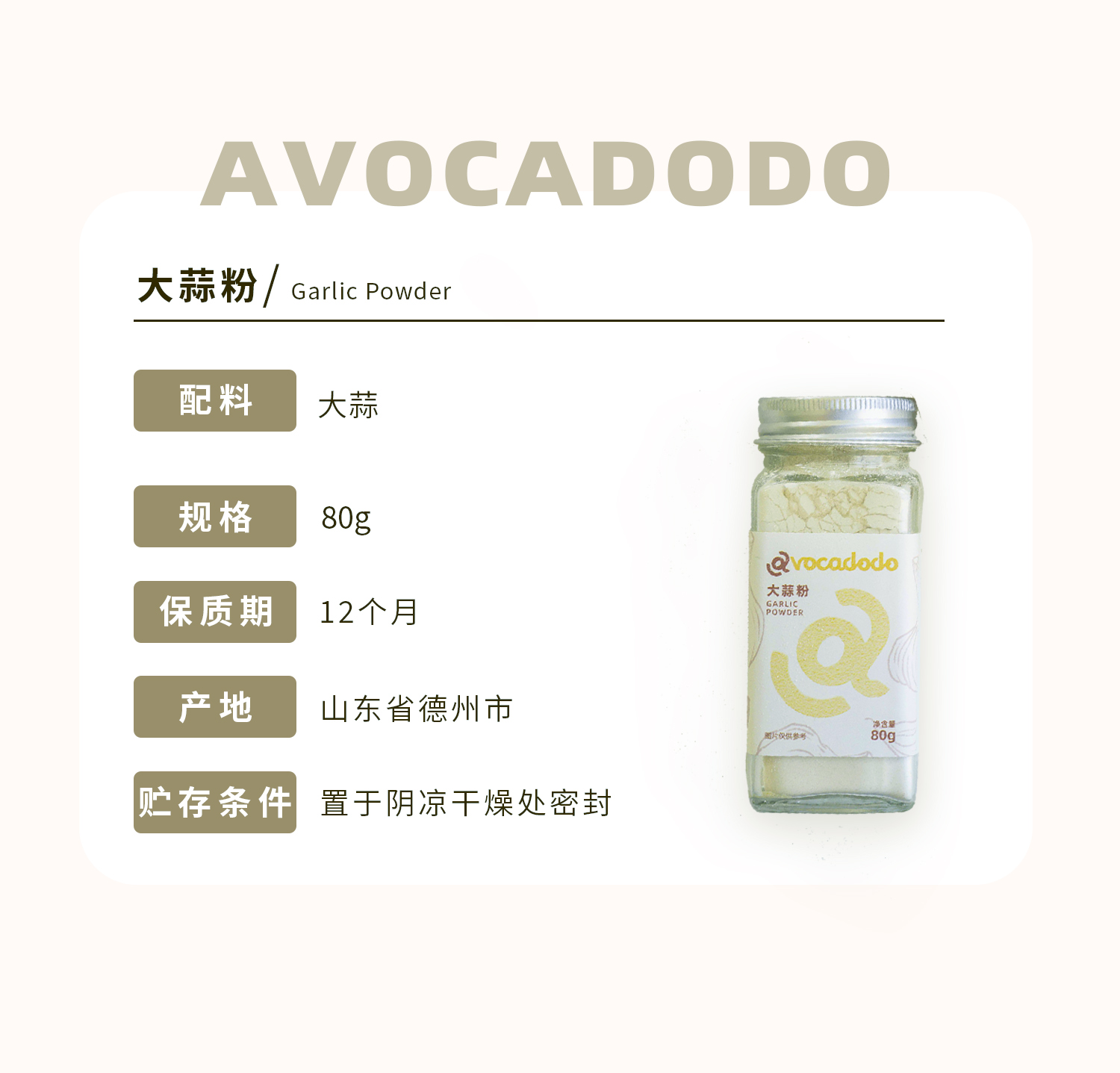 Avocadodo纯大蒜粉细腻80g炒菜腌制卤炖肉香料调料去腥烧烤桥本