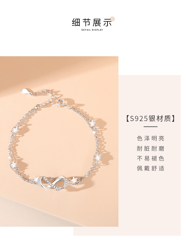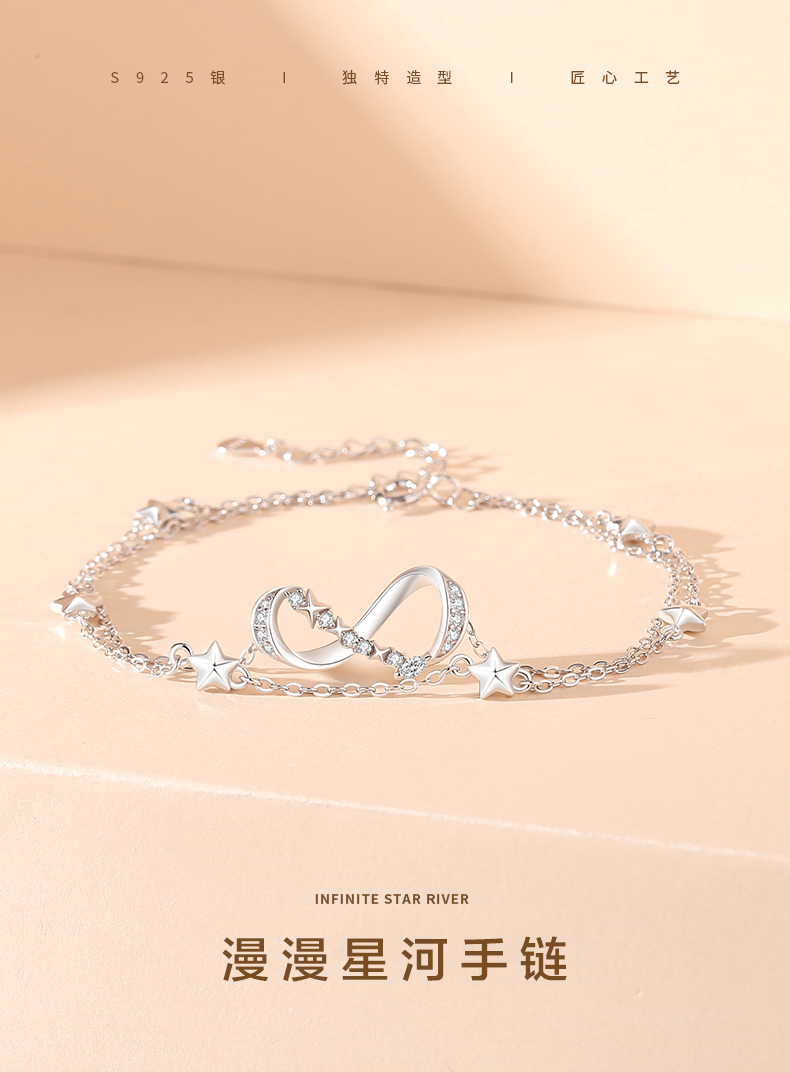 卡蒂罗/KADER 莫比乌斯系列 漫漫星河手链 925银轻奢时尚小众可调节银手链 浪漫闪耀精致璀璨闺蜜同款 520 礼盒